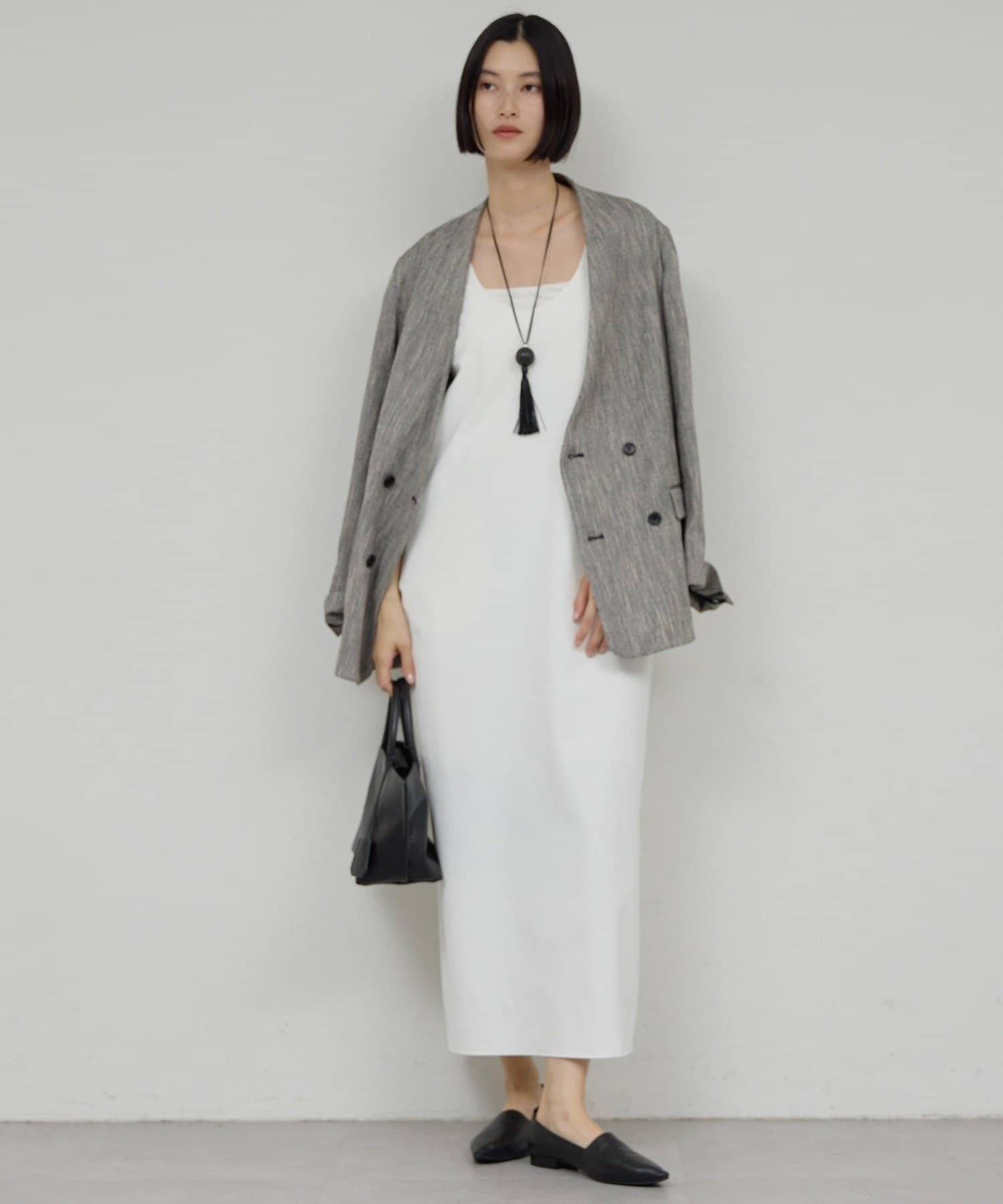 I 字形輪廓和深 V 領設計,給人一種簡潔、協調的感覺。