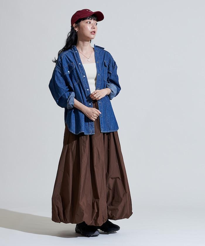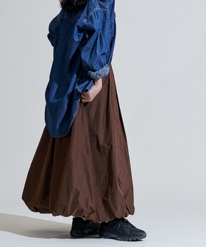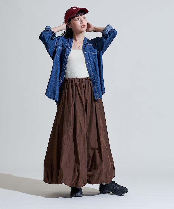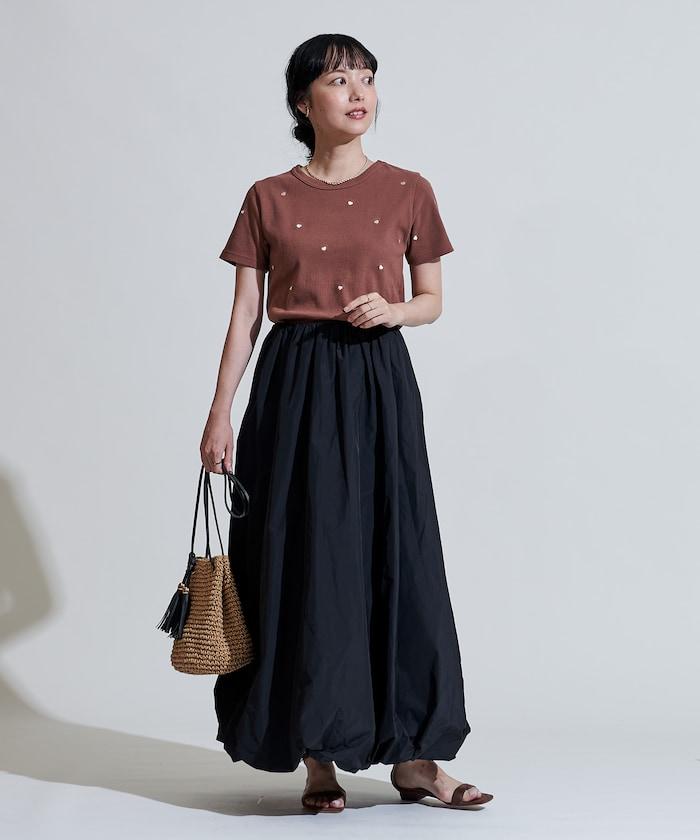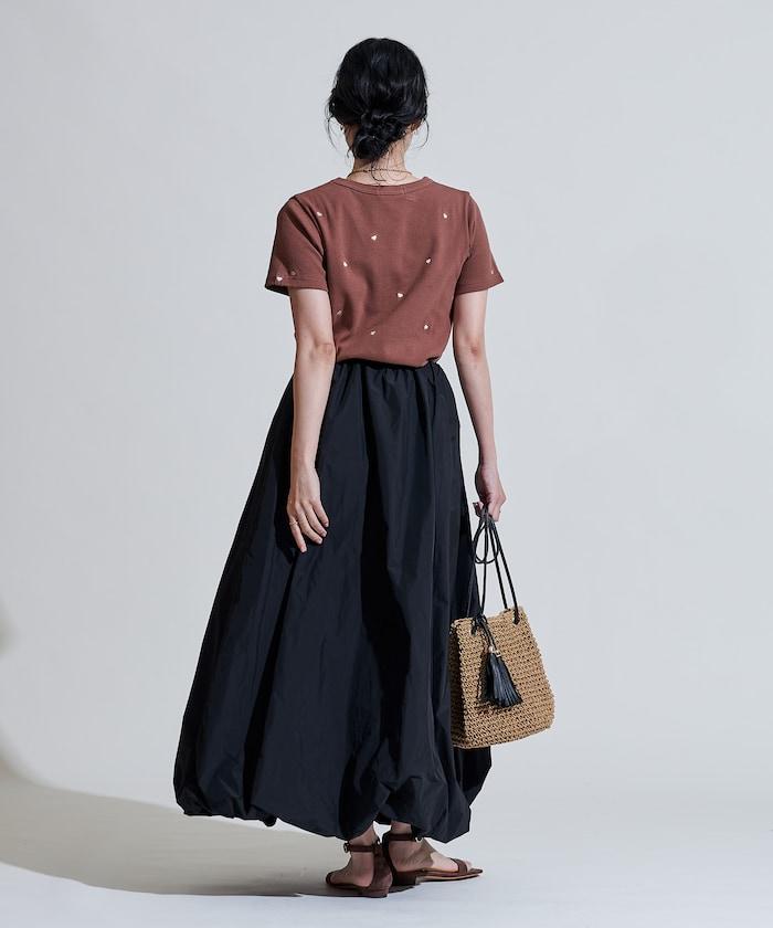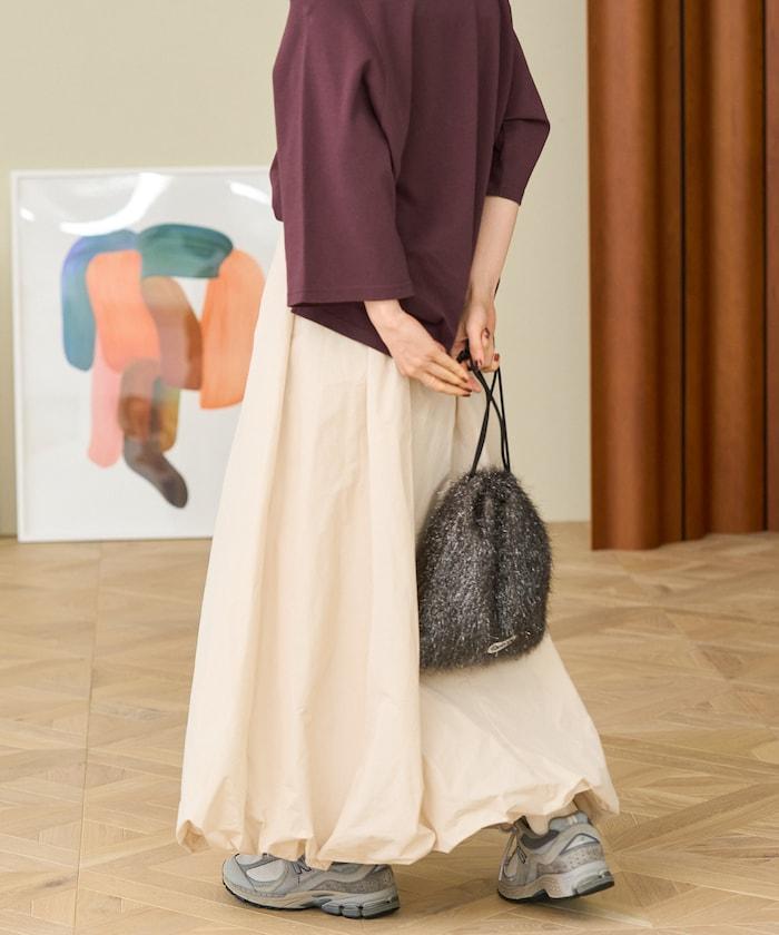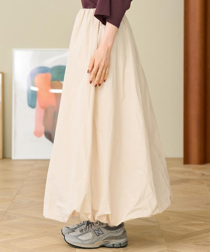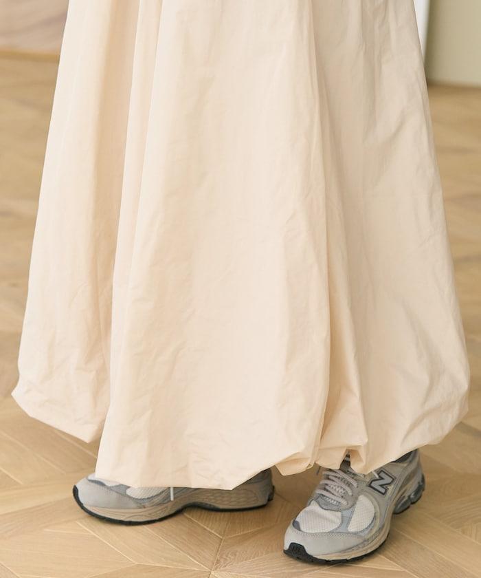 裙襬的體積感讓上半身和腿部看起來乾淨利落,充滿女性魅力。
