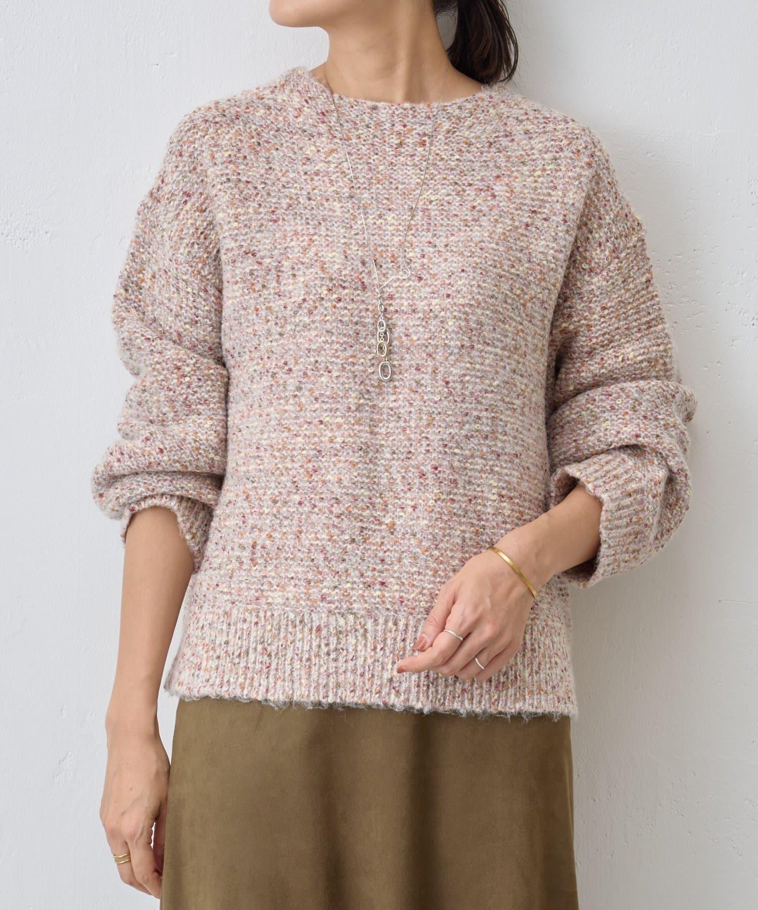 用各種顏色的混合紗線編織的保暖套頭衫。