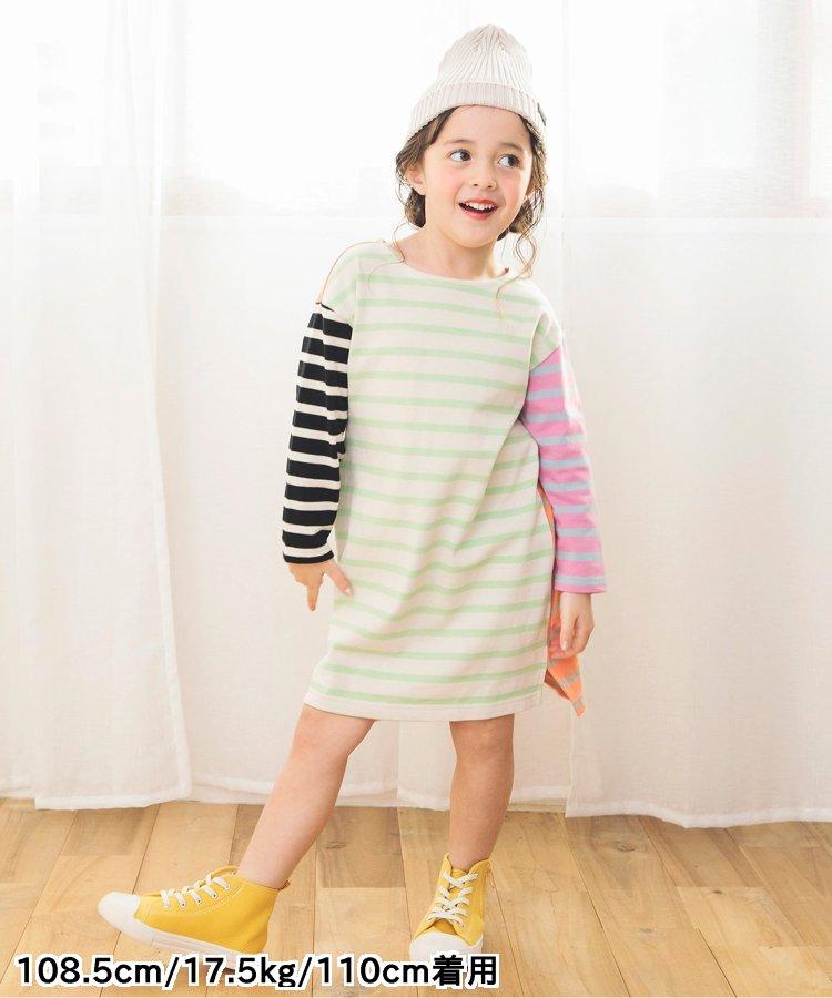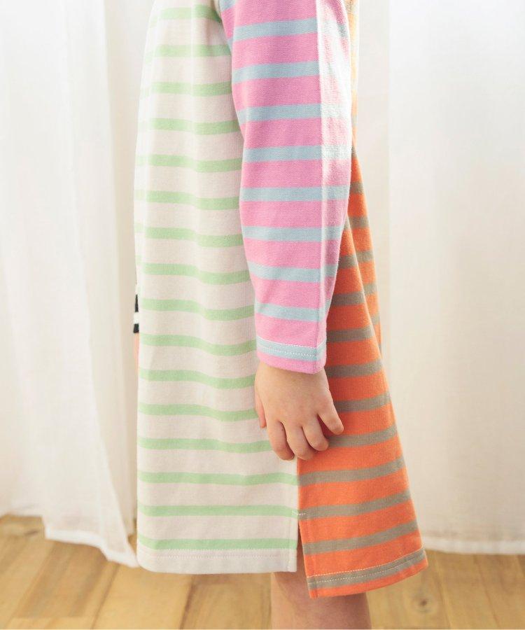 色彩斑斕的邊飾鏈接] 一條色彩斑斕、宛如春天的邊飾連衣裙。採用稍厚的針織面料製成,可以在寒冷的季節穿著!側面有開衩,前後有區別。右側還有一個口袋,方便在日常生活中使用。