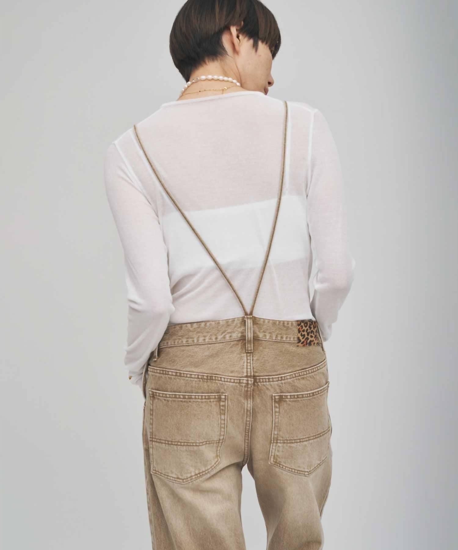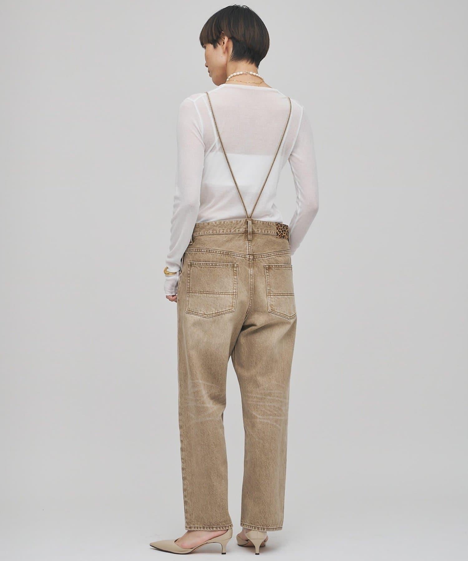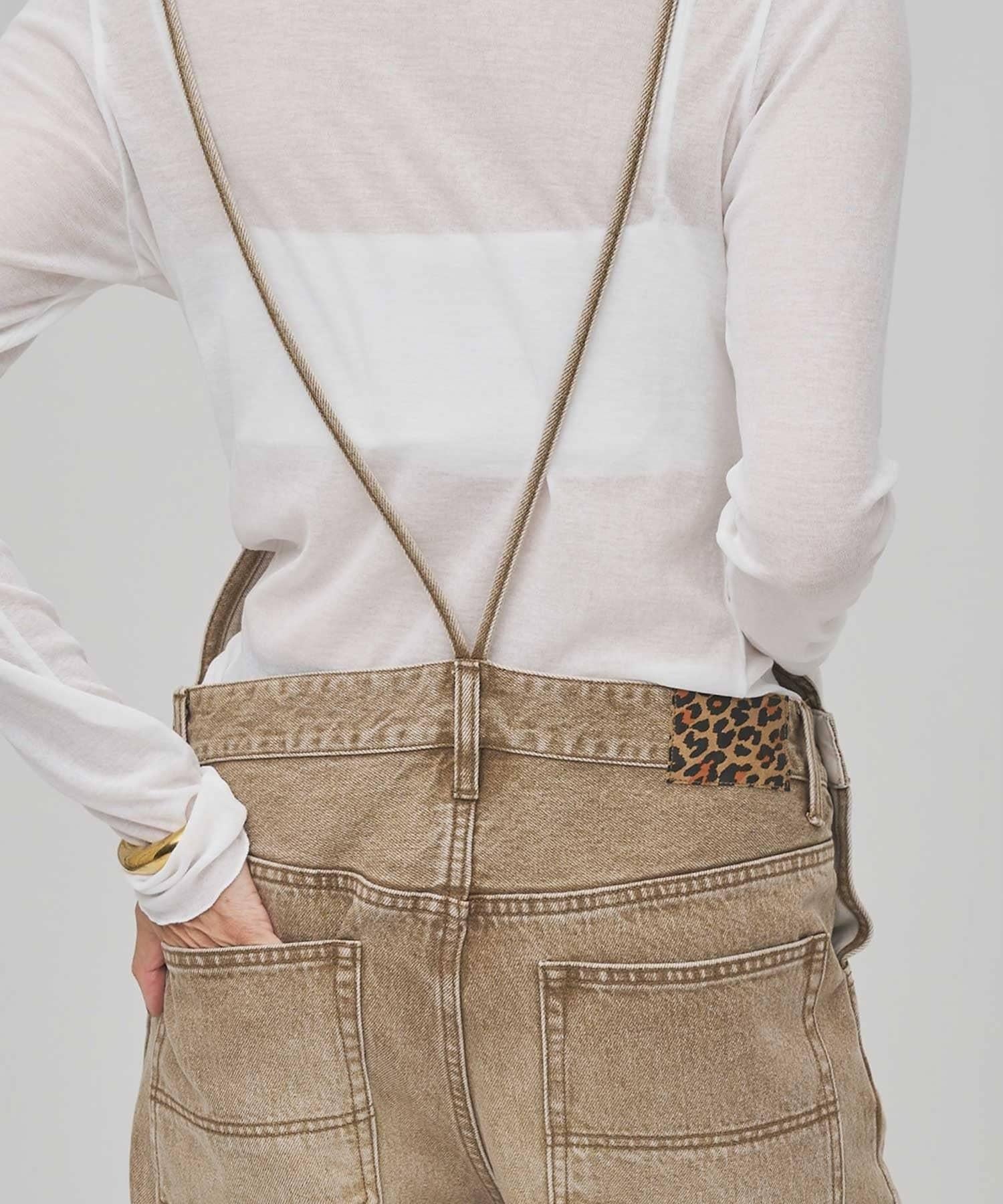 ■ユーズド感のあるカラーデニムの風合いが特徴的なオールインワン。