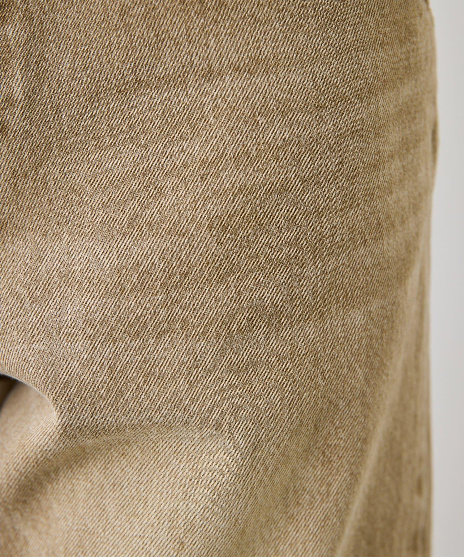 ケミカルウォッシュ+ブリーチで全體の色目を落としつつ、白度を出してヴィンテージ感のある雰囲気を出したカラーデニム。