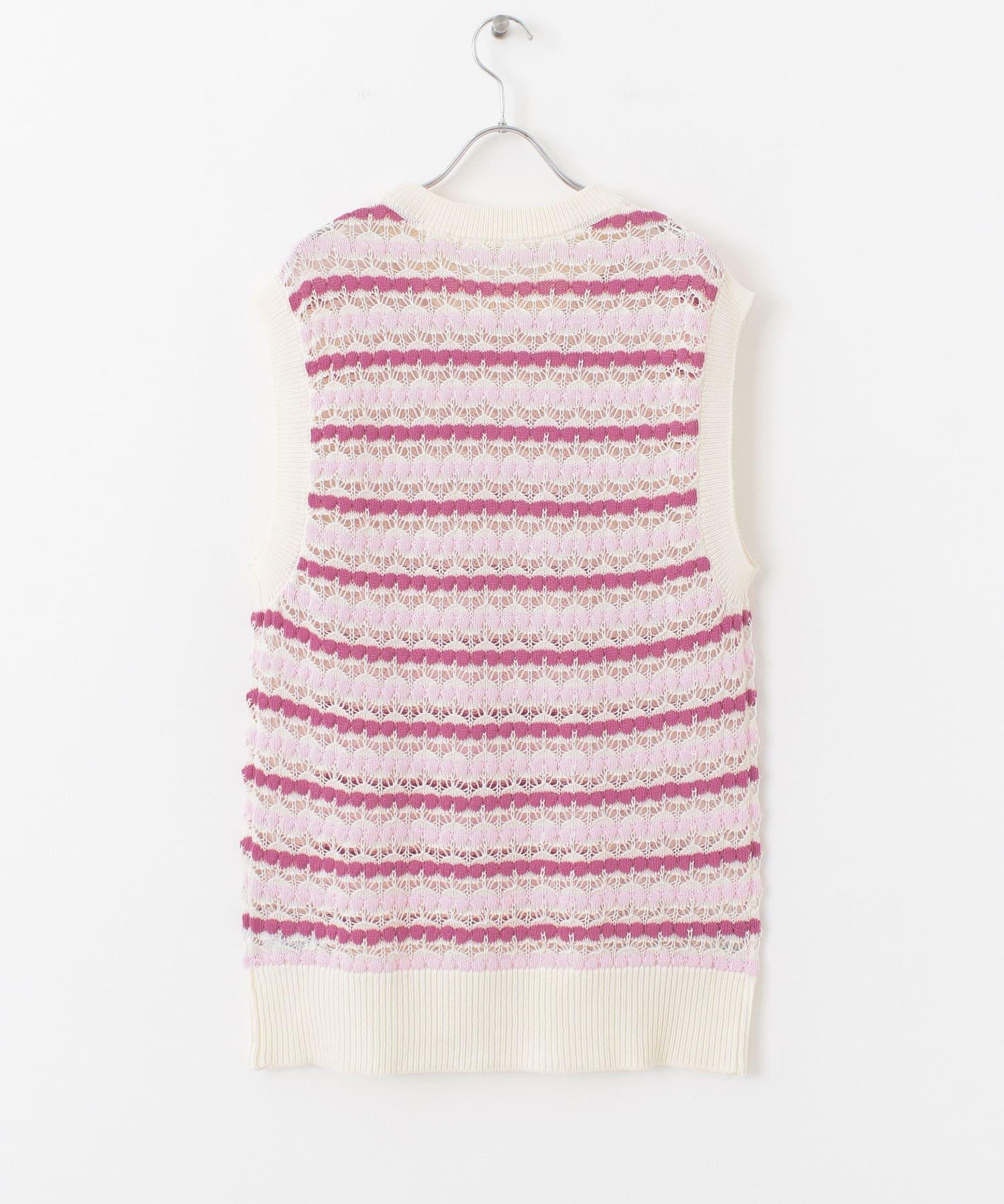 彩色鏤空針織背心