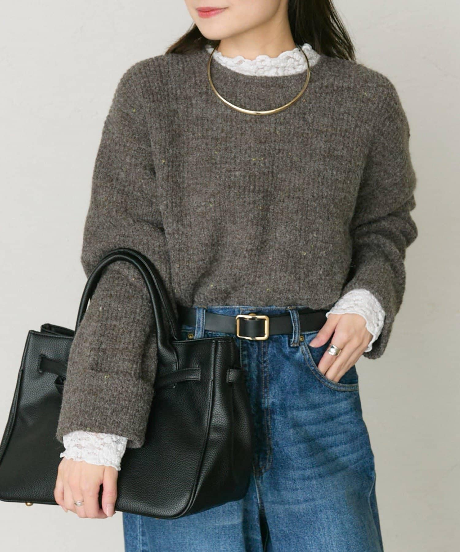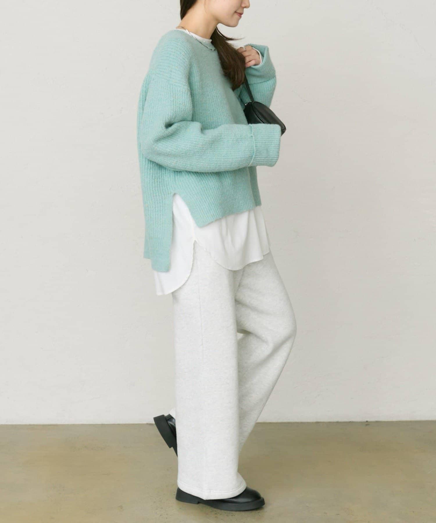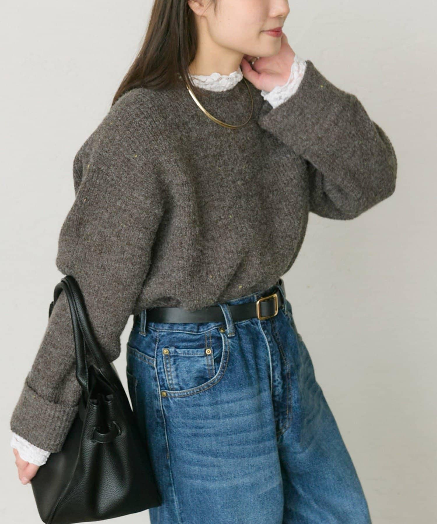 圓領針織衫搭配溫暖的棉結,表現力豐富。