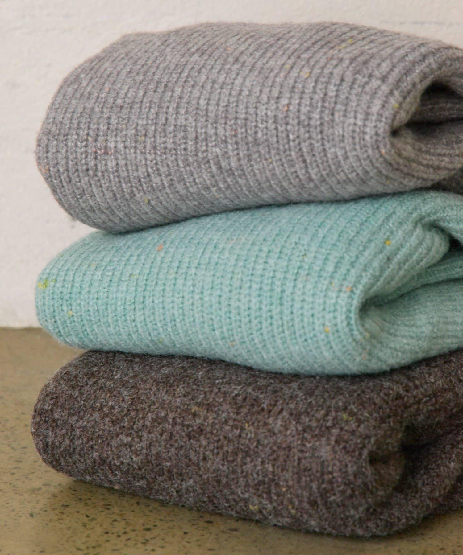 針織面料採用 5G(針距)編織,同時與底面交織不同顏色的棉結。