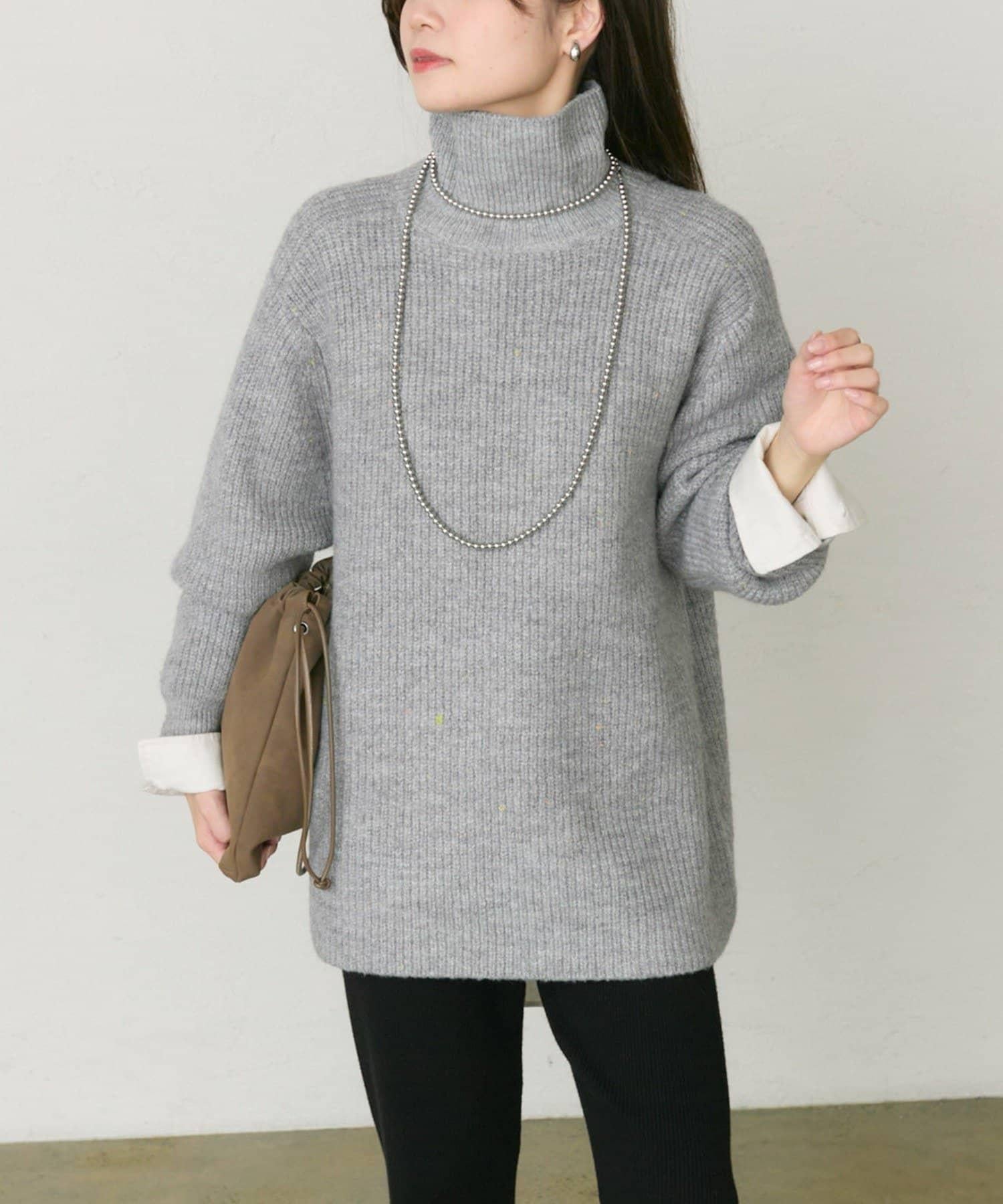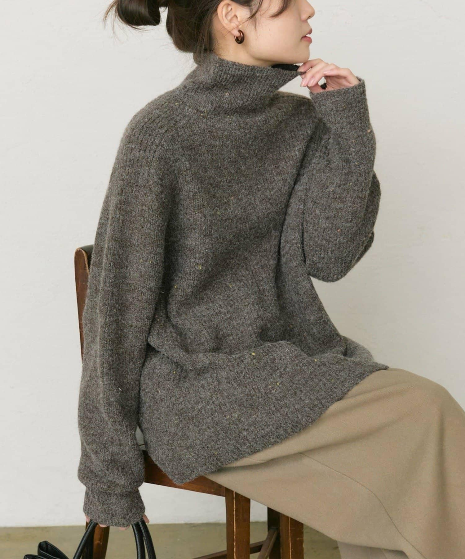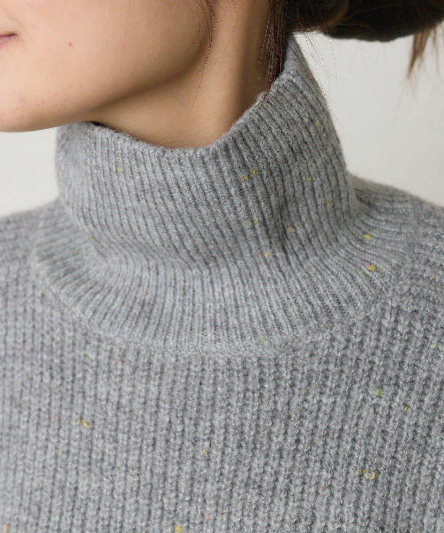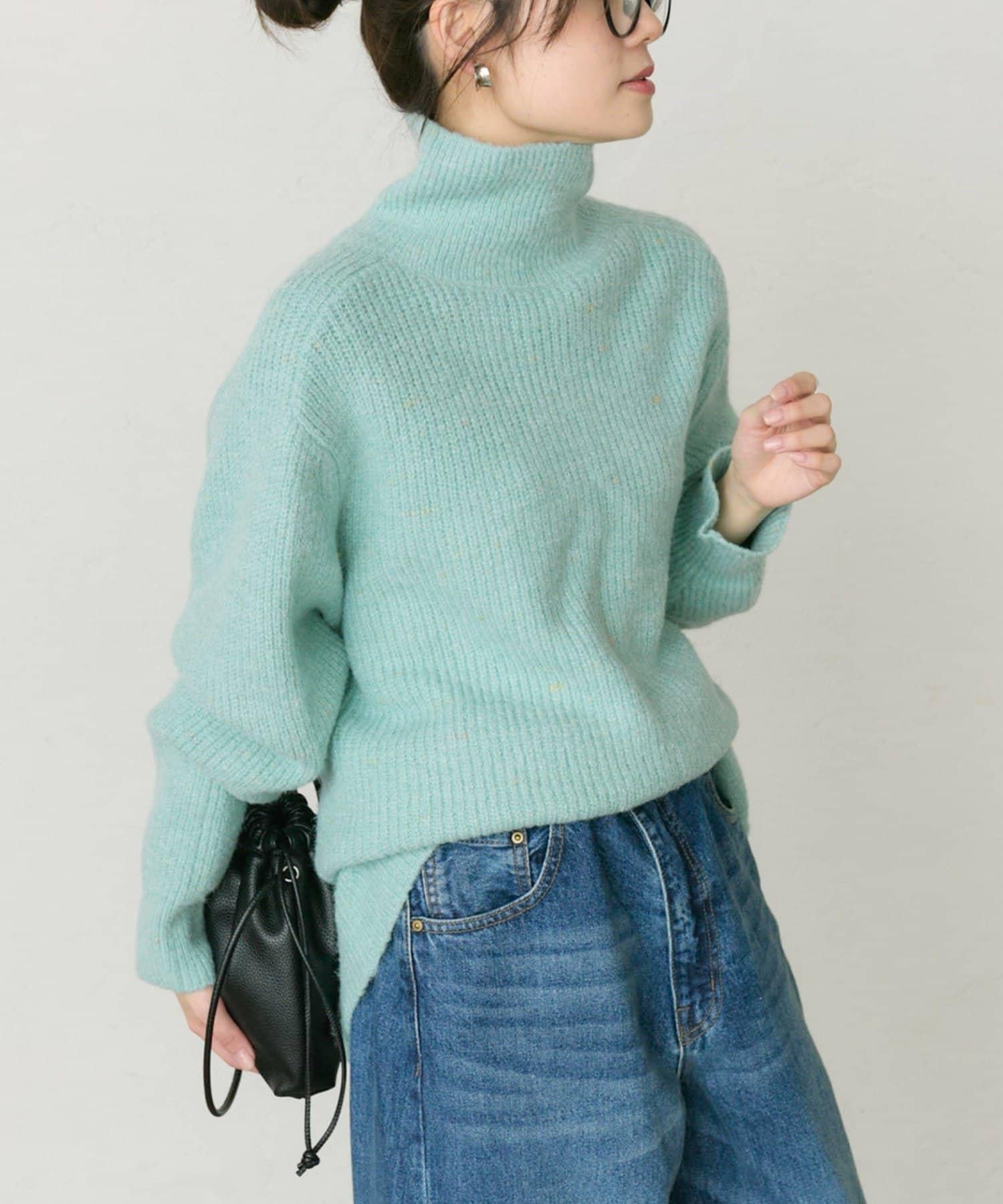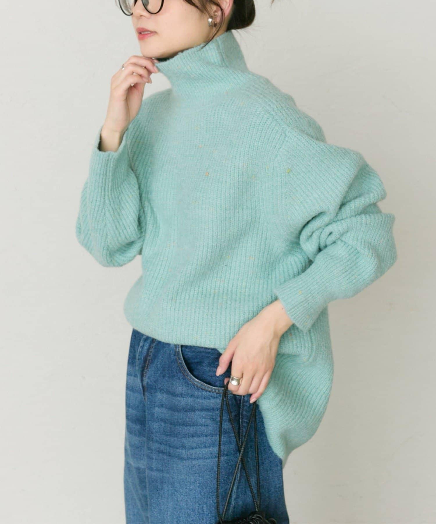 高領針織套頭衫,多色棉結恰到好處地突出了底色。