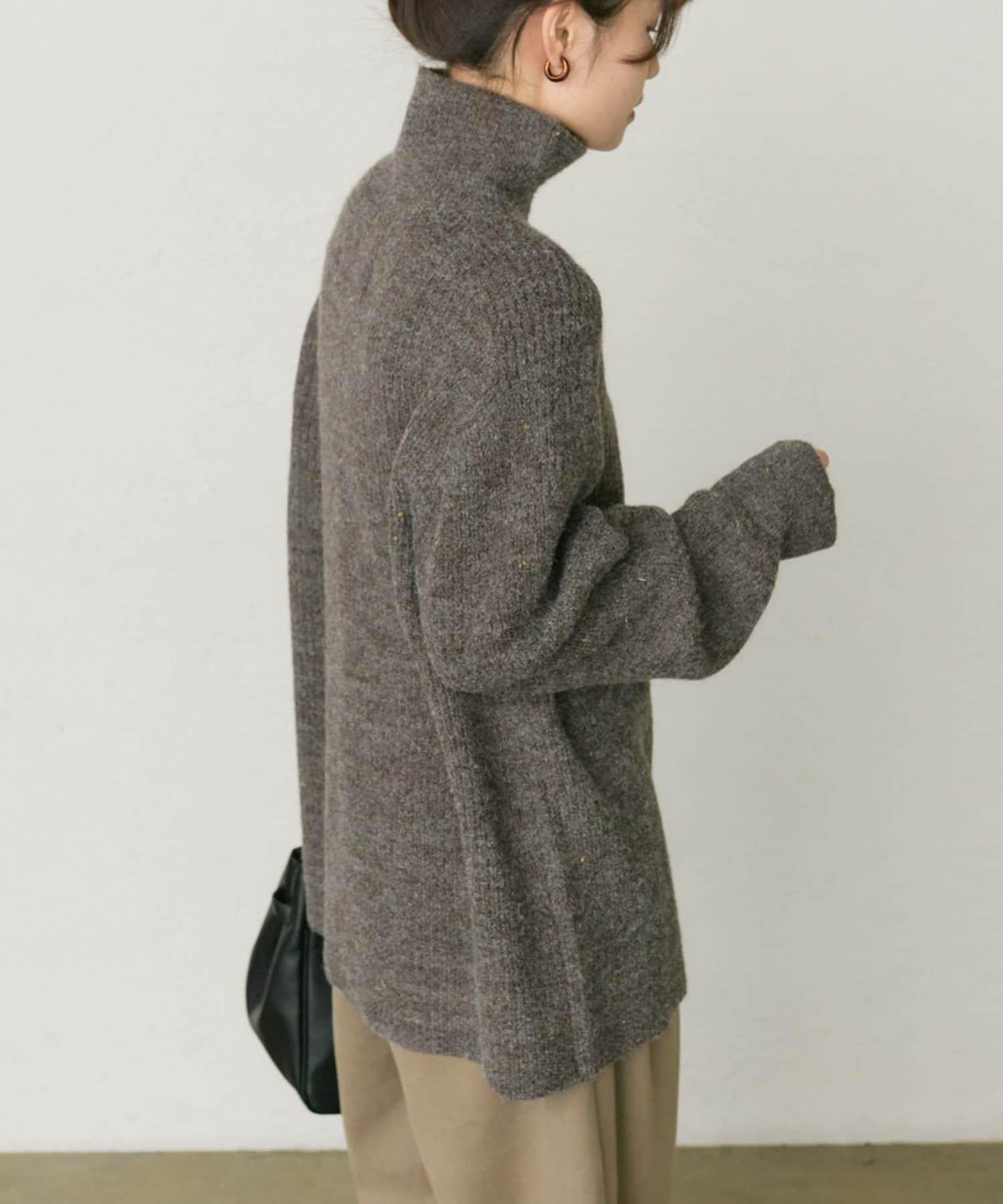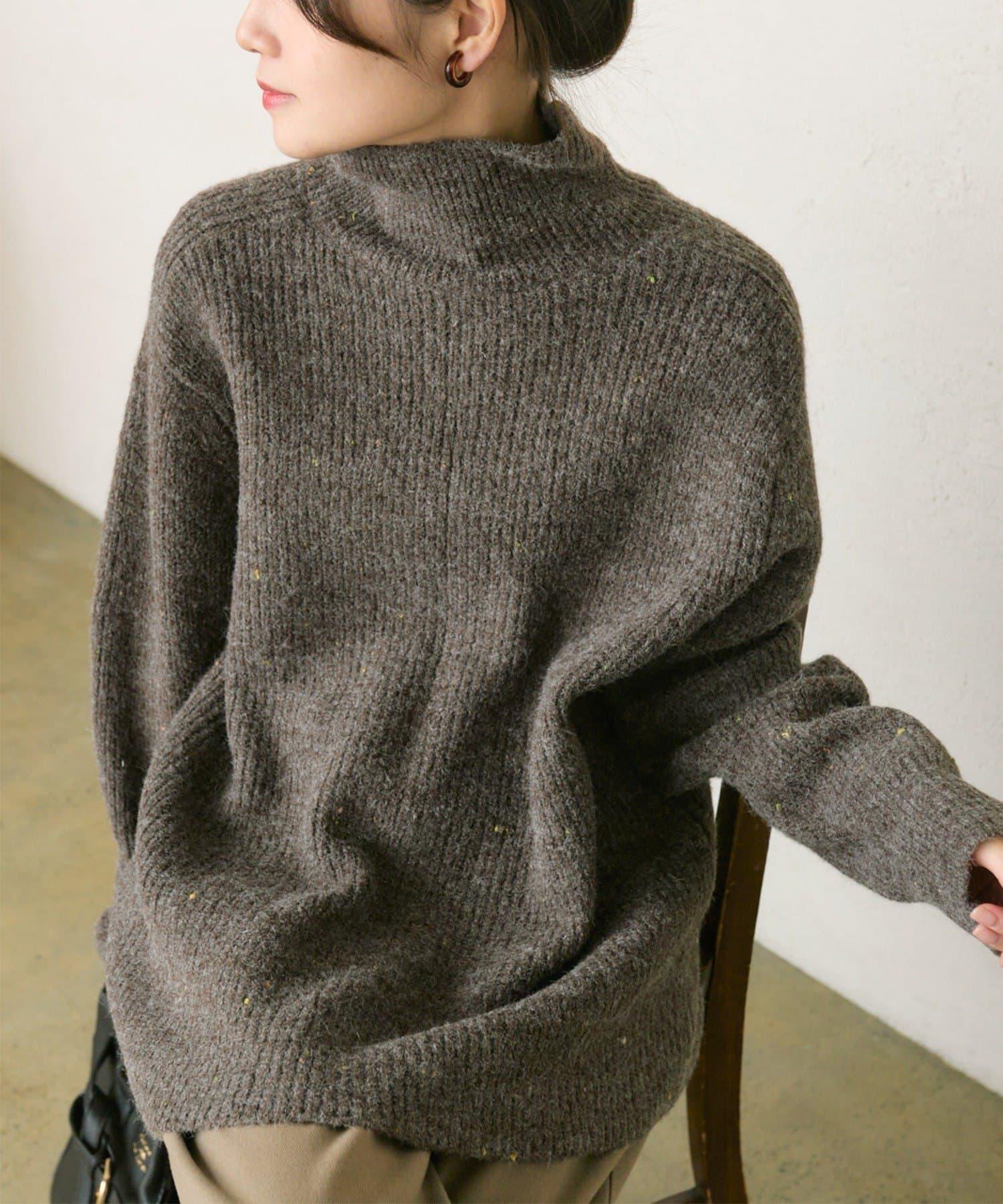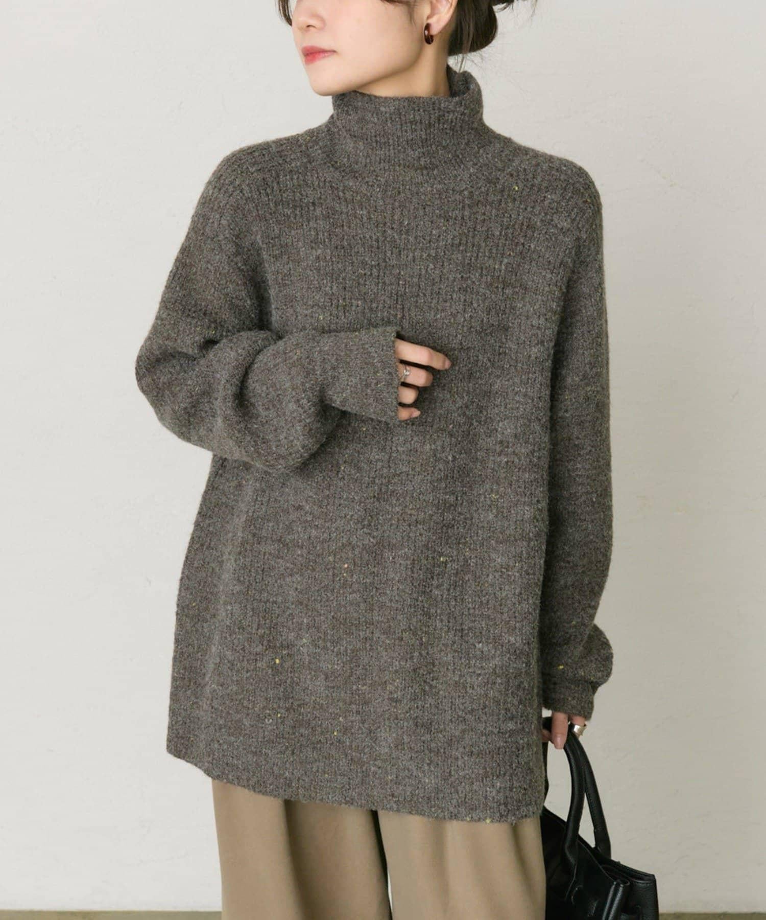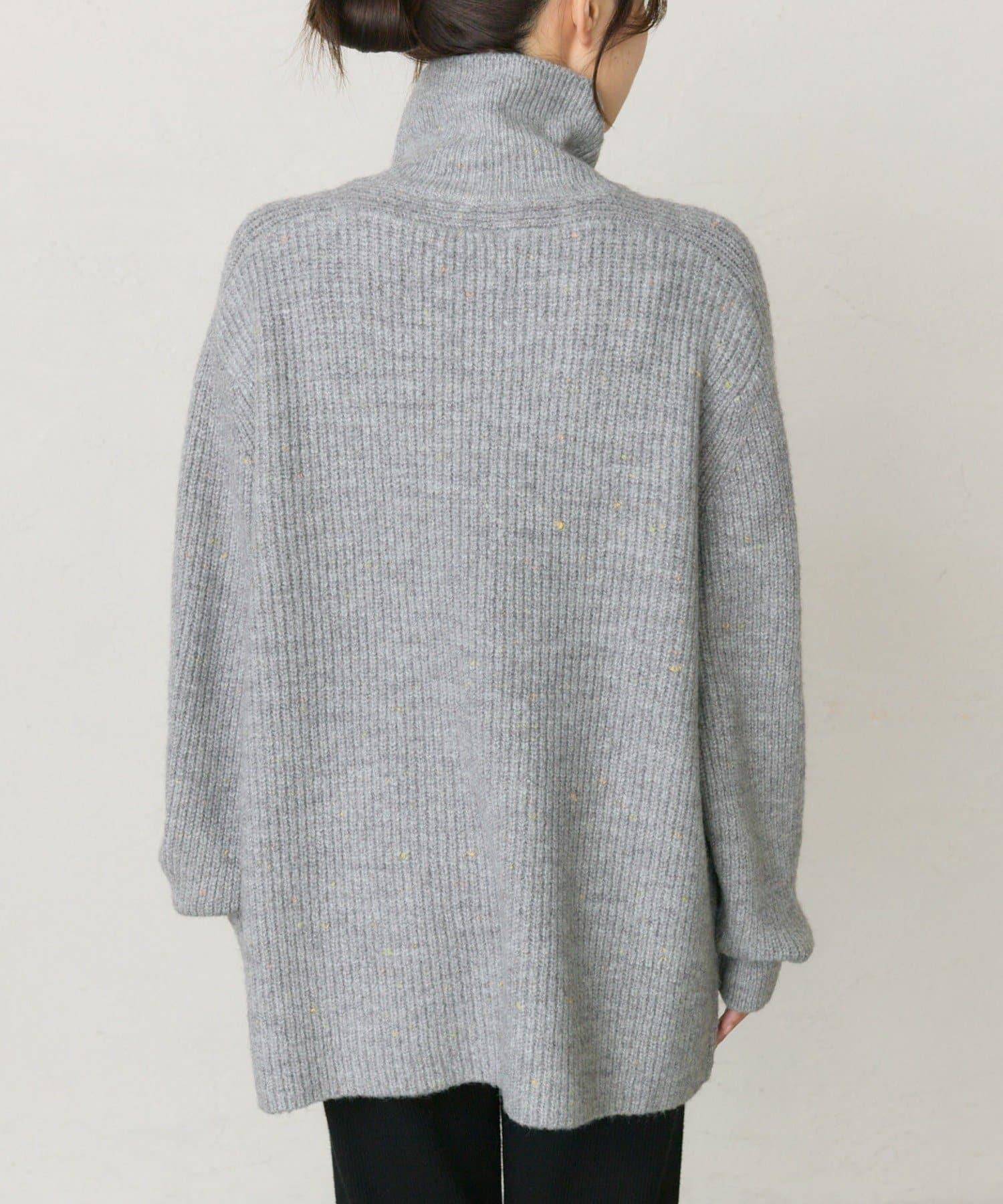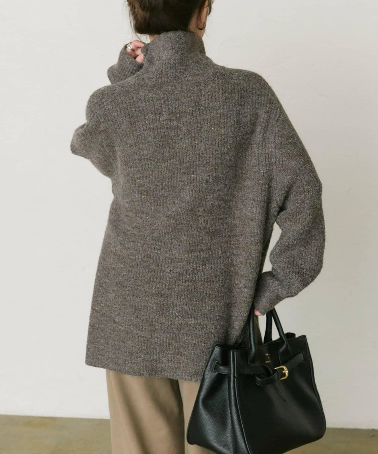 高領針織套頭衫,多色棉結恰到好處地突出了底色。