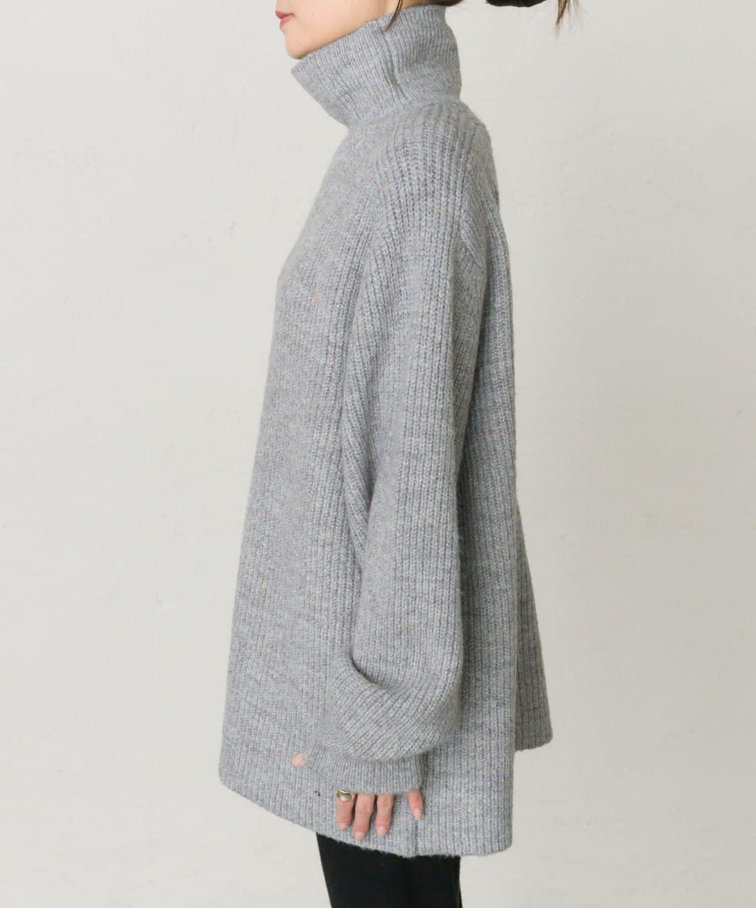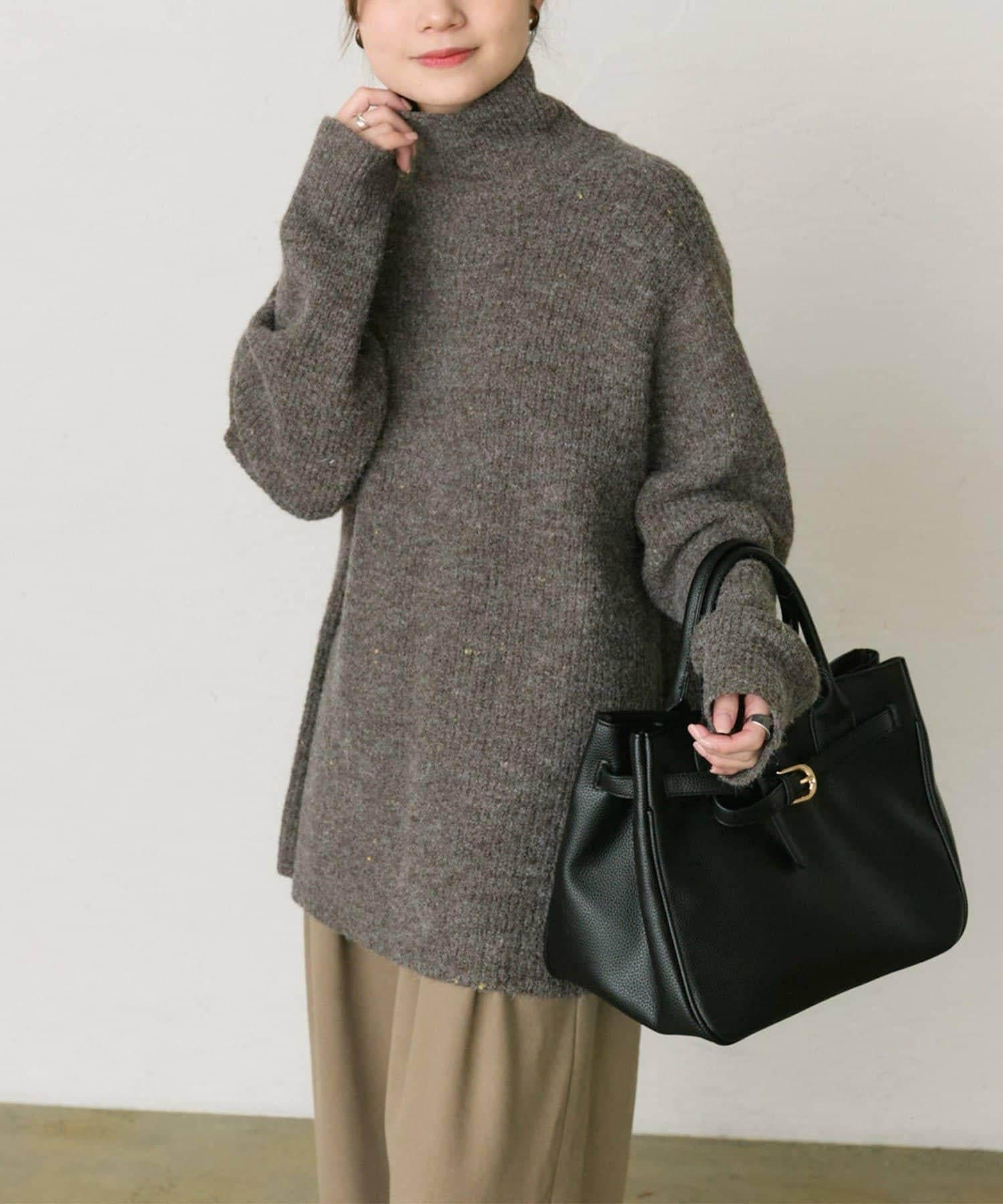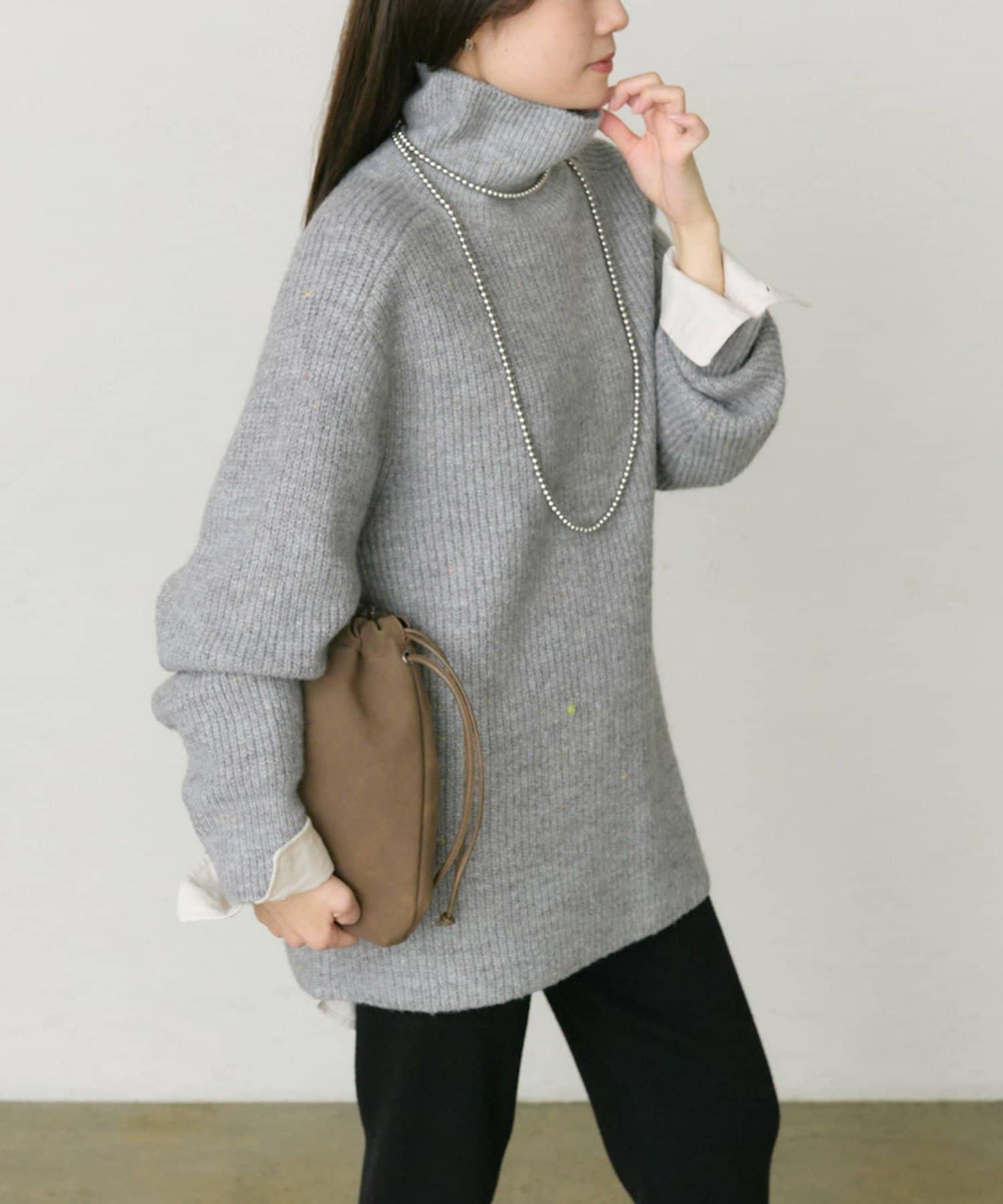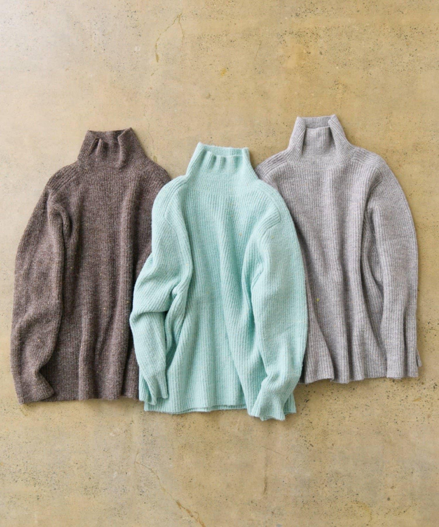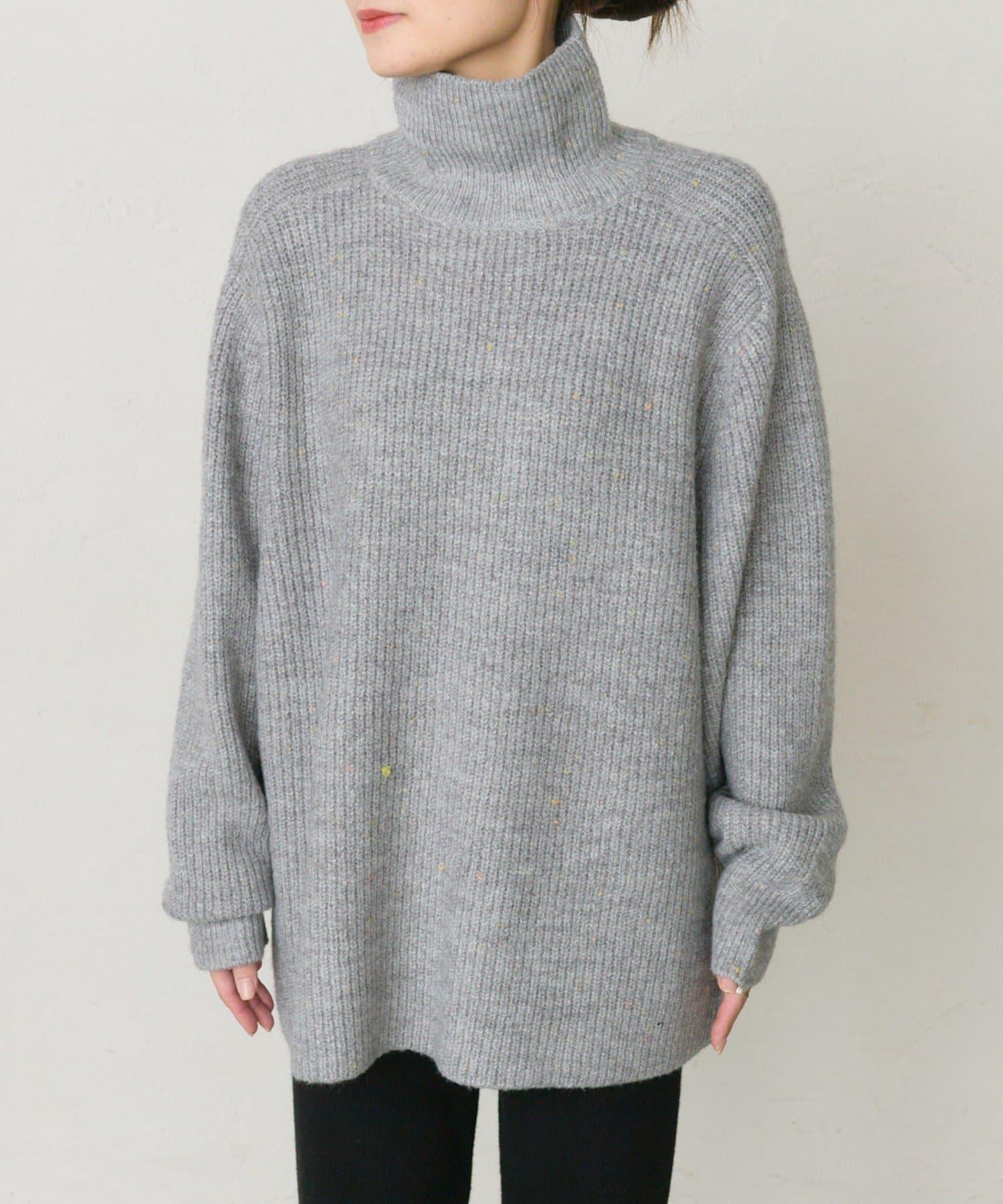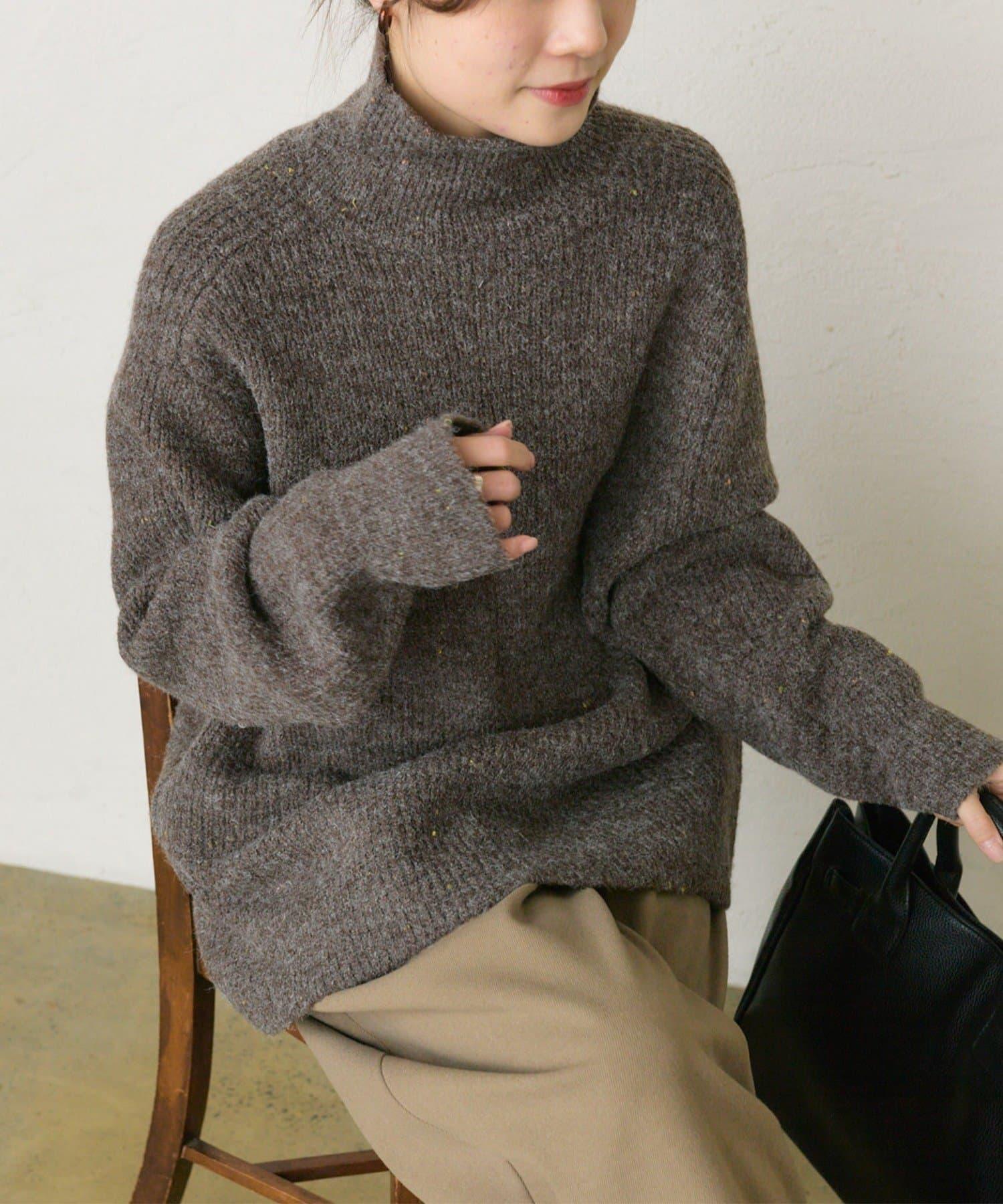 高領針織套頭衫,多色棉結恰到好處地突出了底色。