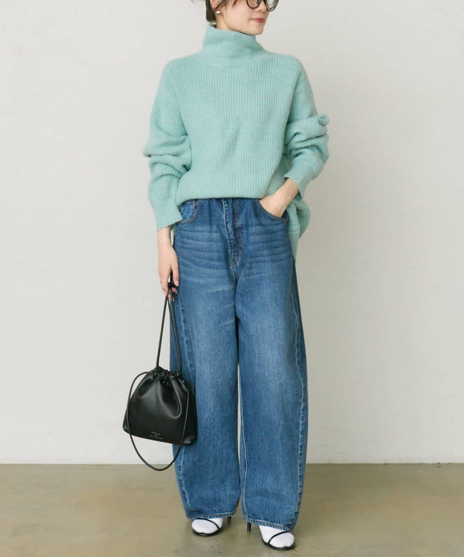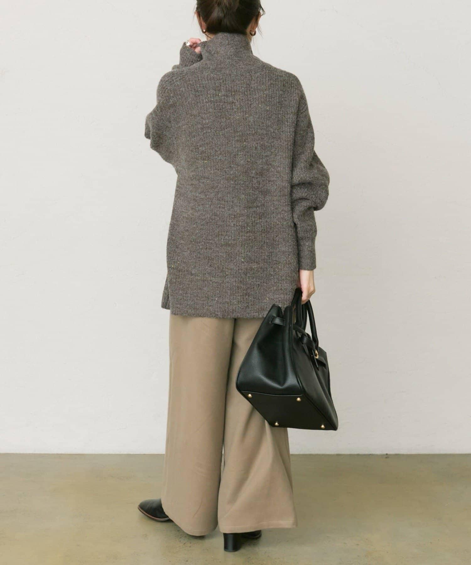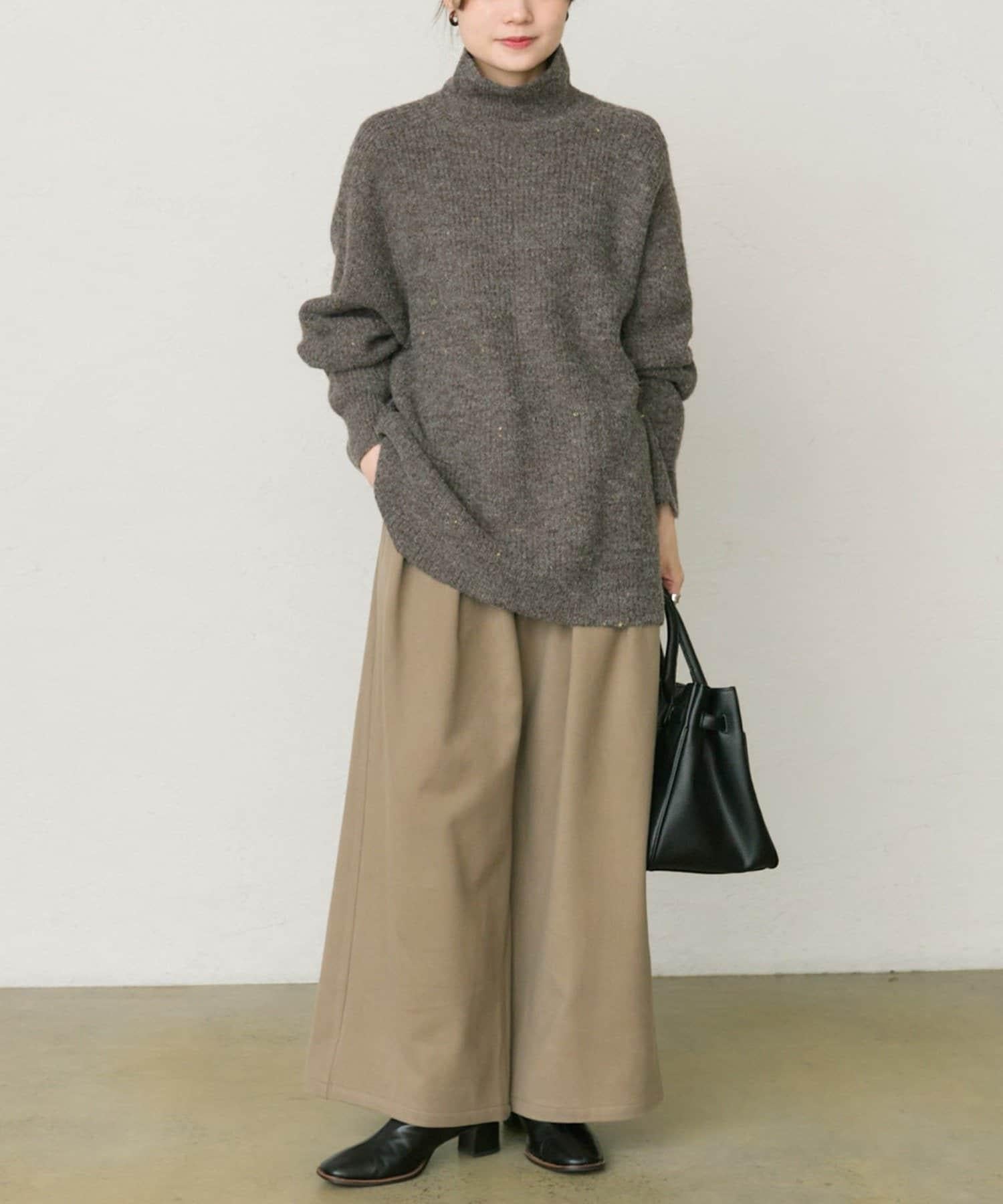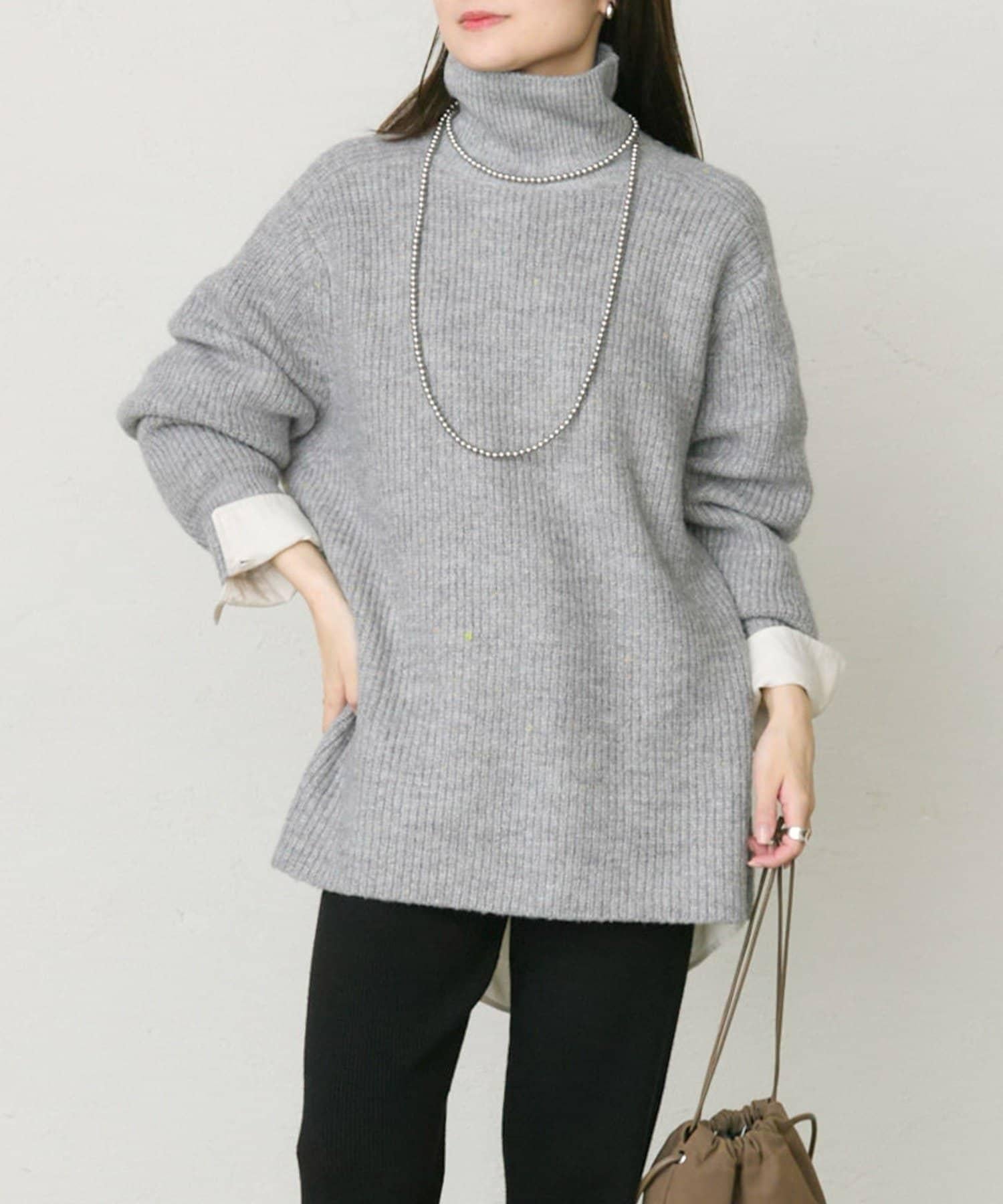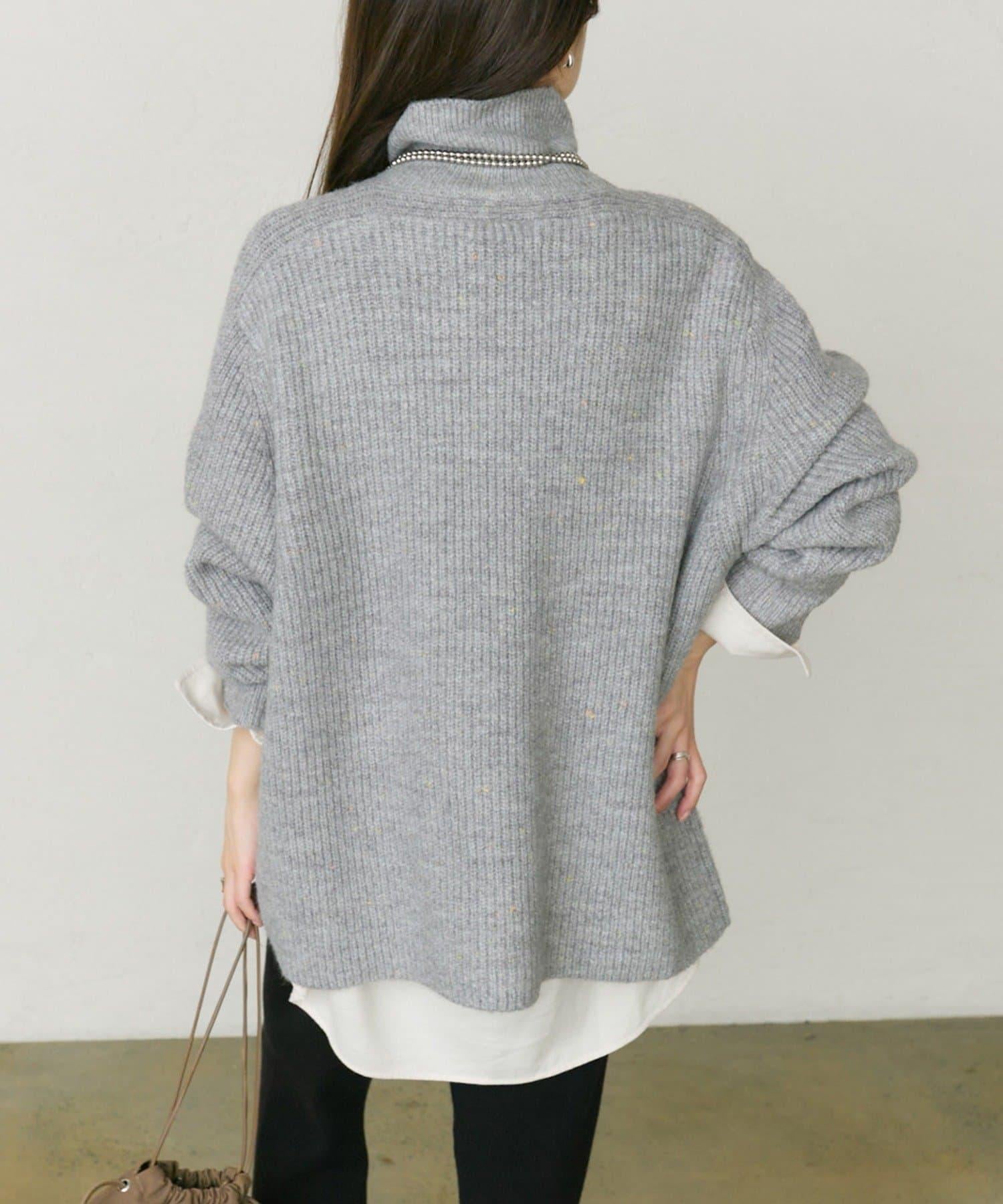 高領針織套頭衫,多色棉結恰到好處地突出了底色。