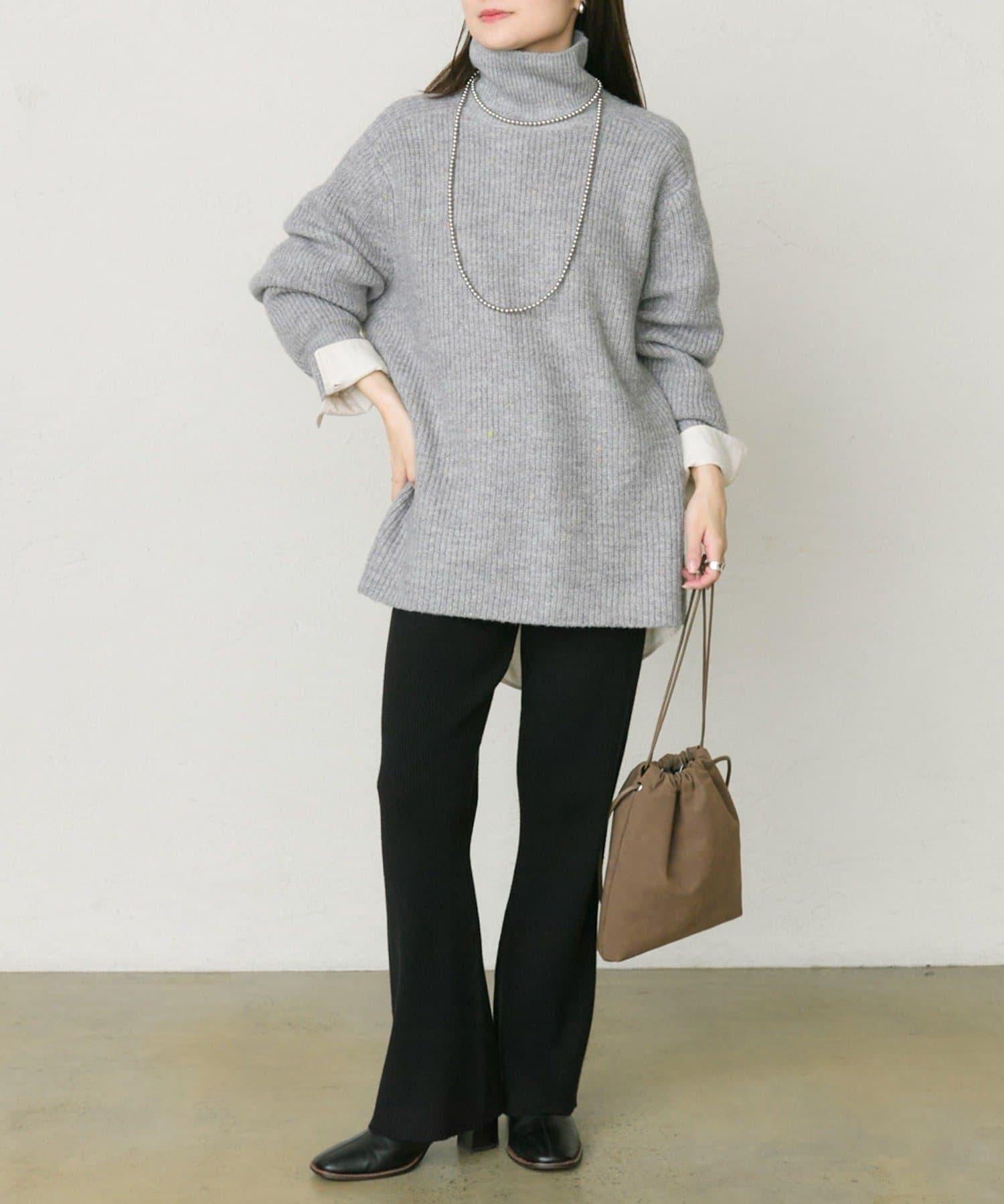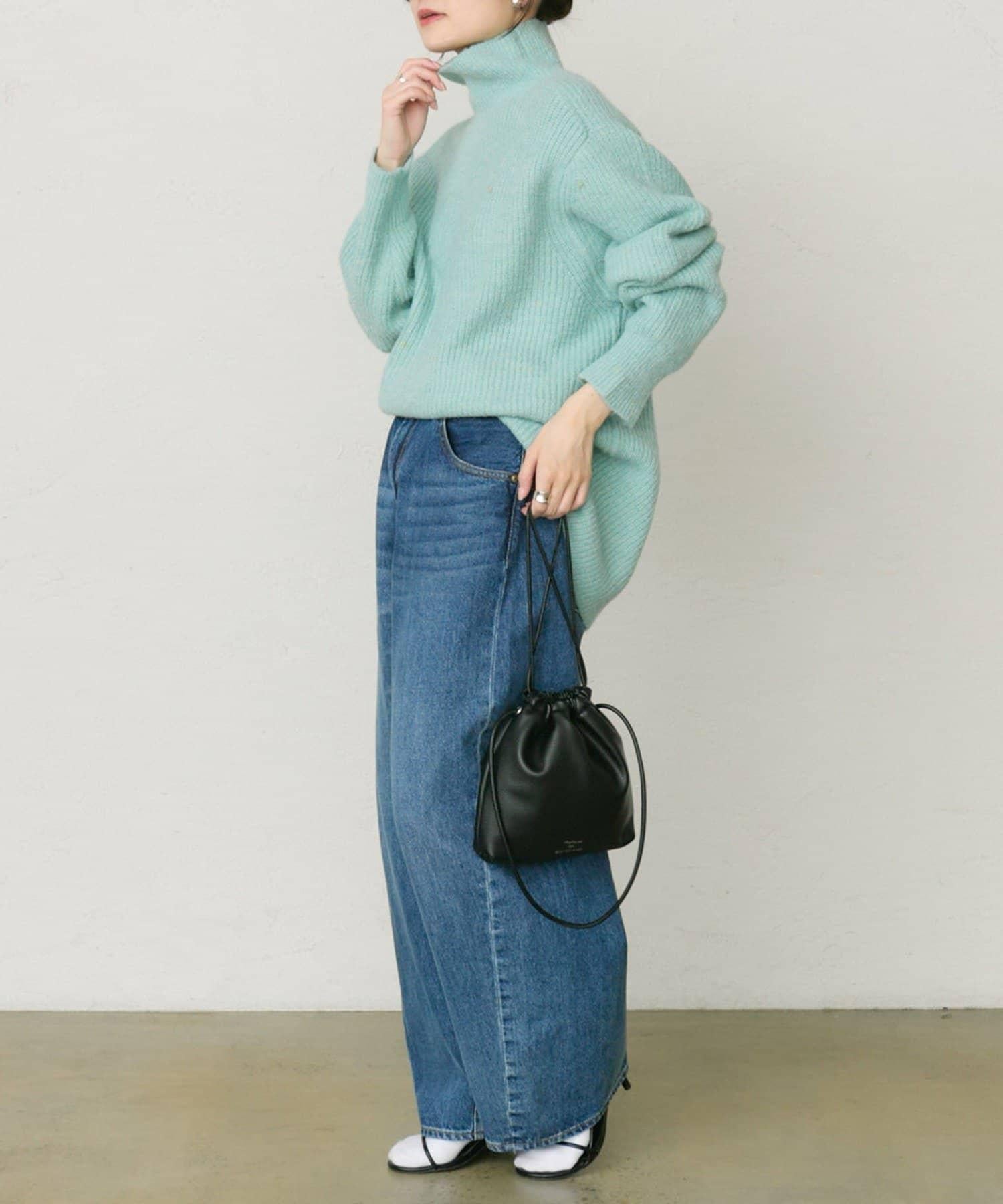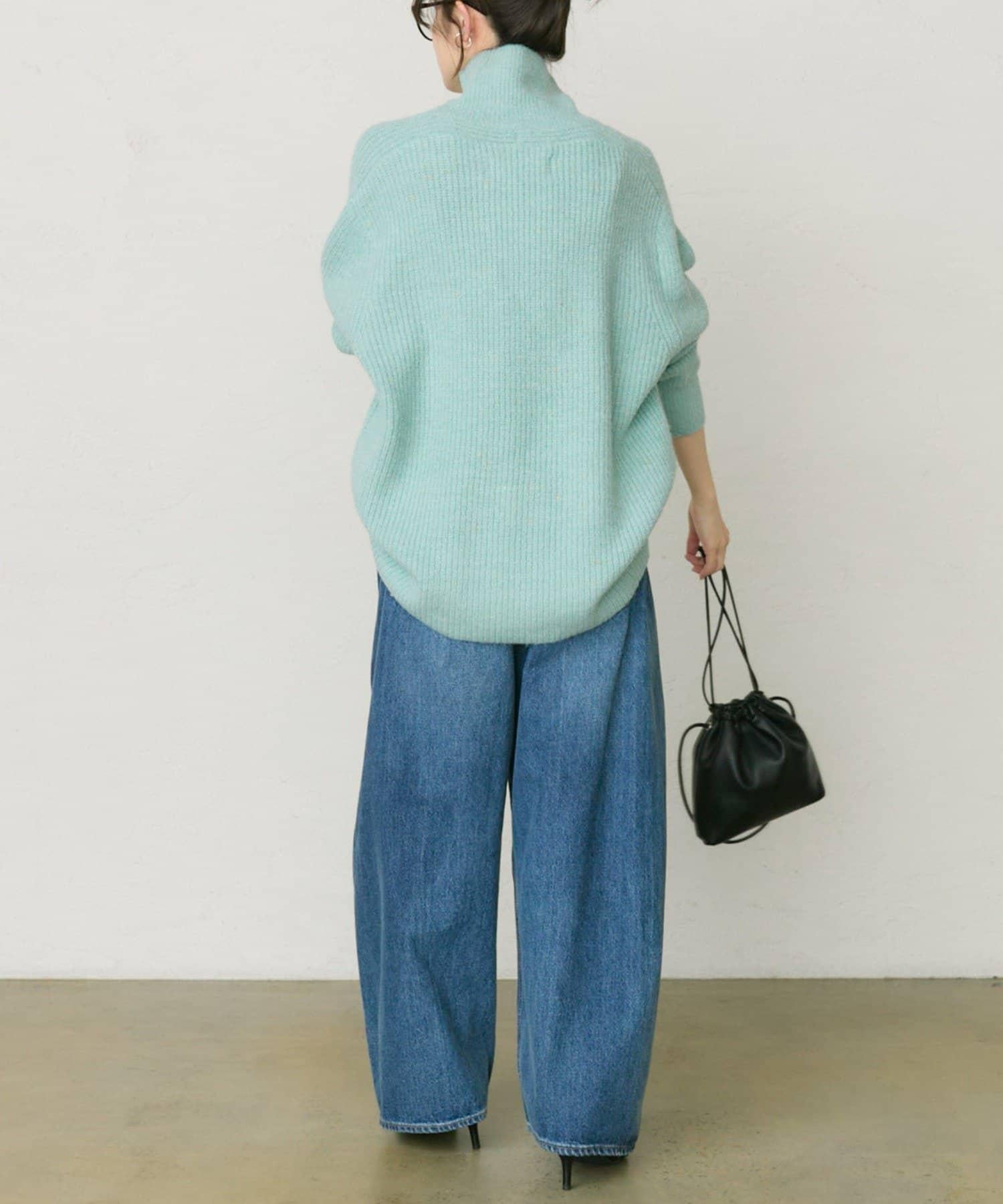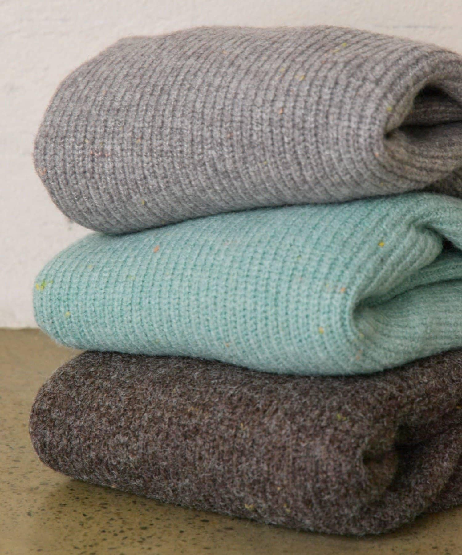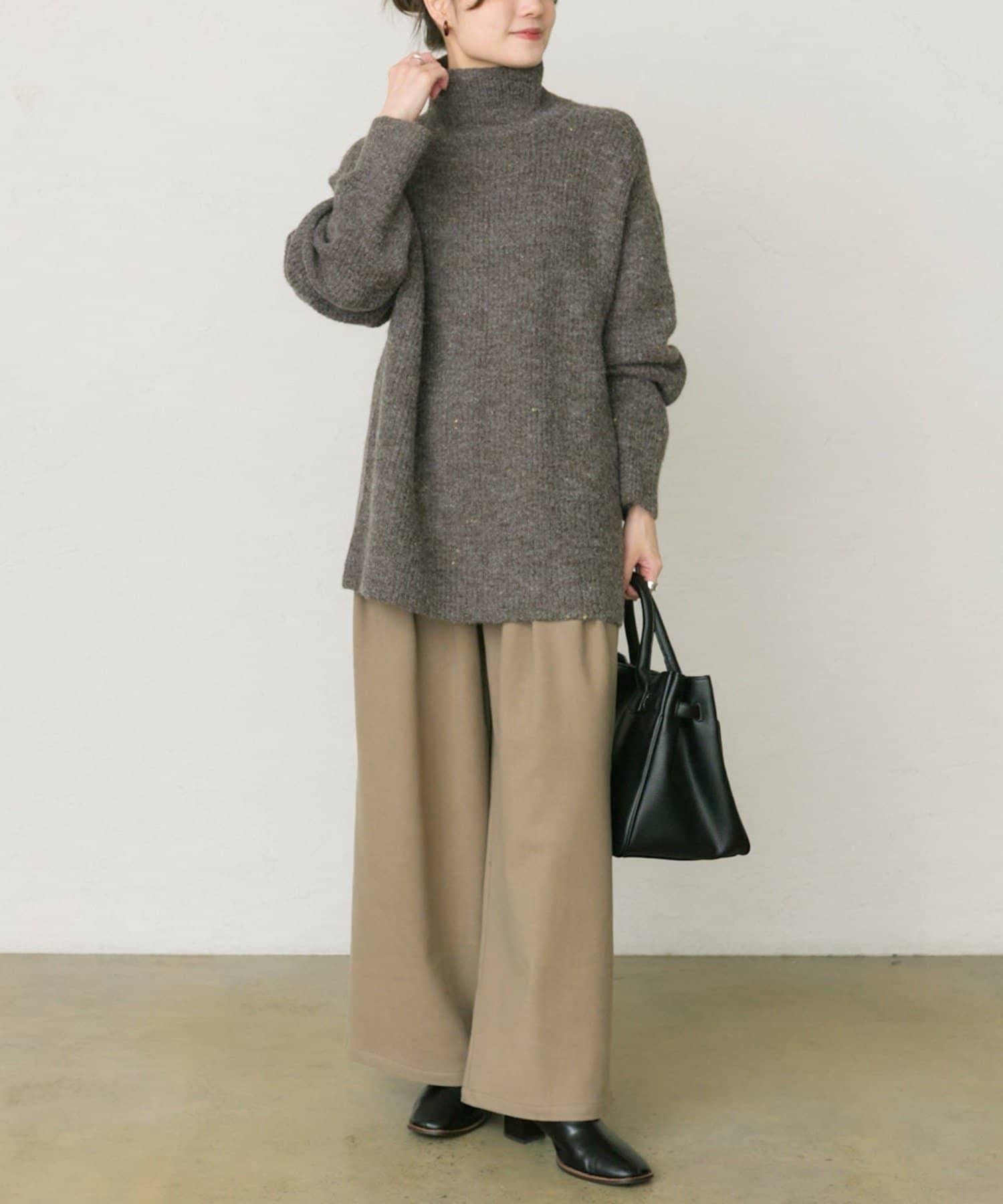 高領針織套頭衫,多色棉結恰到好處地突出了底色。