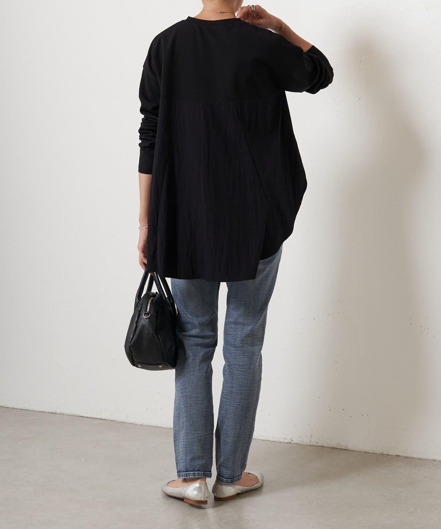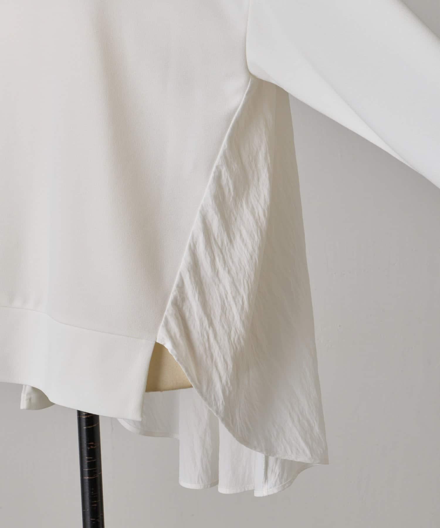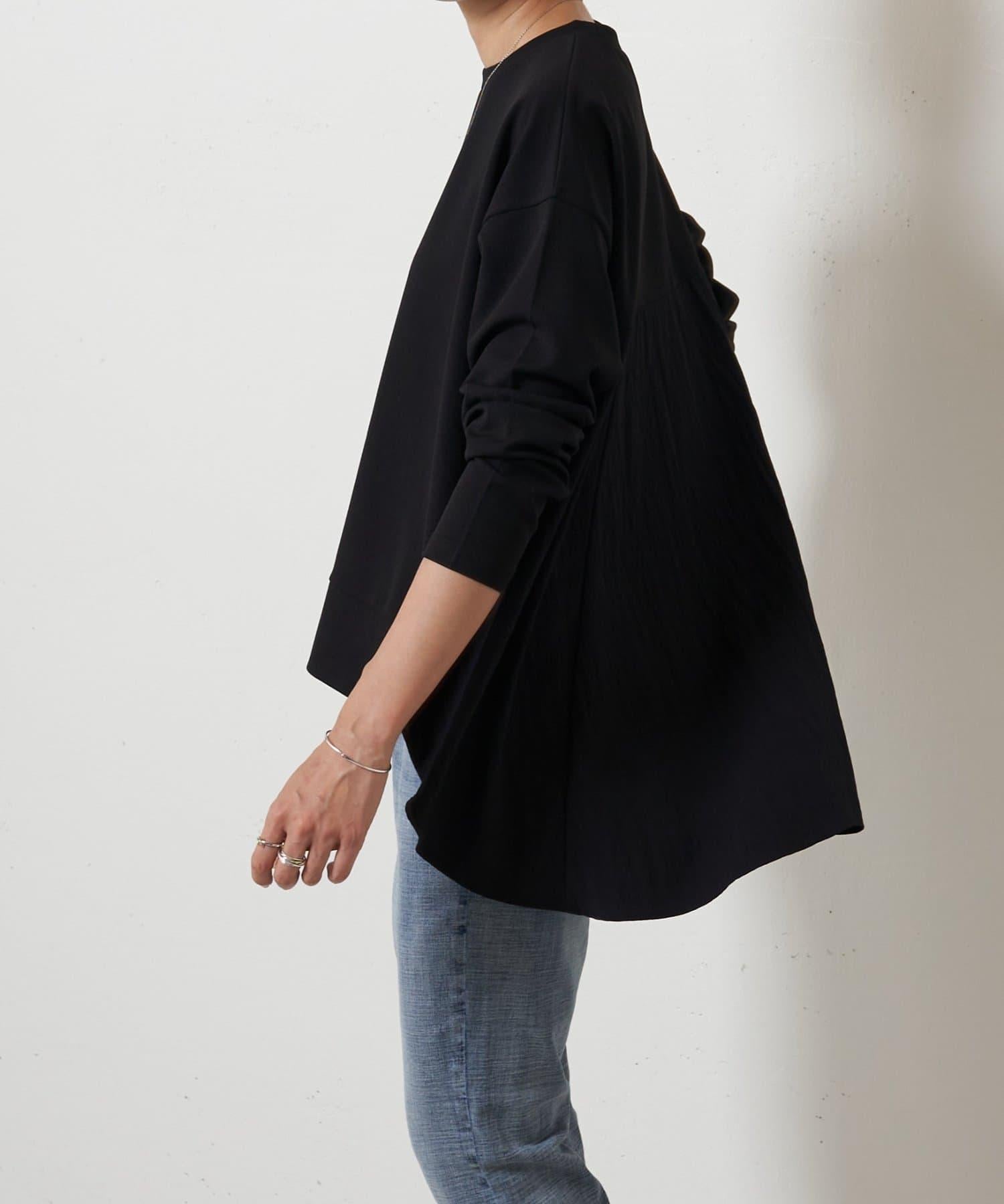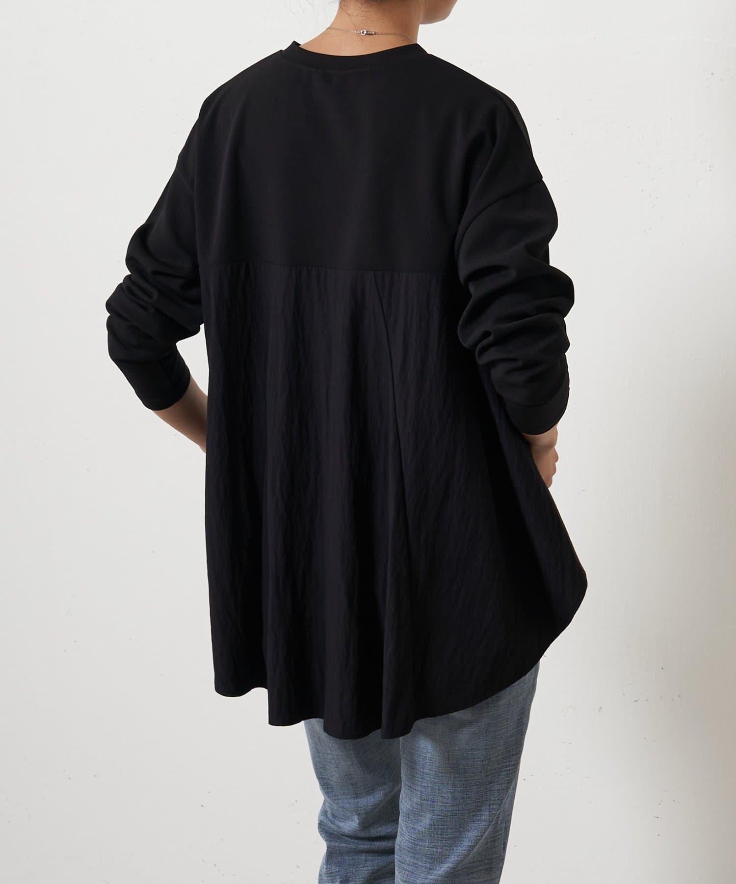 這是一款剪裁縫製的服裝,背部有編織物對接,只需一件即可搭配。