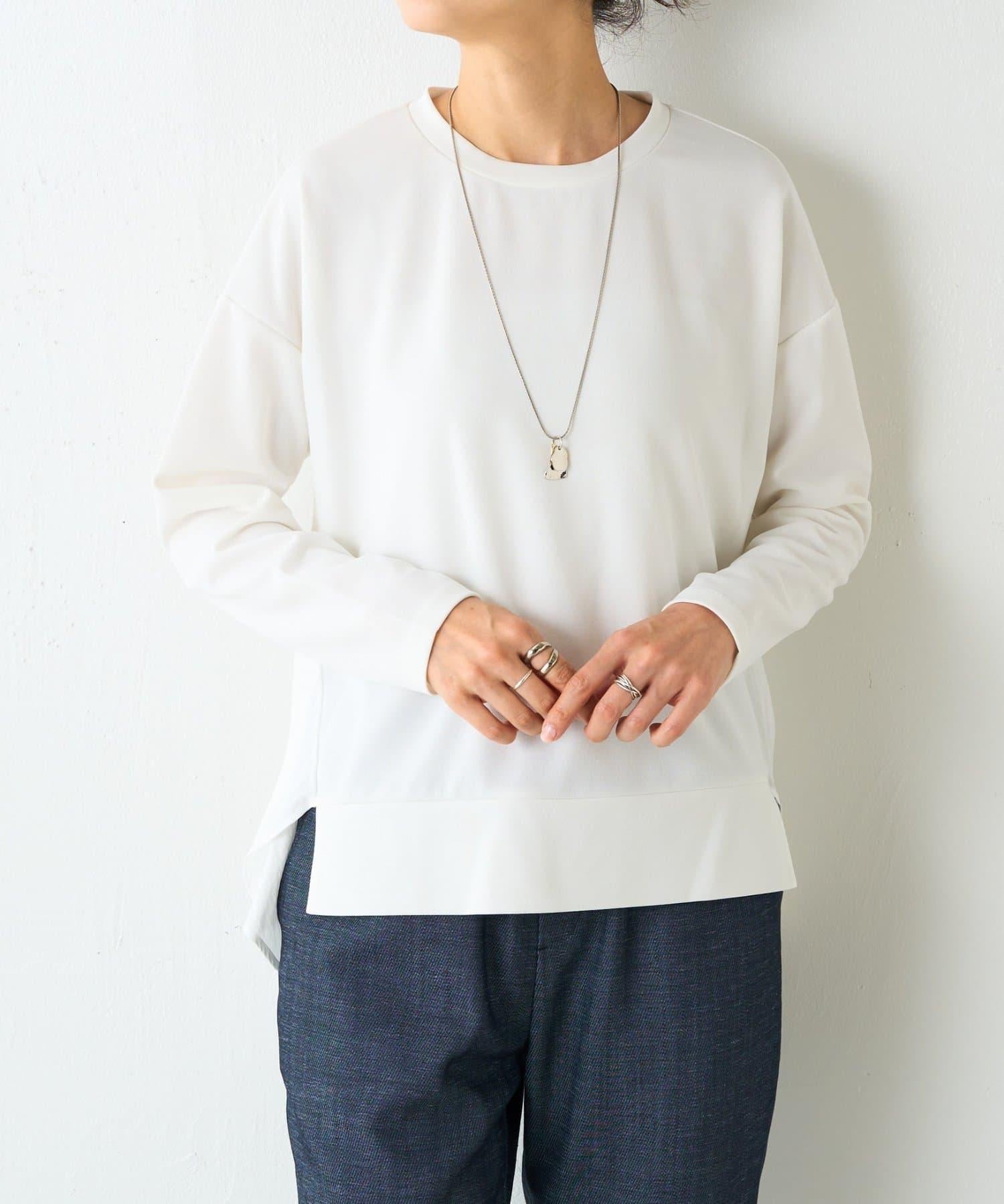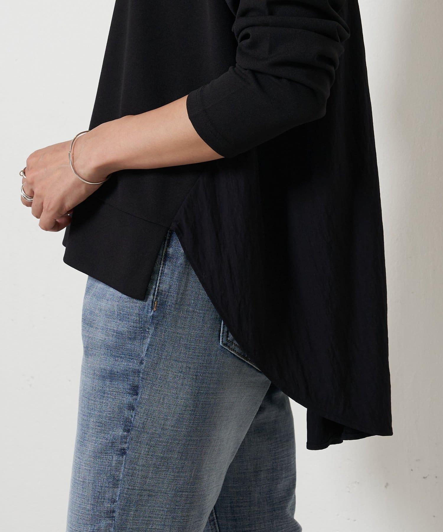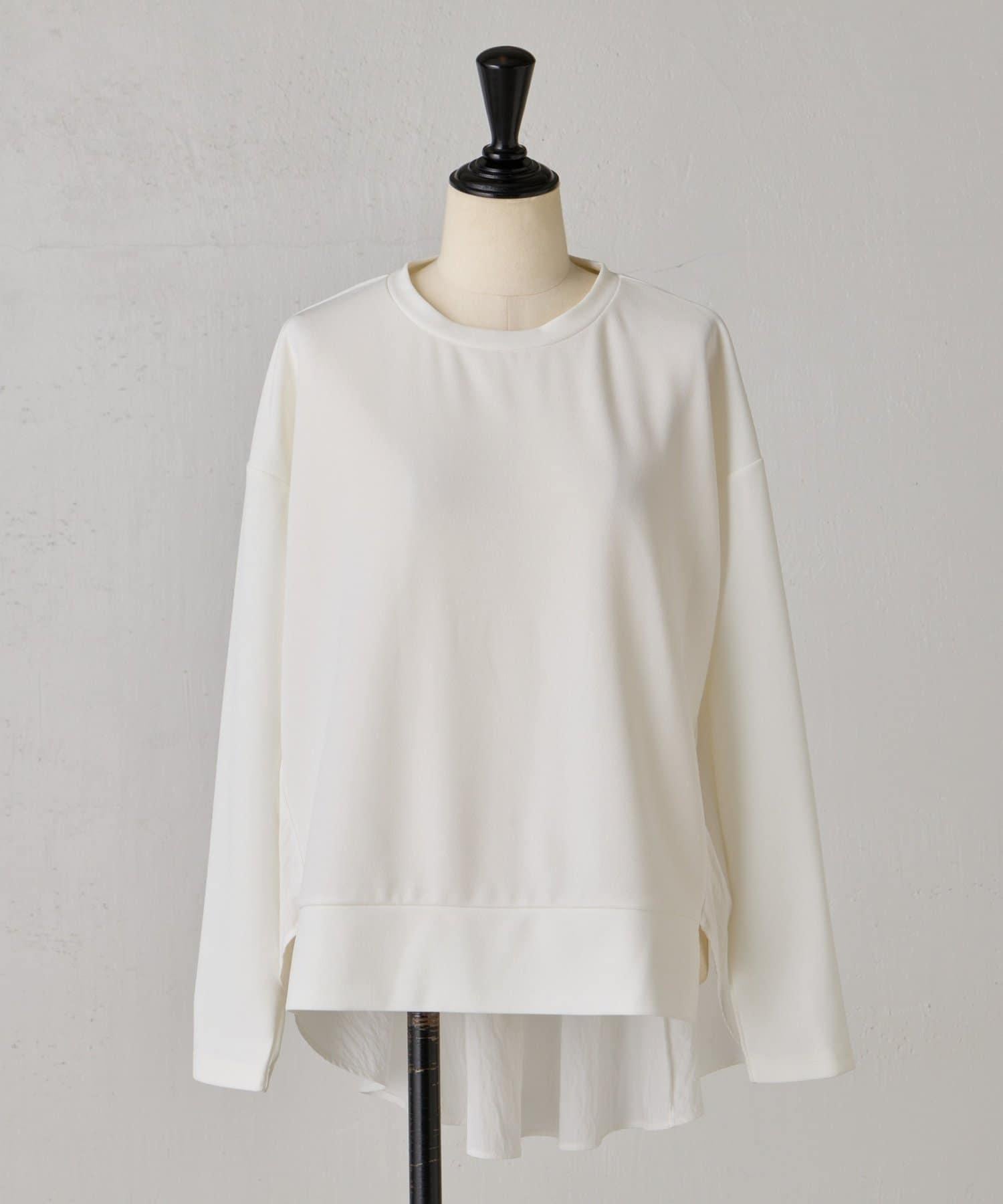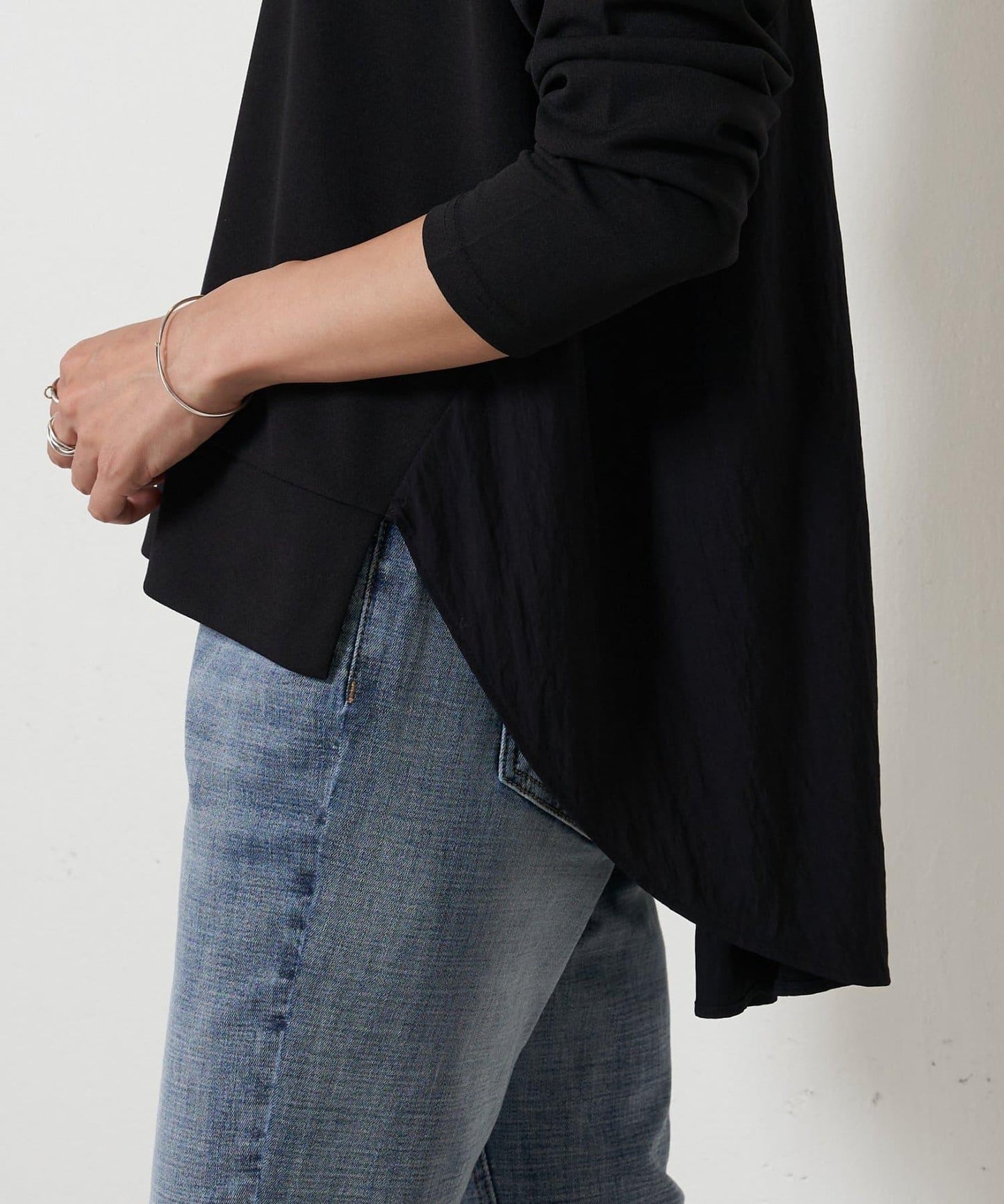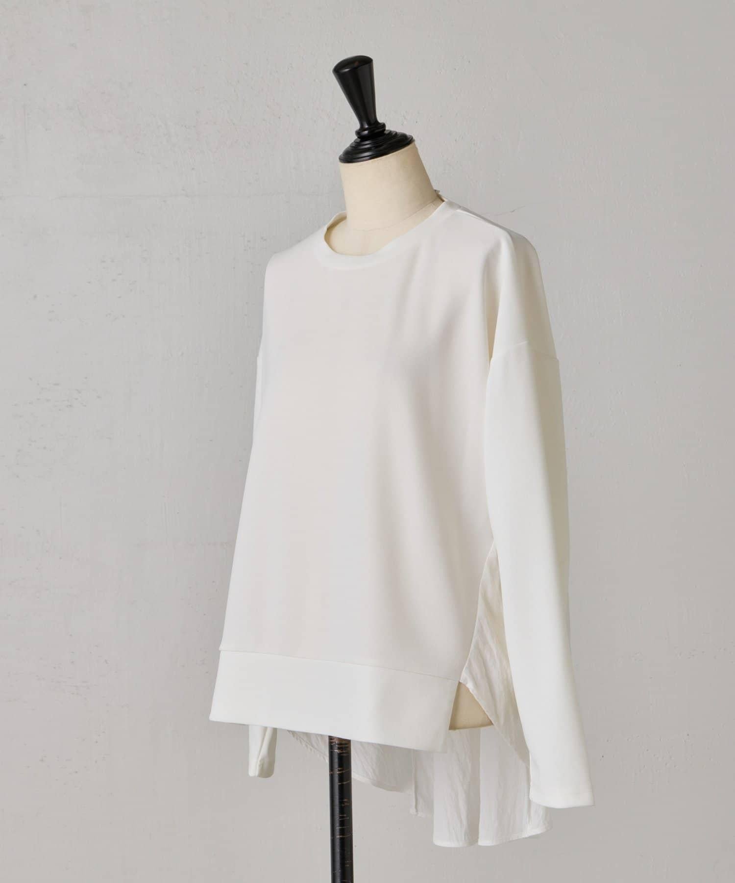 這是一款剪裁縫製的服裝,背部有編織物對接,只需一件即可搭配。