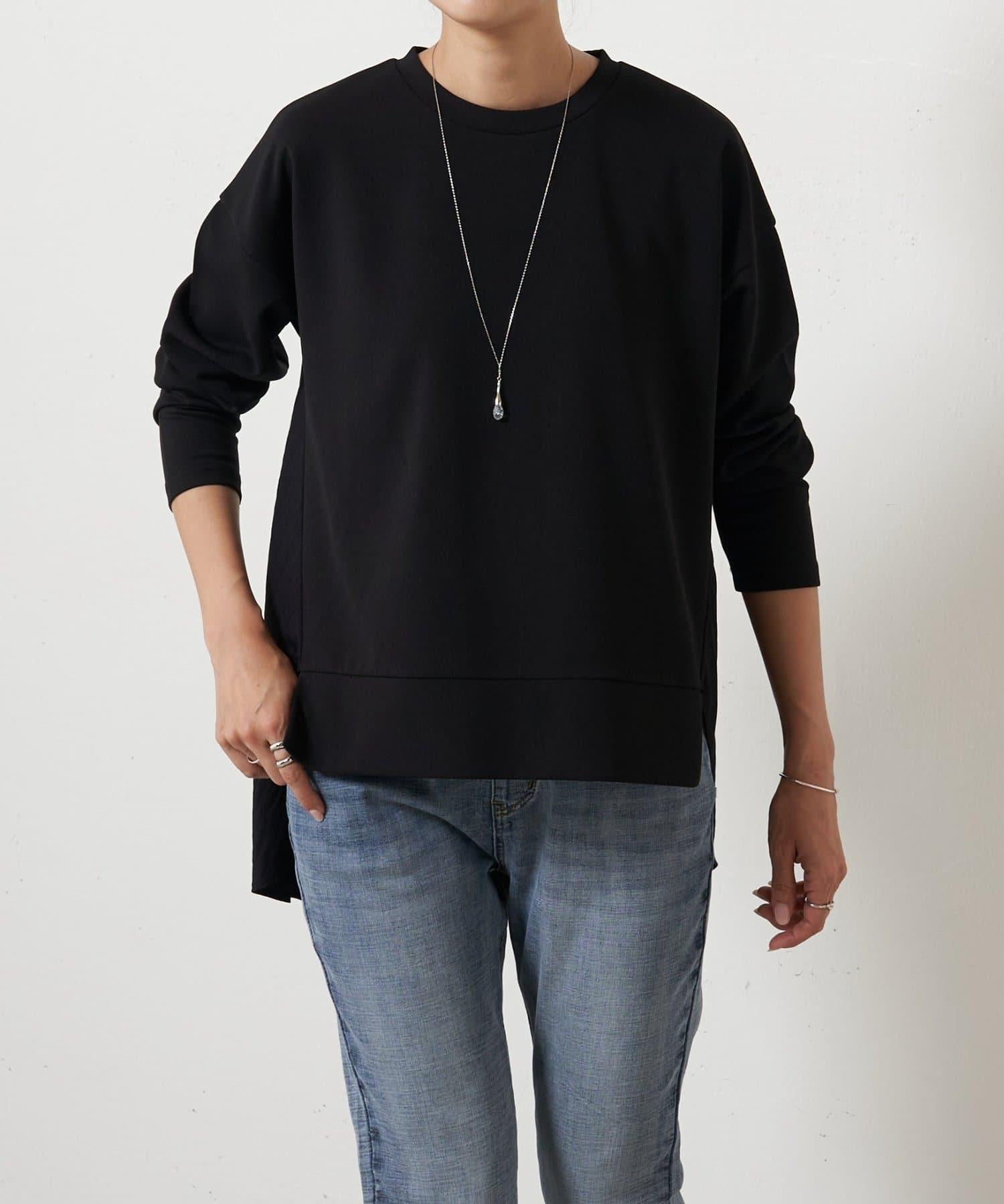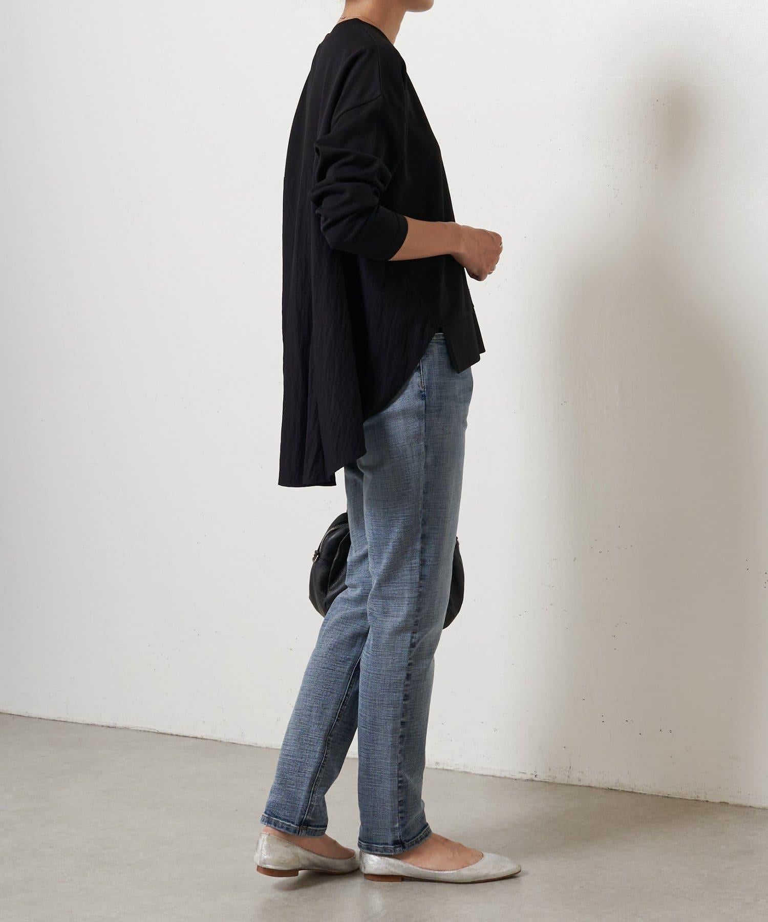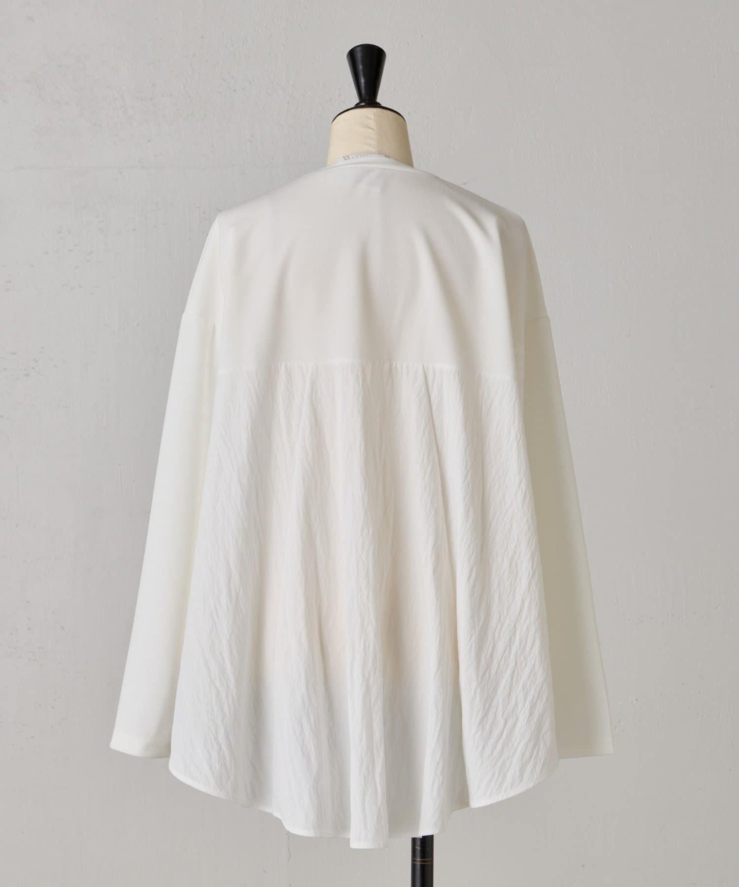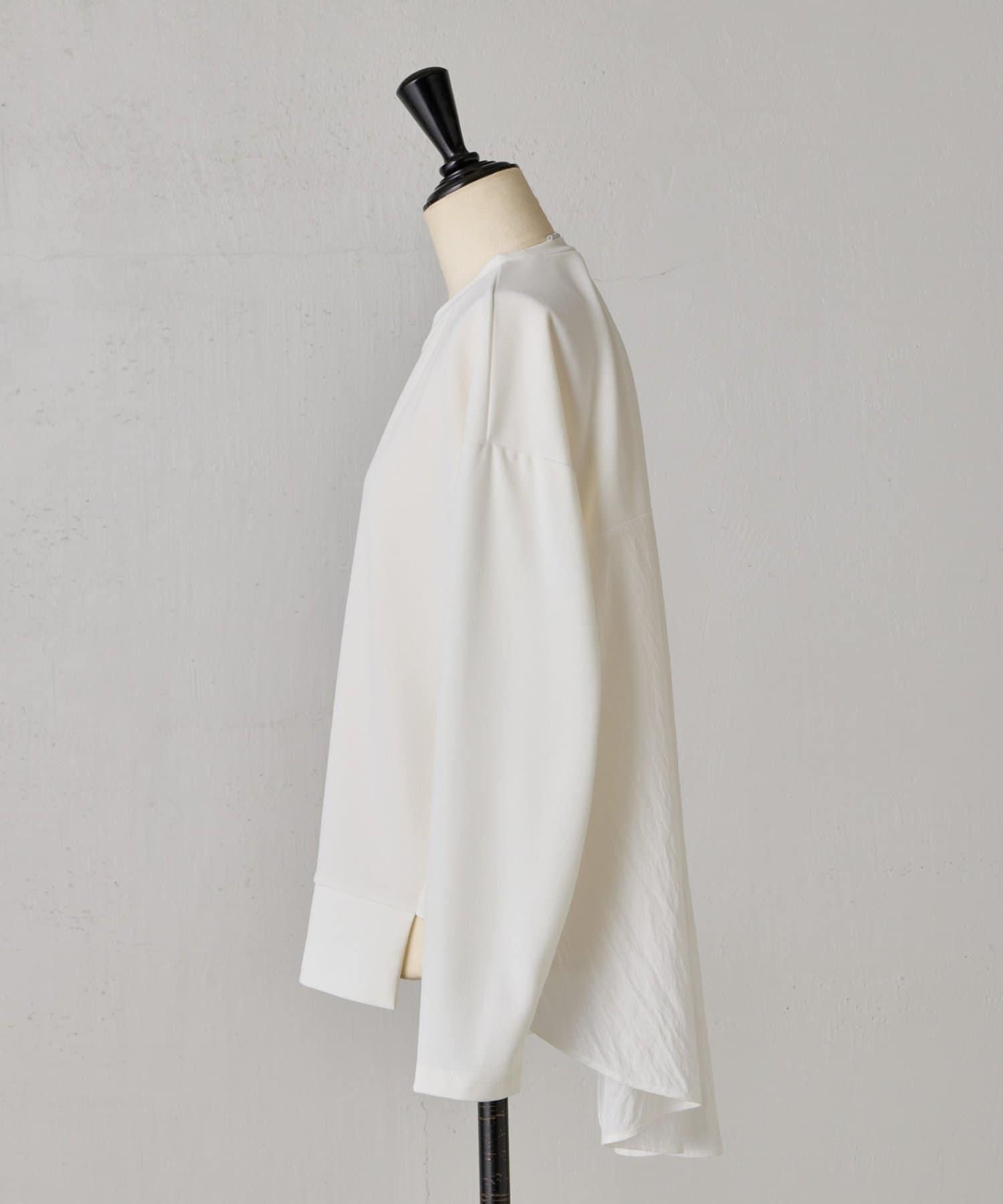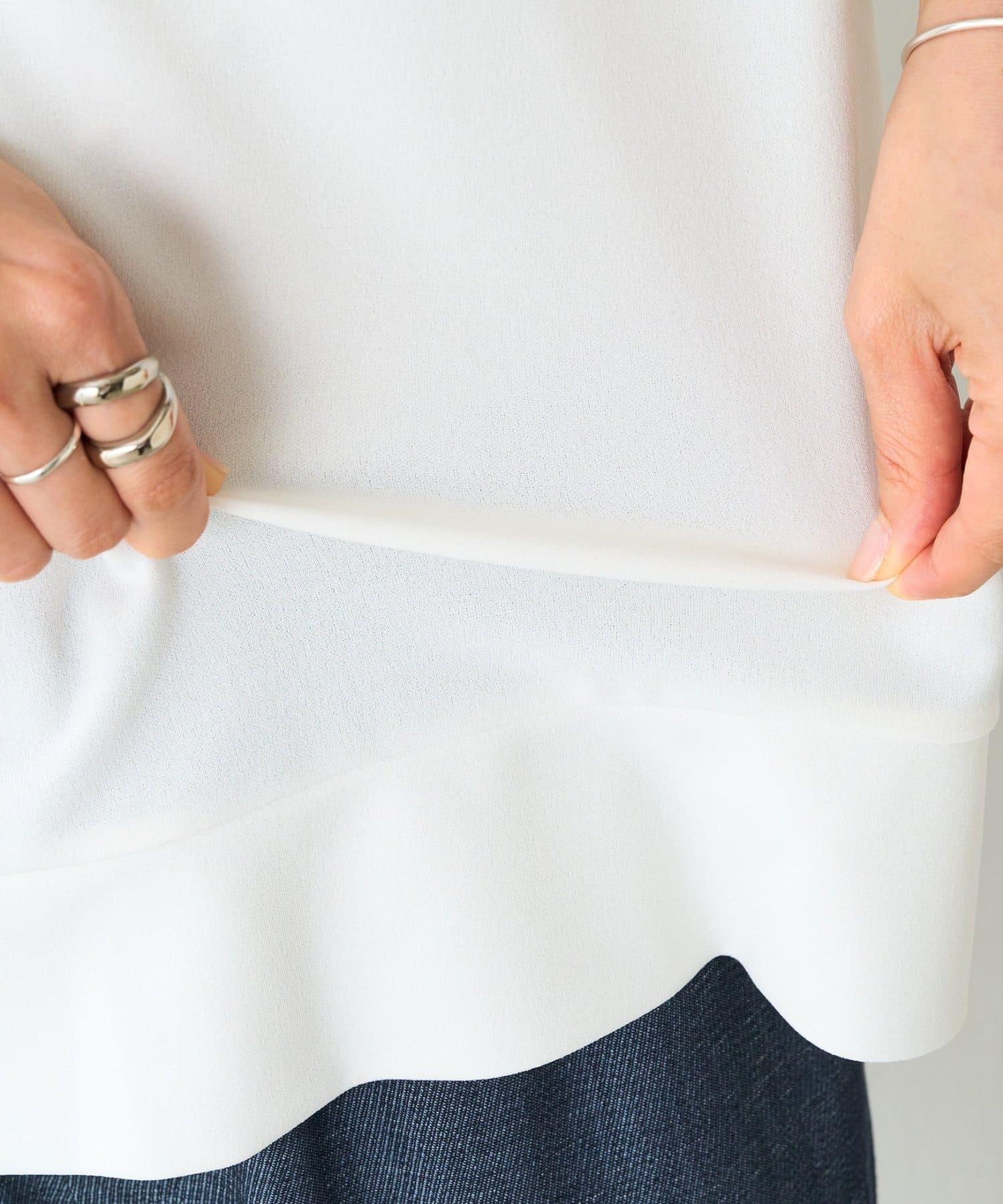前後不同的側邊開衩設計給人寬鬆的感覺,並突出了喇叭的造型。