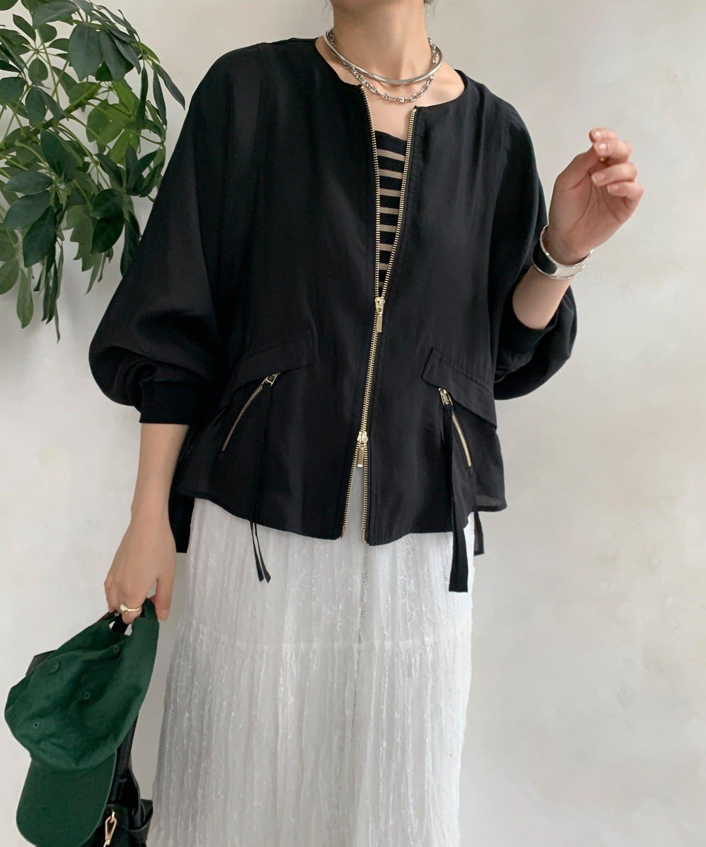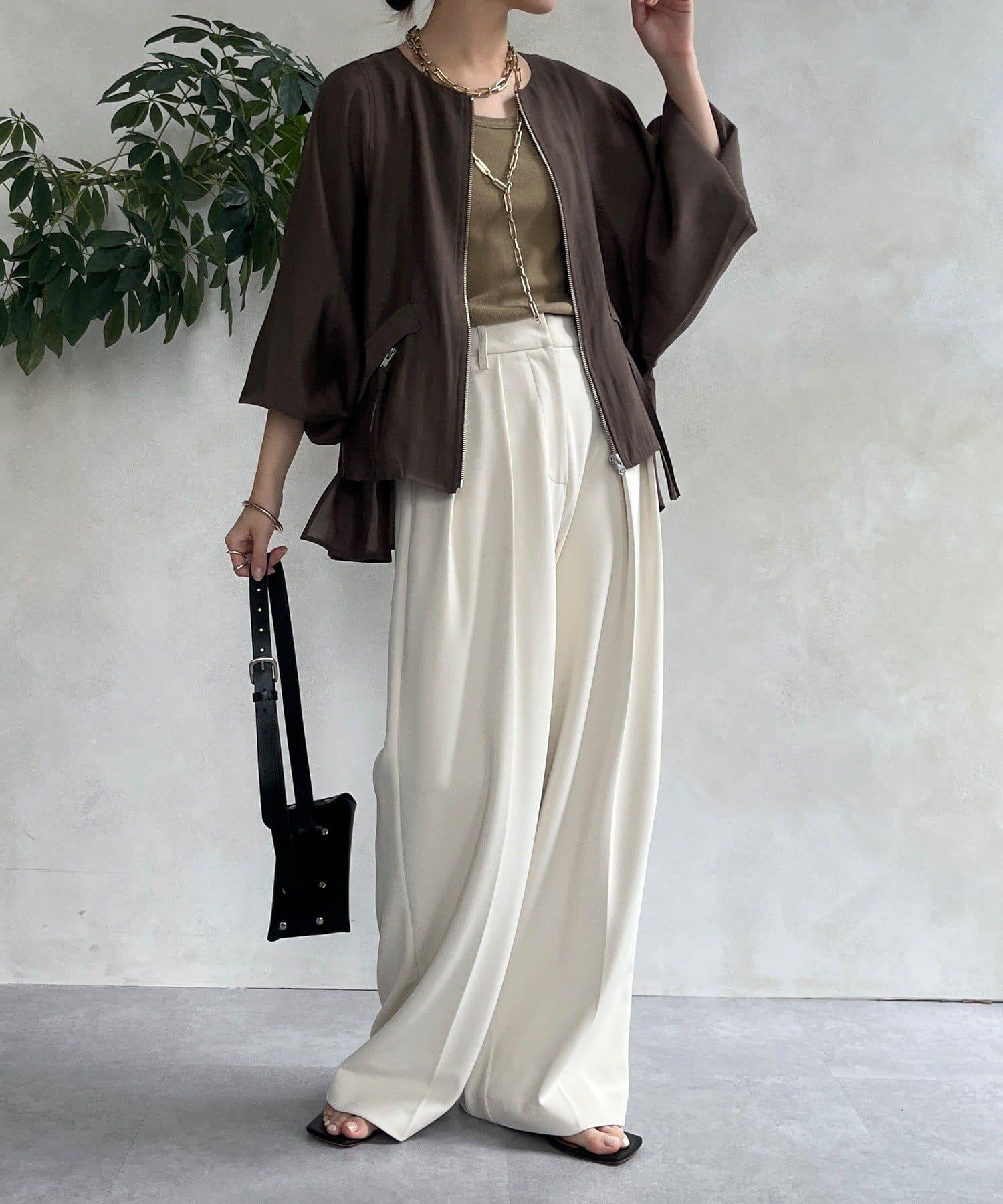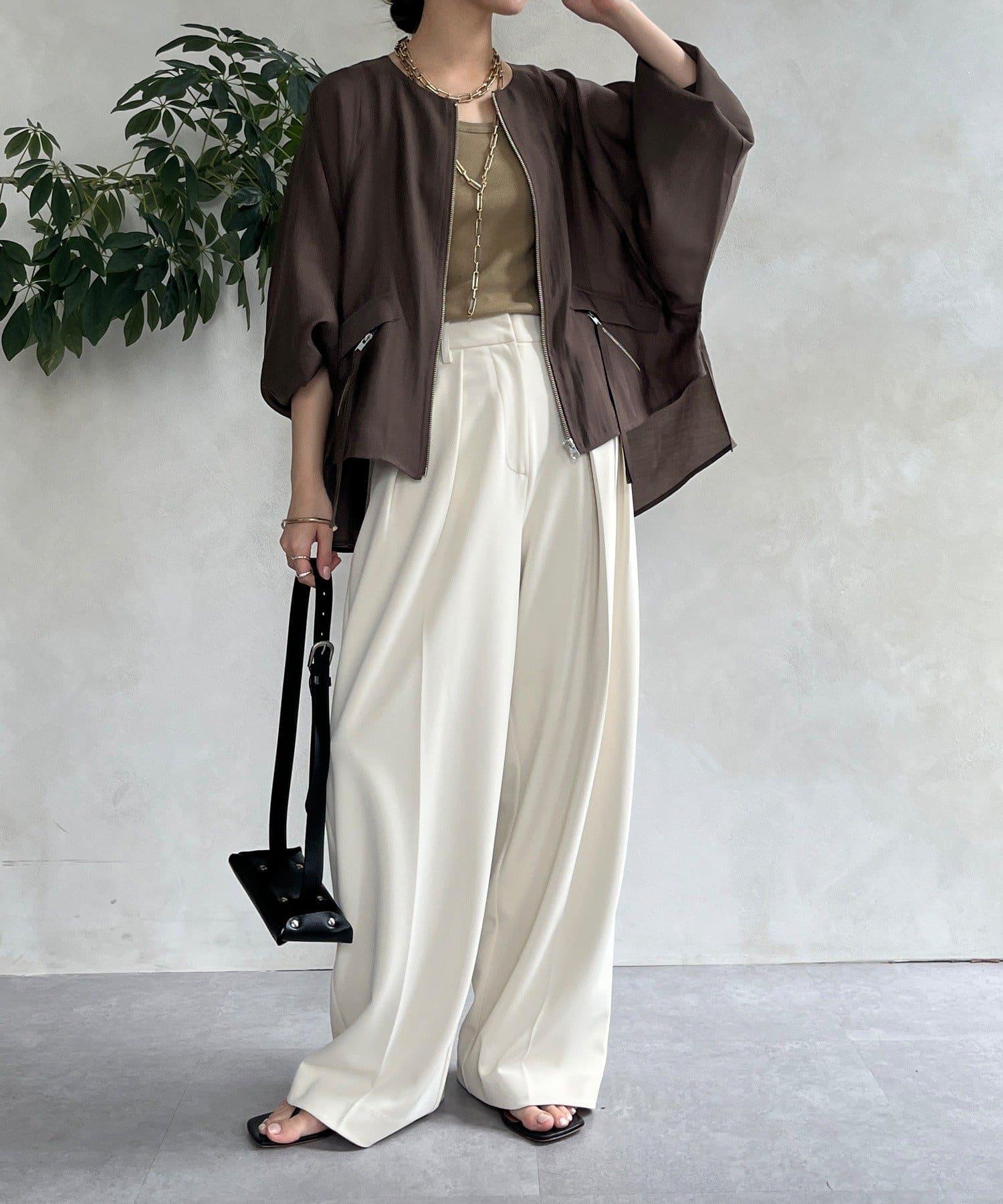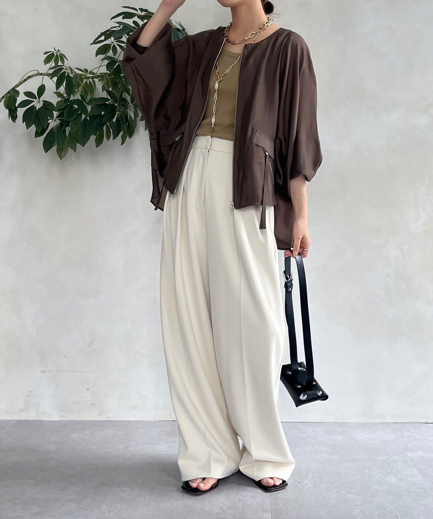 寬鬆、誇張的感覺自然地遮住手臂和腰部。