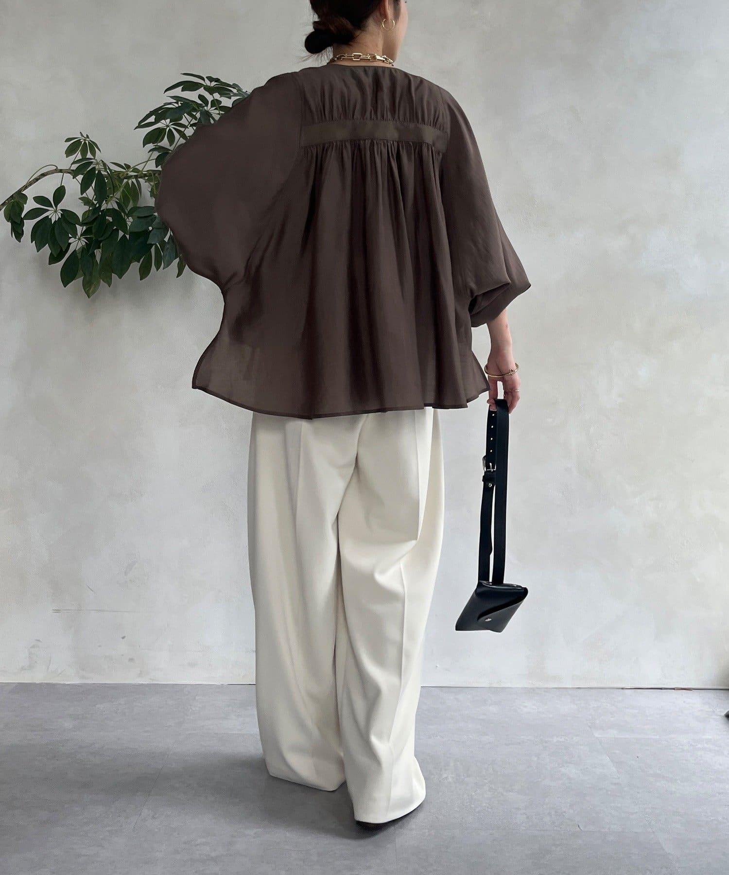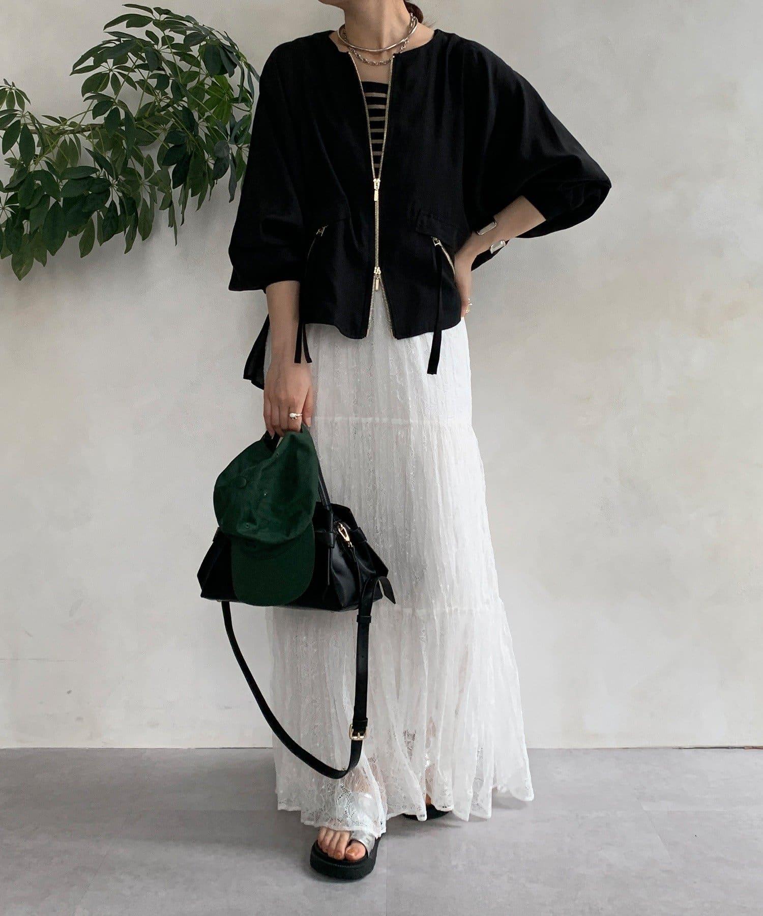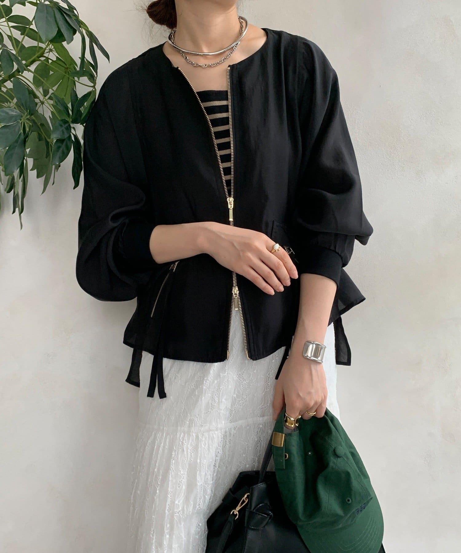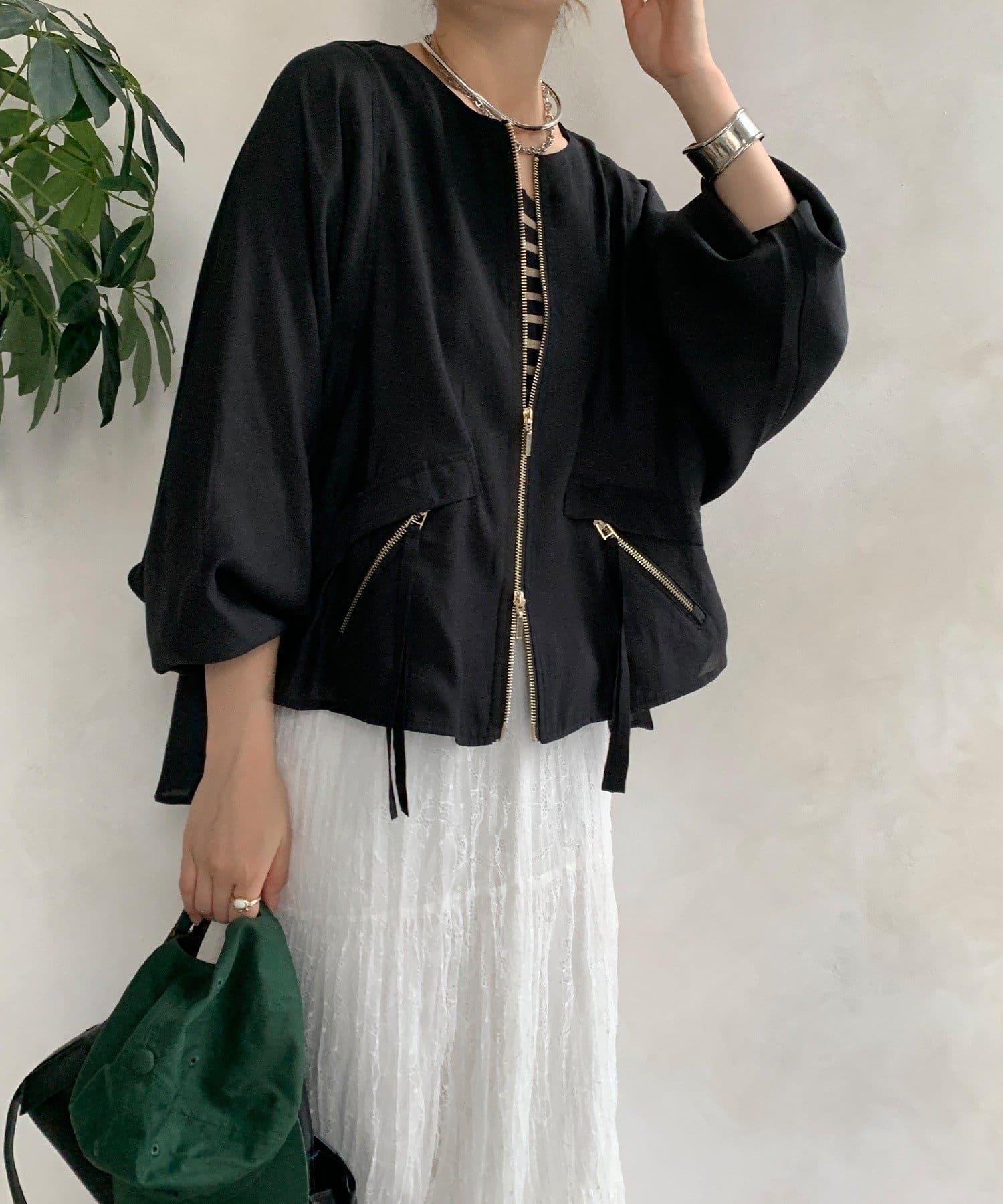 寬鬆、誇張的感覺自然地遮住手臂和腰部。