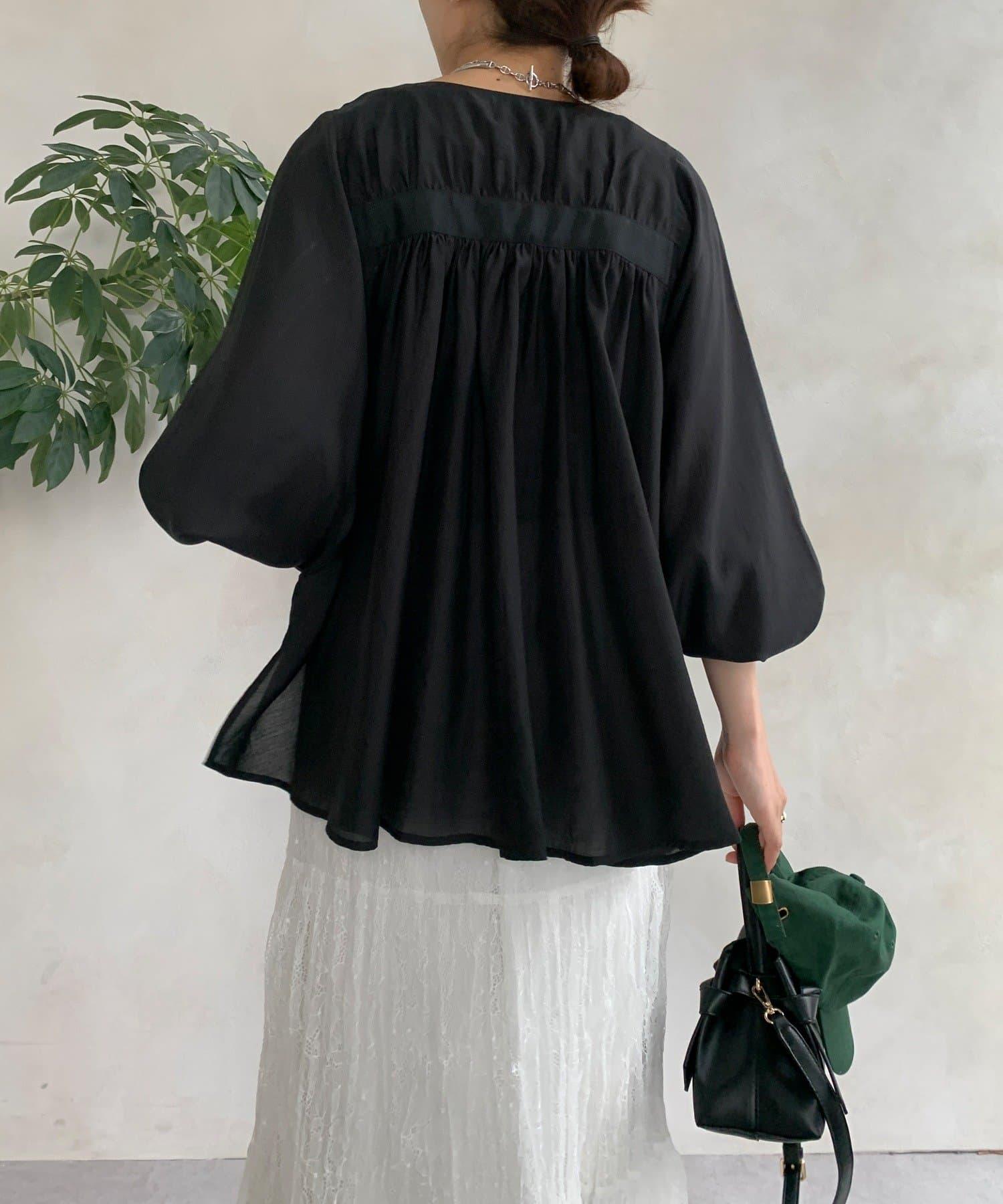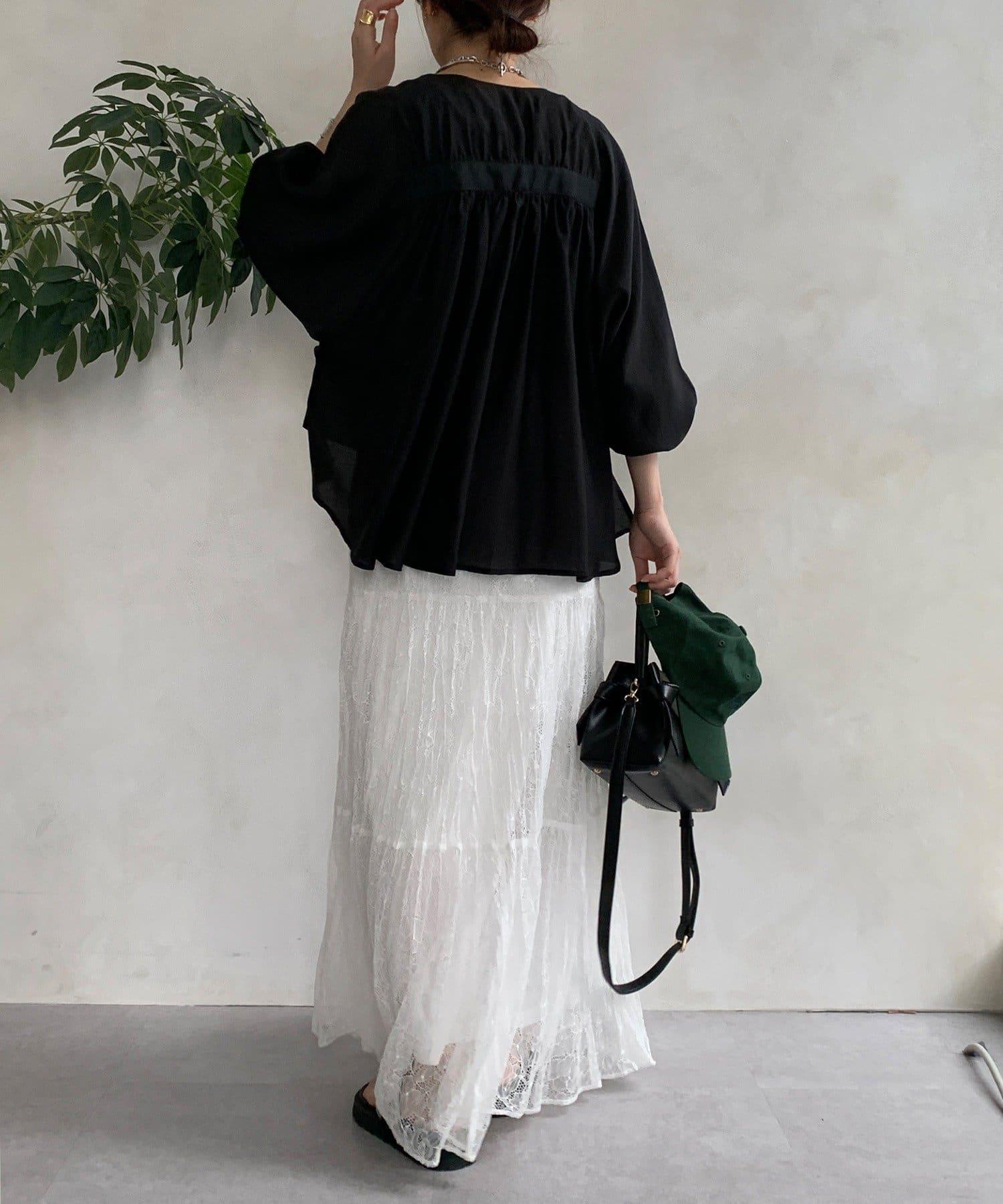背部的褶皺設計營造出蓬鬆柔美的女性氣質。