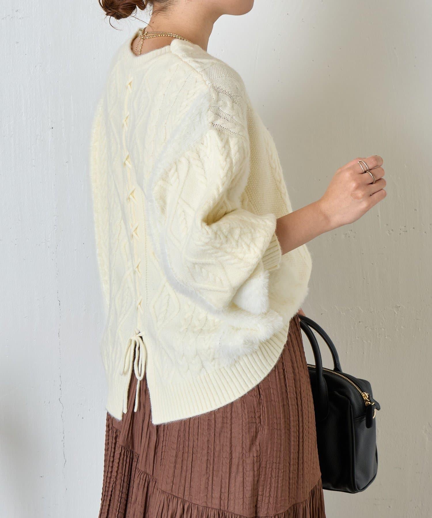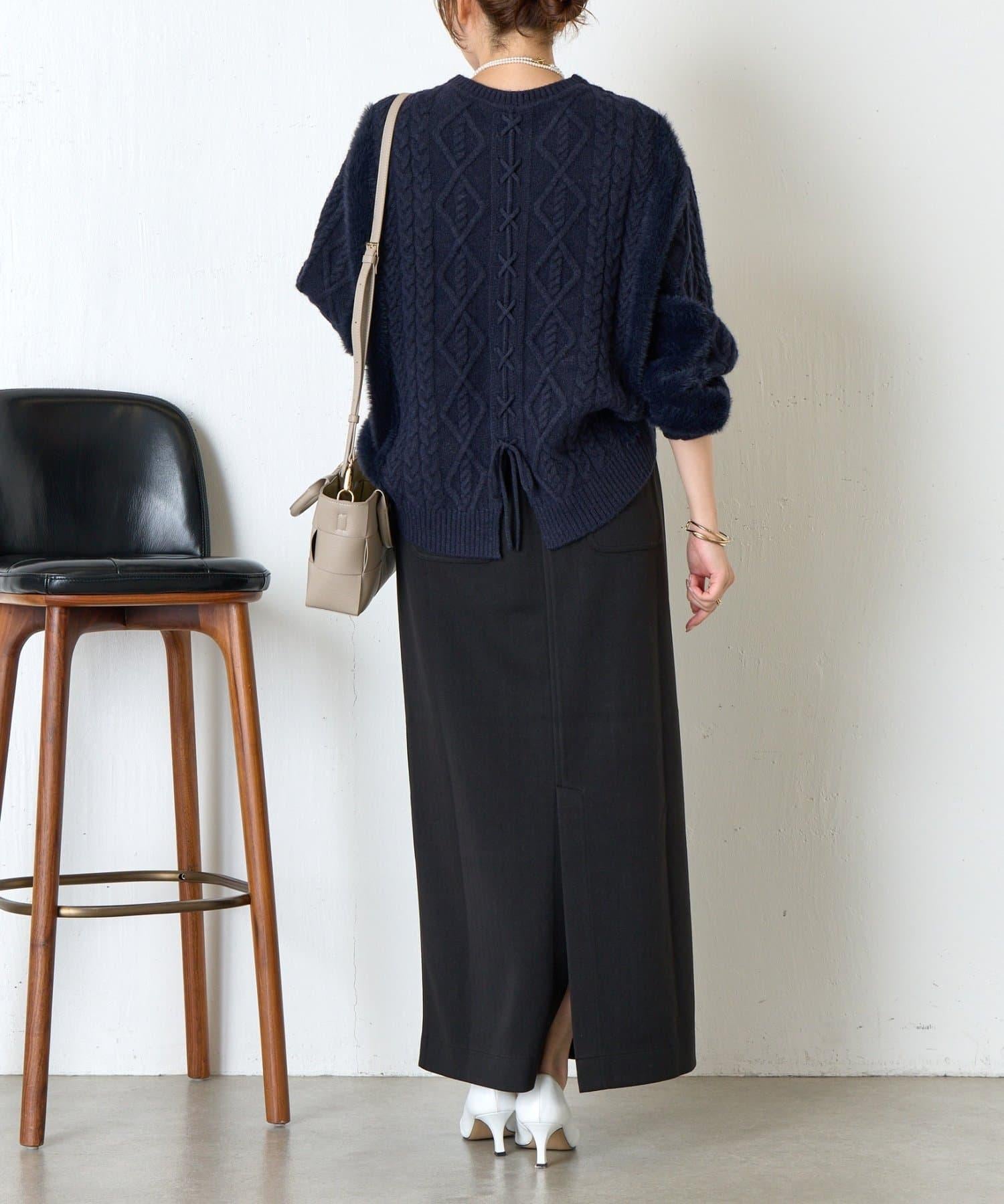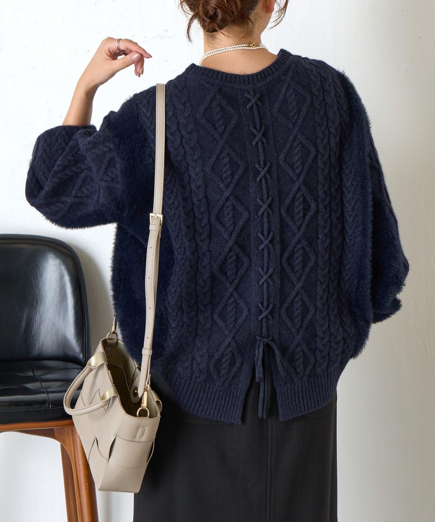 這款針織衫採用了時下流行的繫帶設計,背部款式也非常適合。