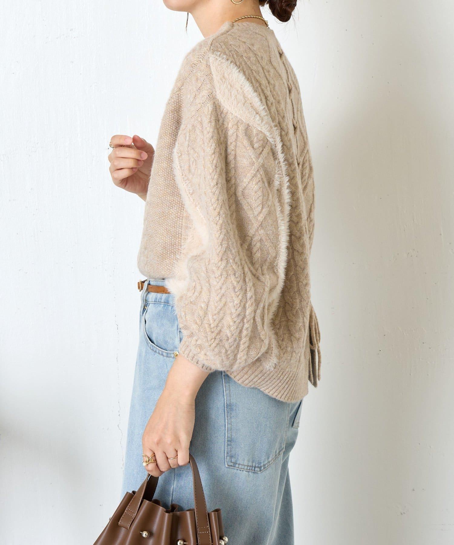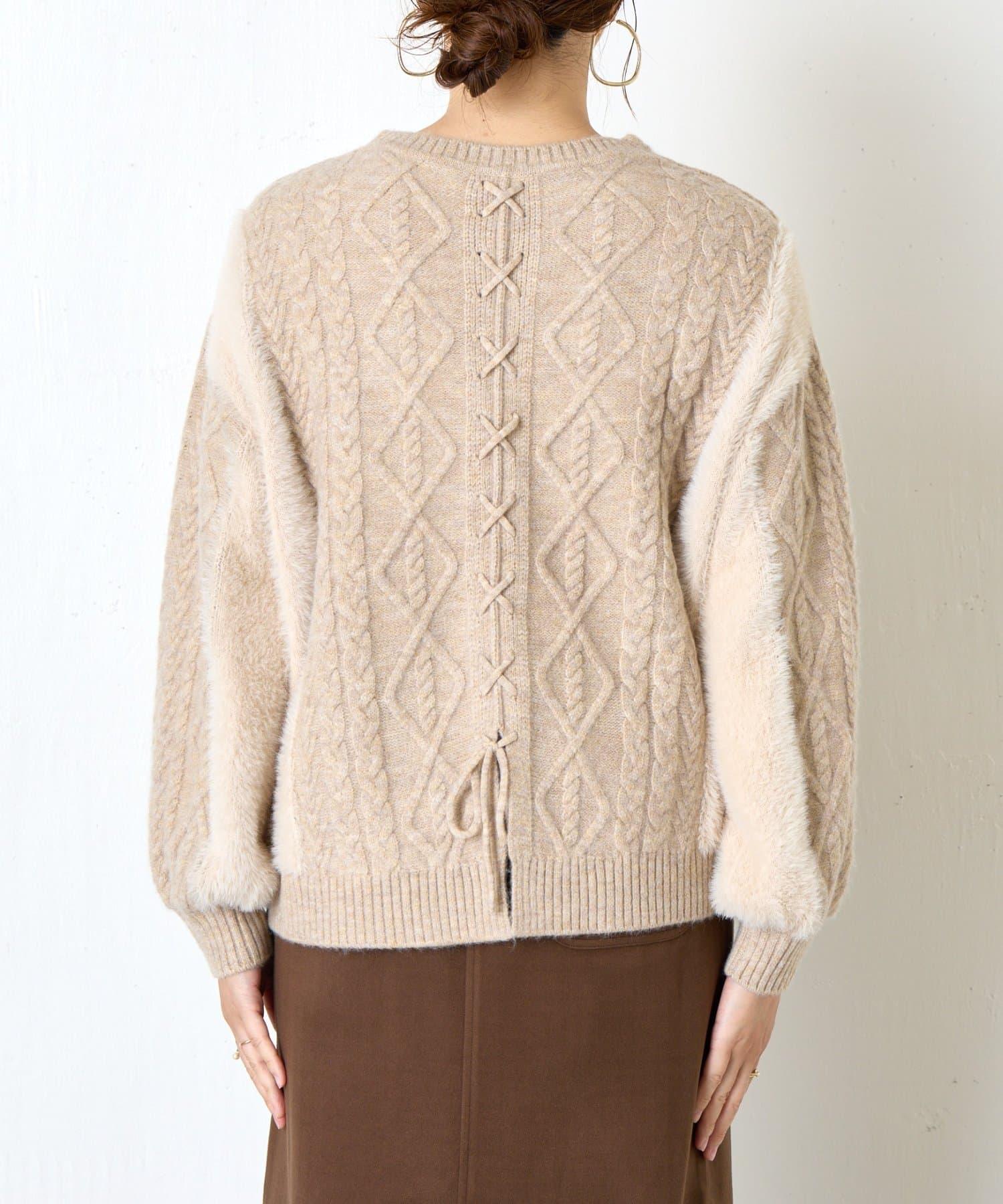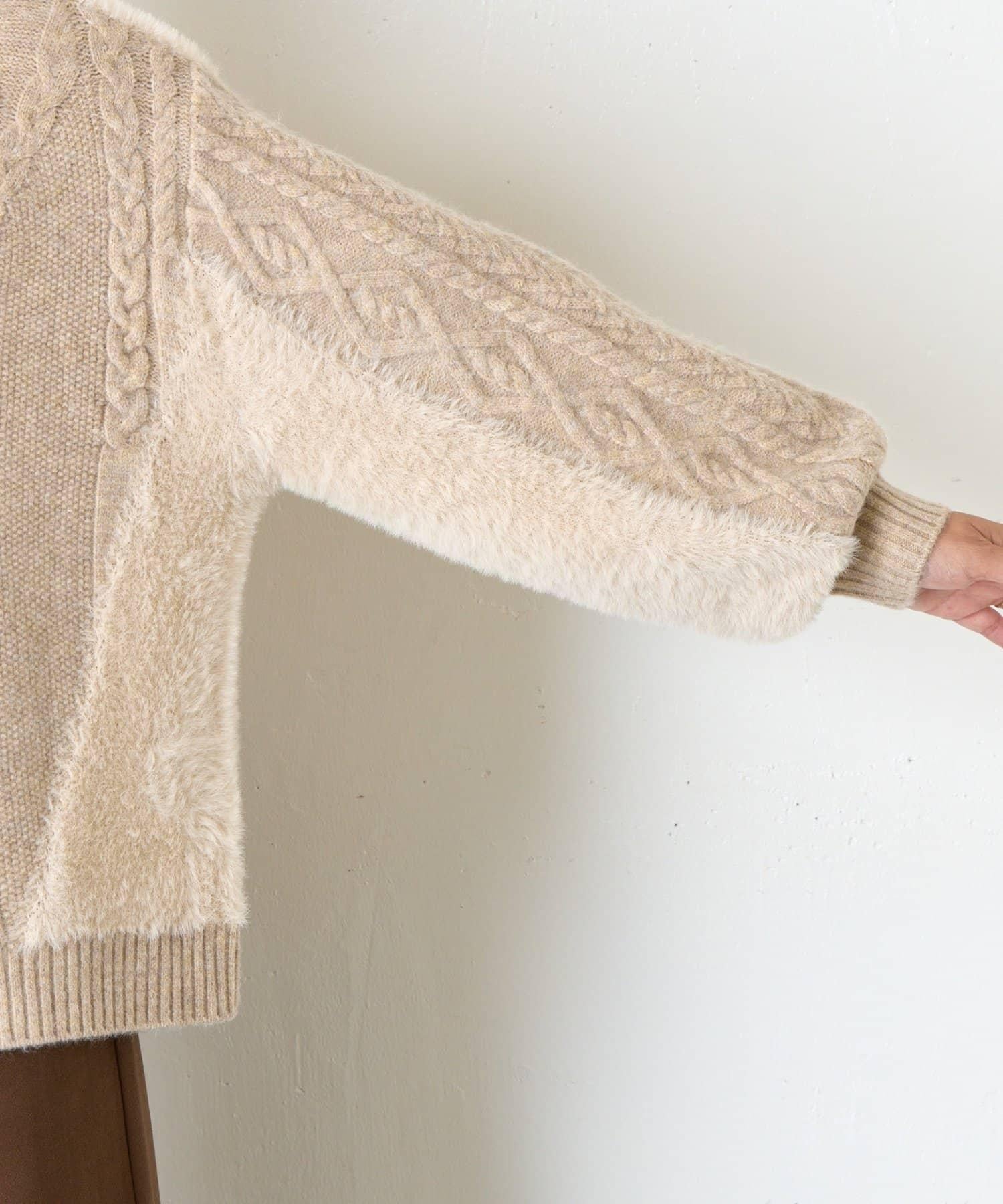 兩側和手臂上的絨毛材質為這款針織衫增添了微妙的點睛之筆。