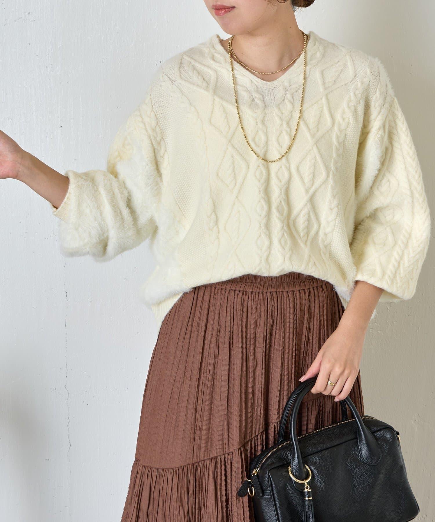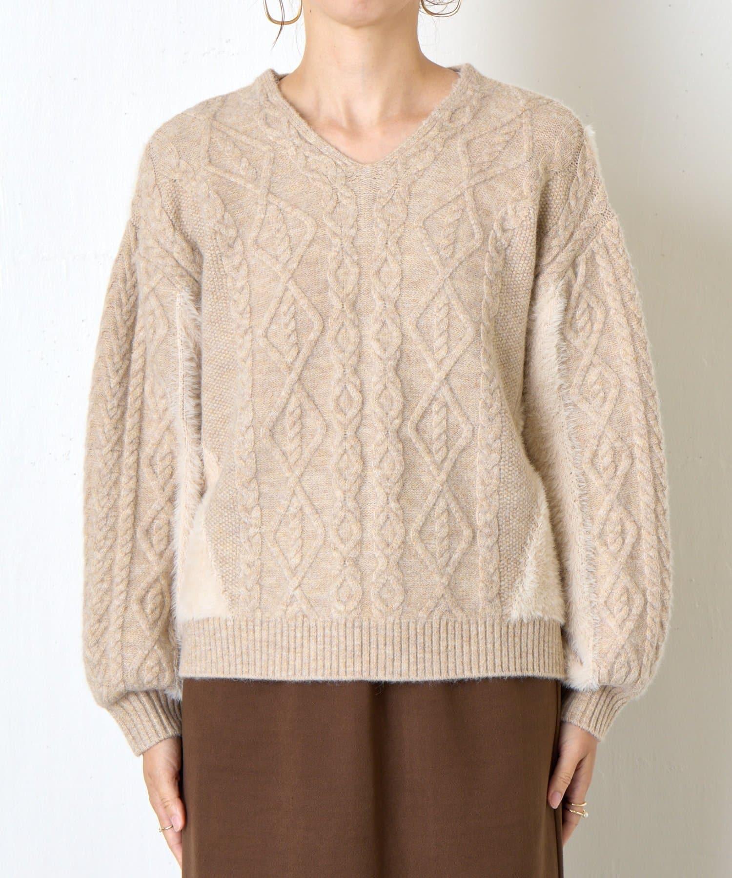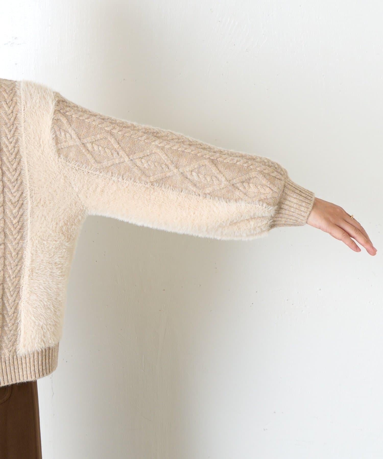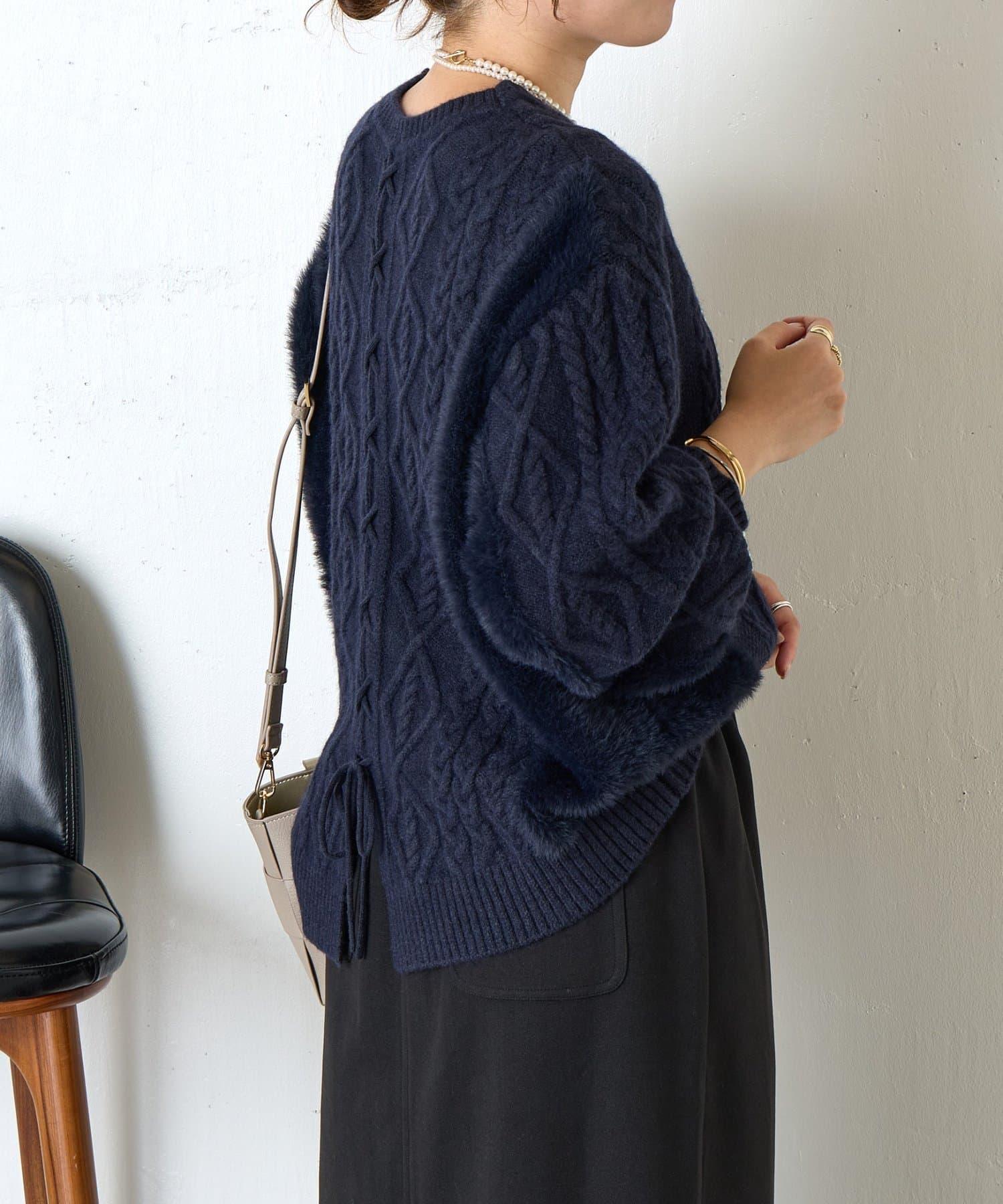 兩側和手臂上的絨毛材質為這款針織衫增添了微妙的點睛之筆。