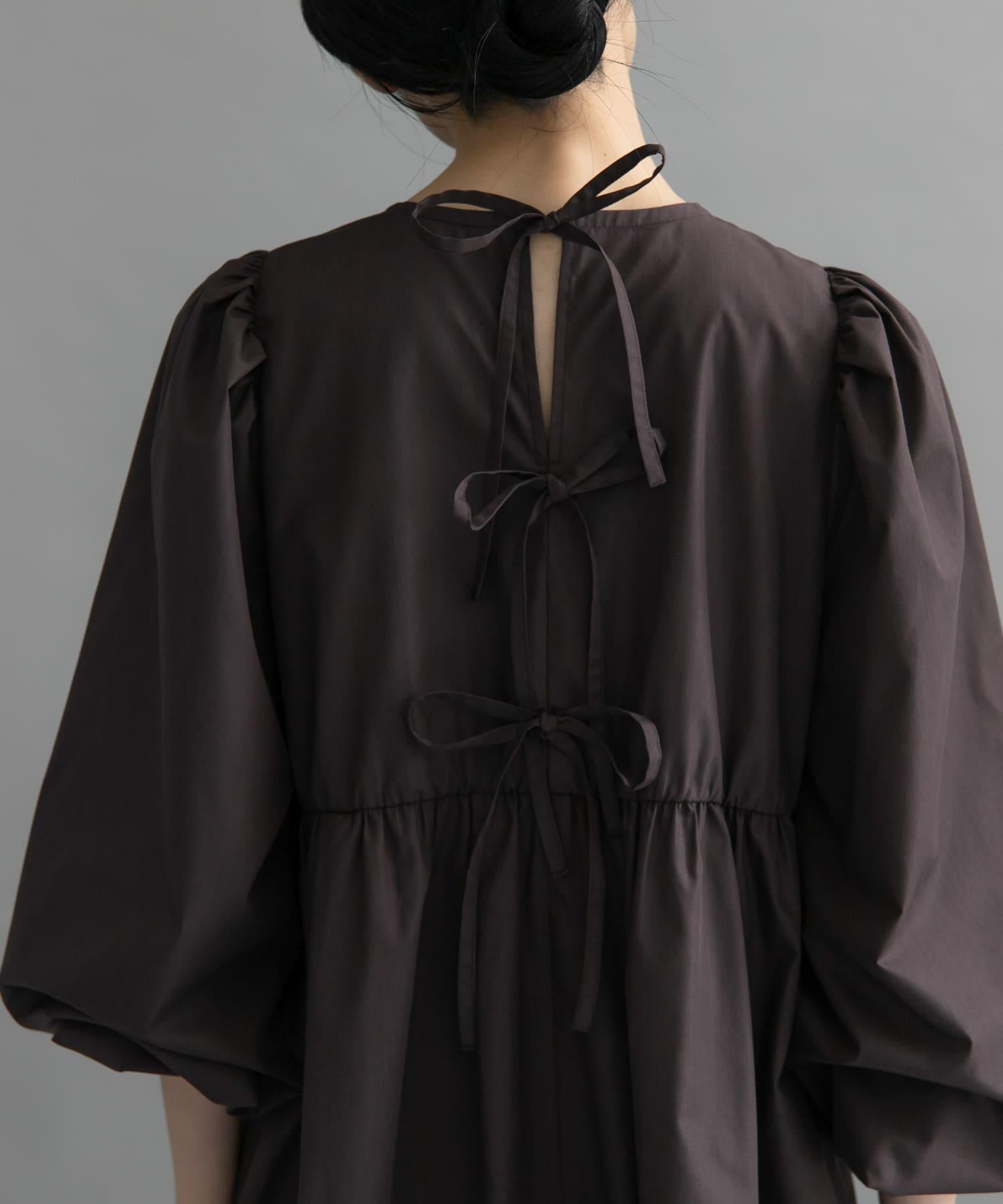 帶有背部緞帶設計的長衫,更顯女性柔美。