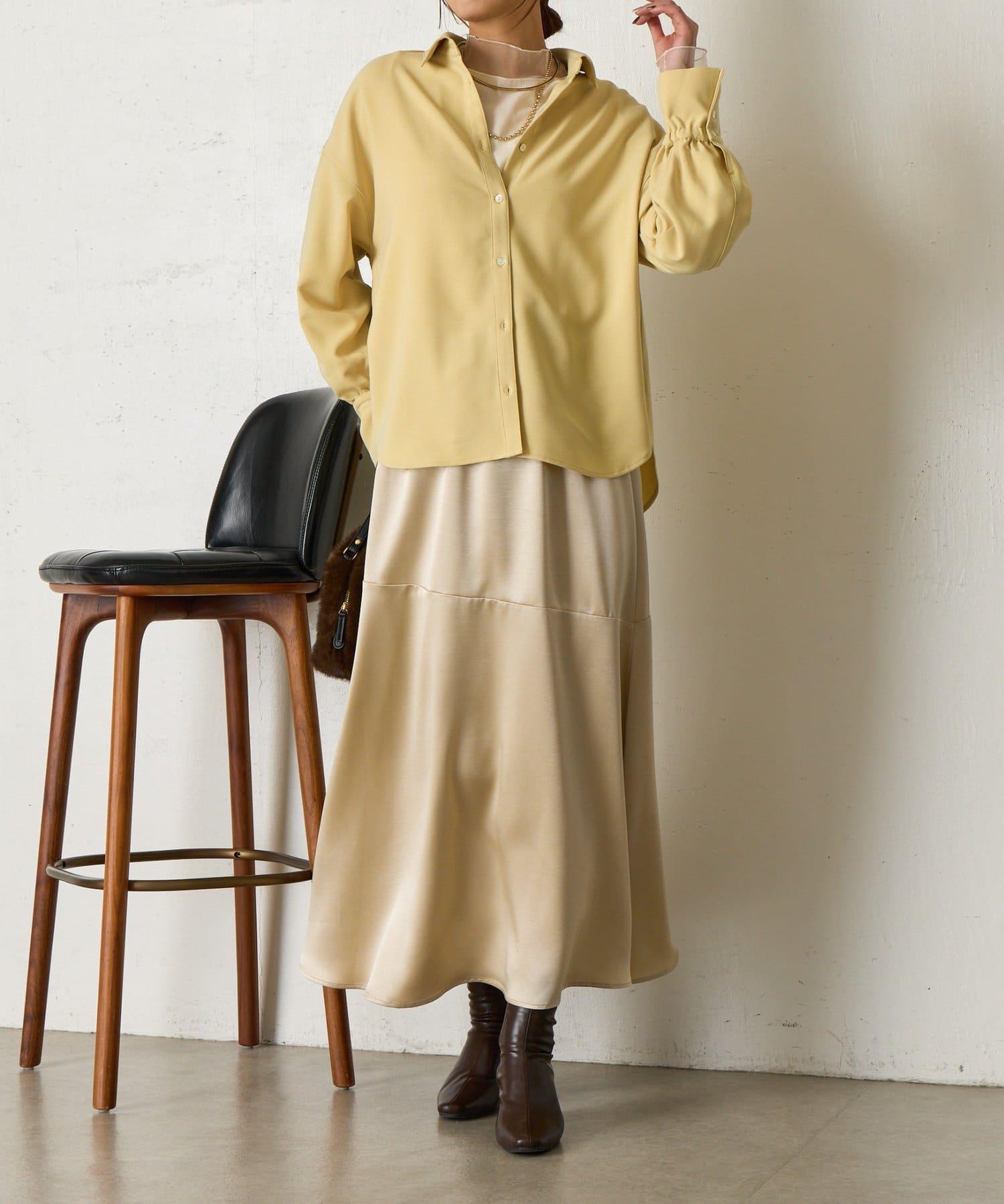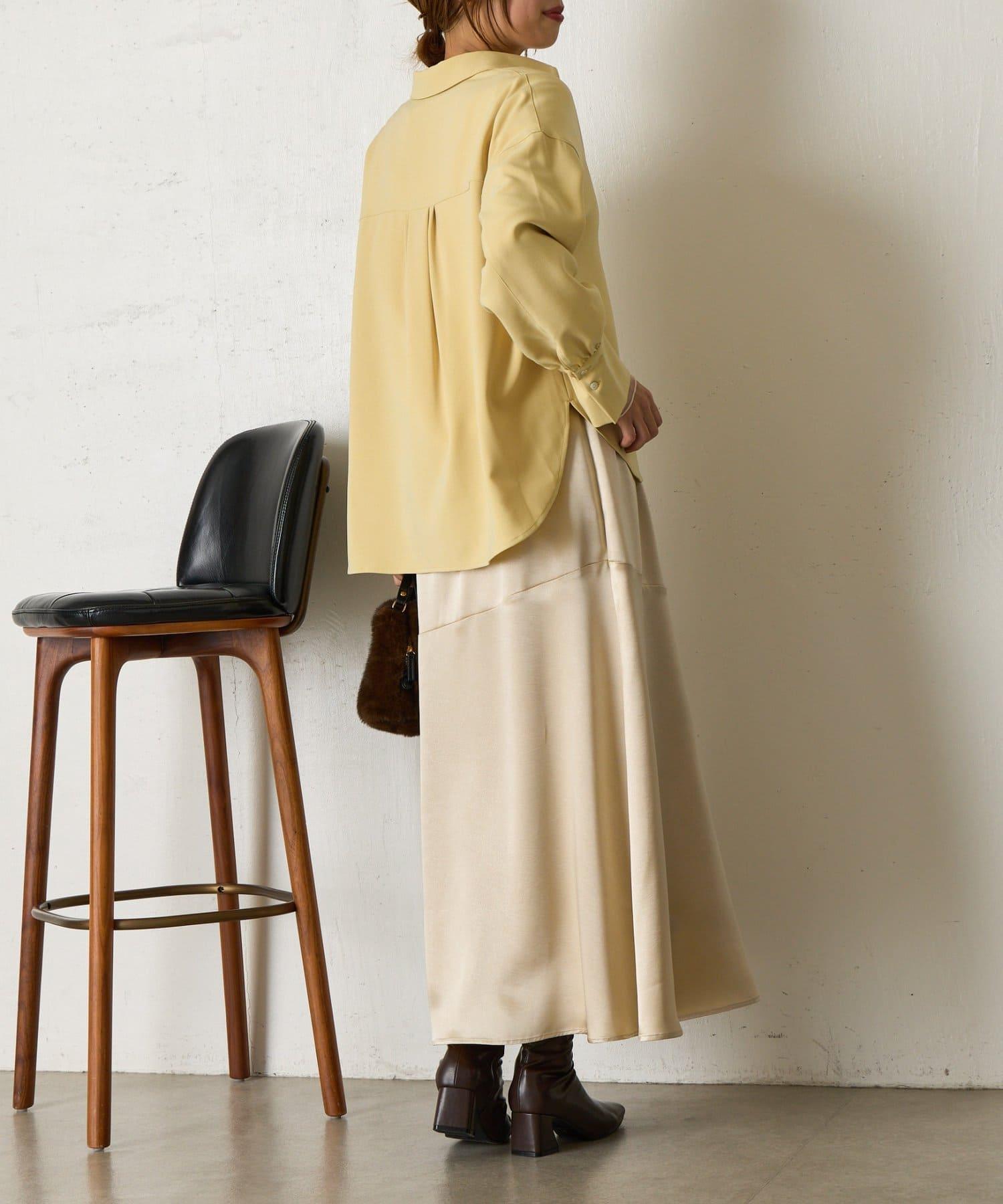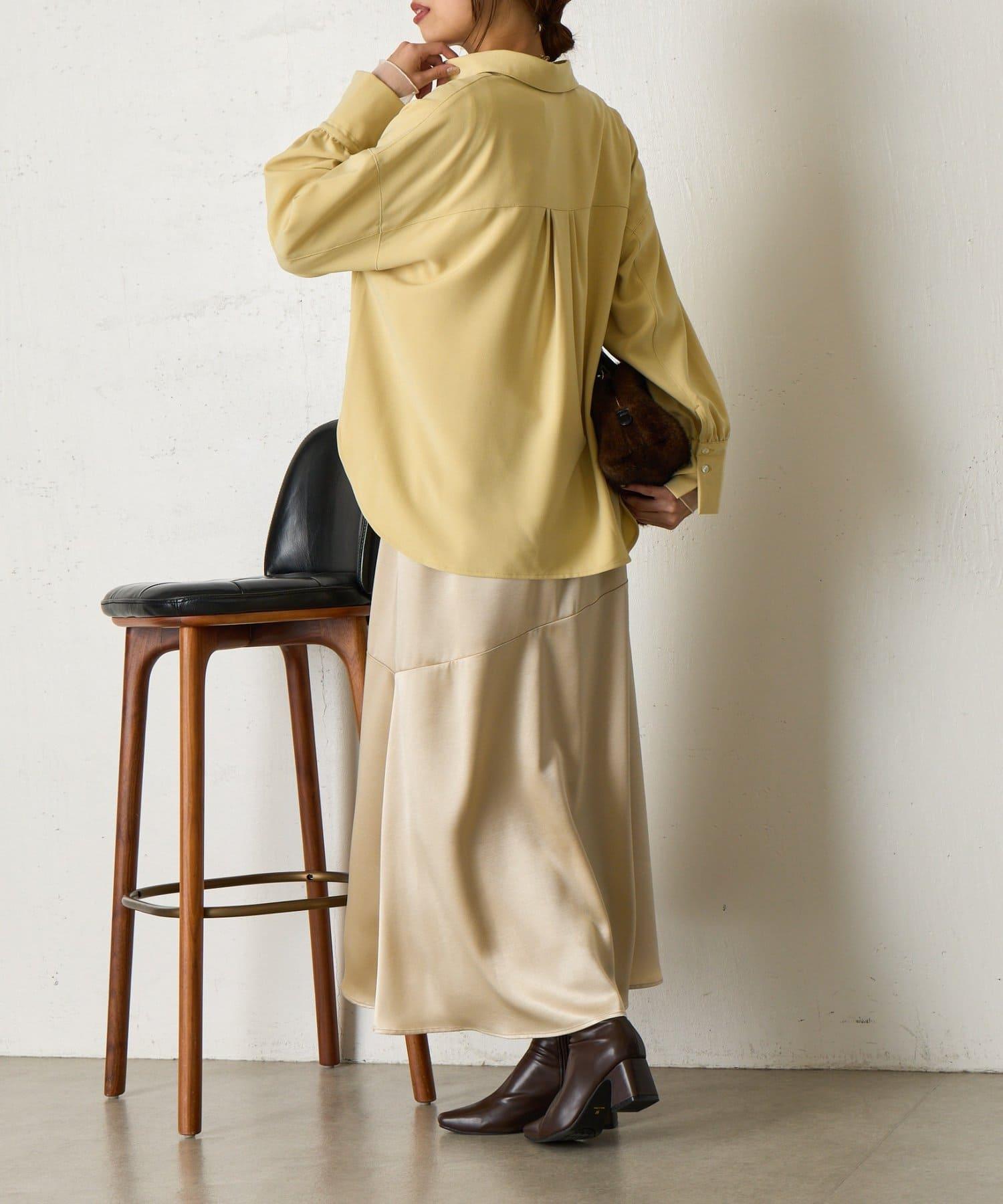 光滑的面料和下垂的肩部營造出輕鬆、柔美的感覺。