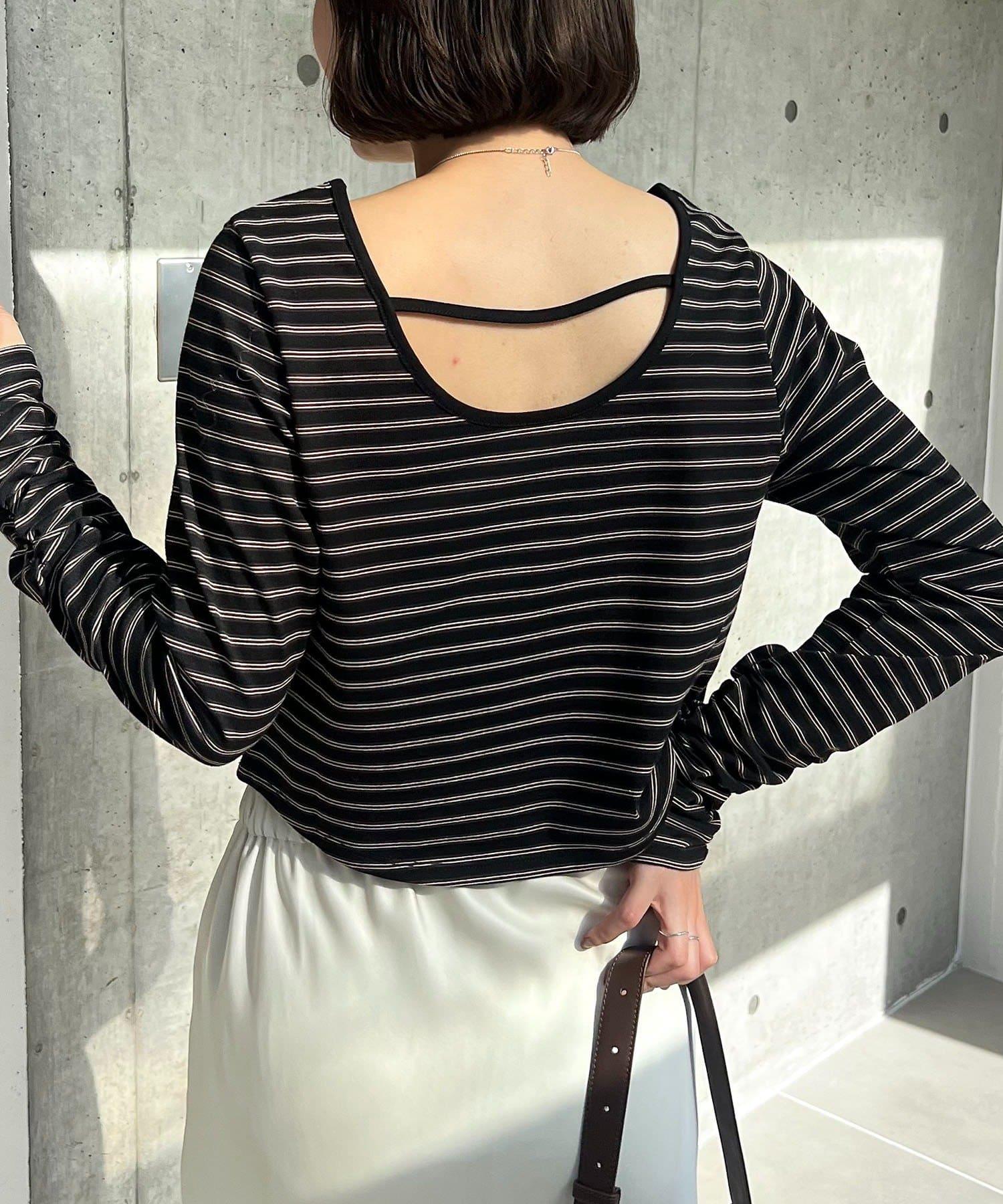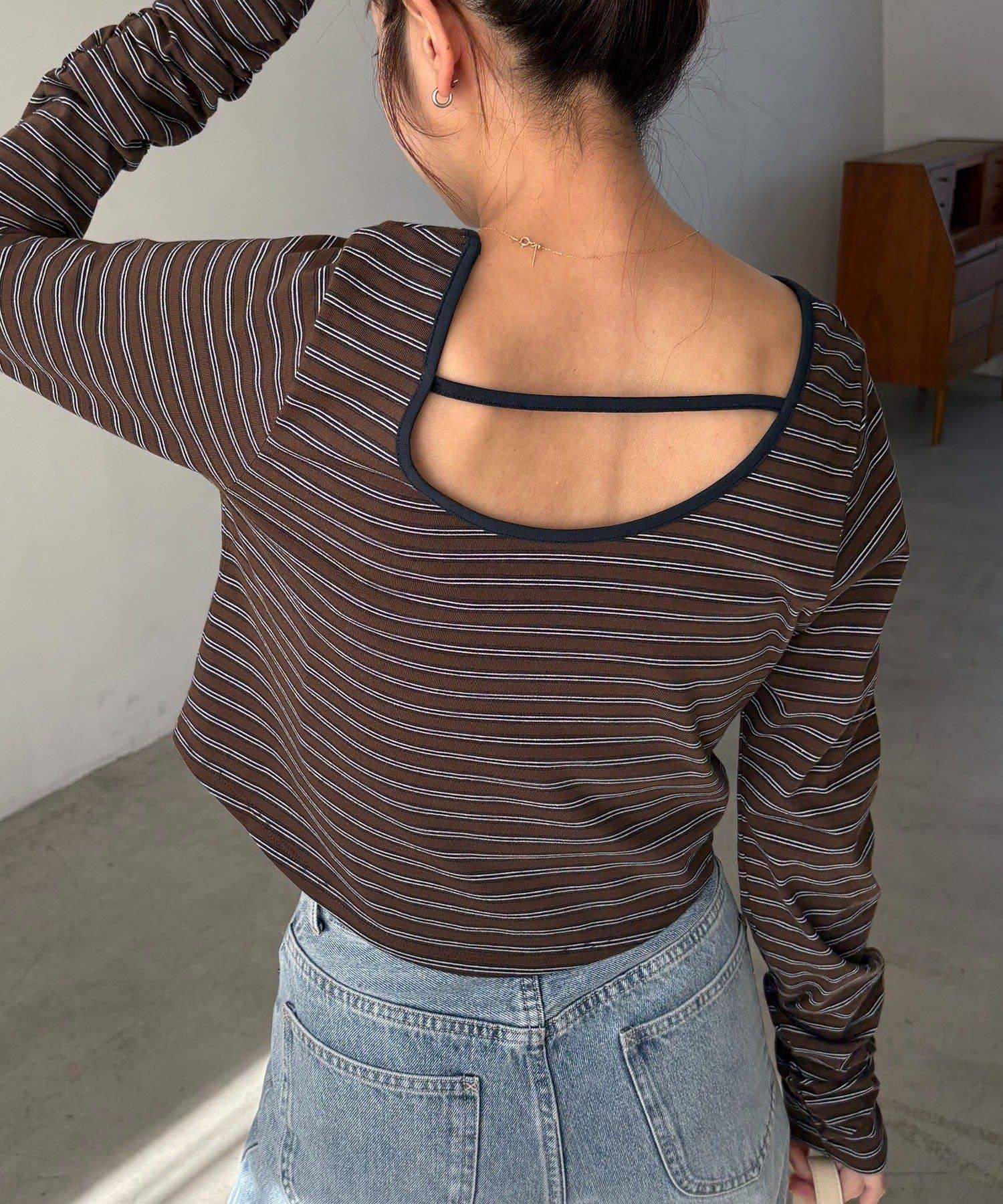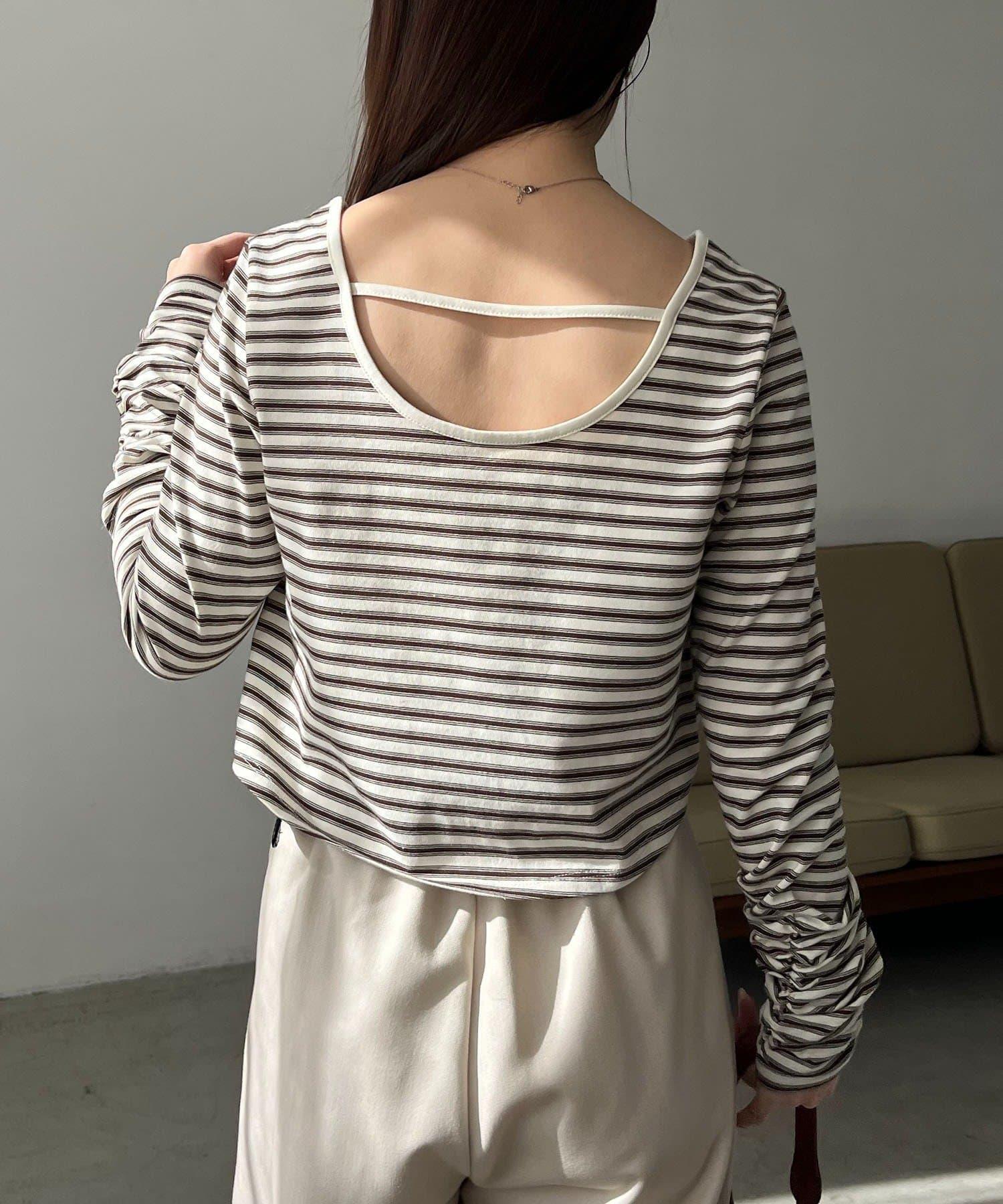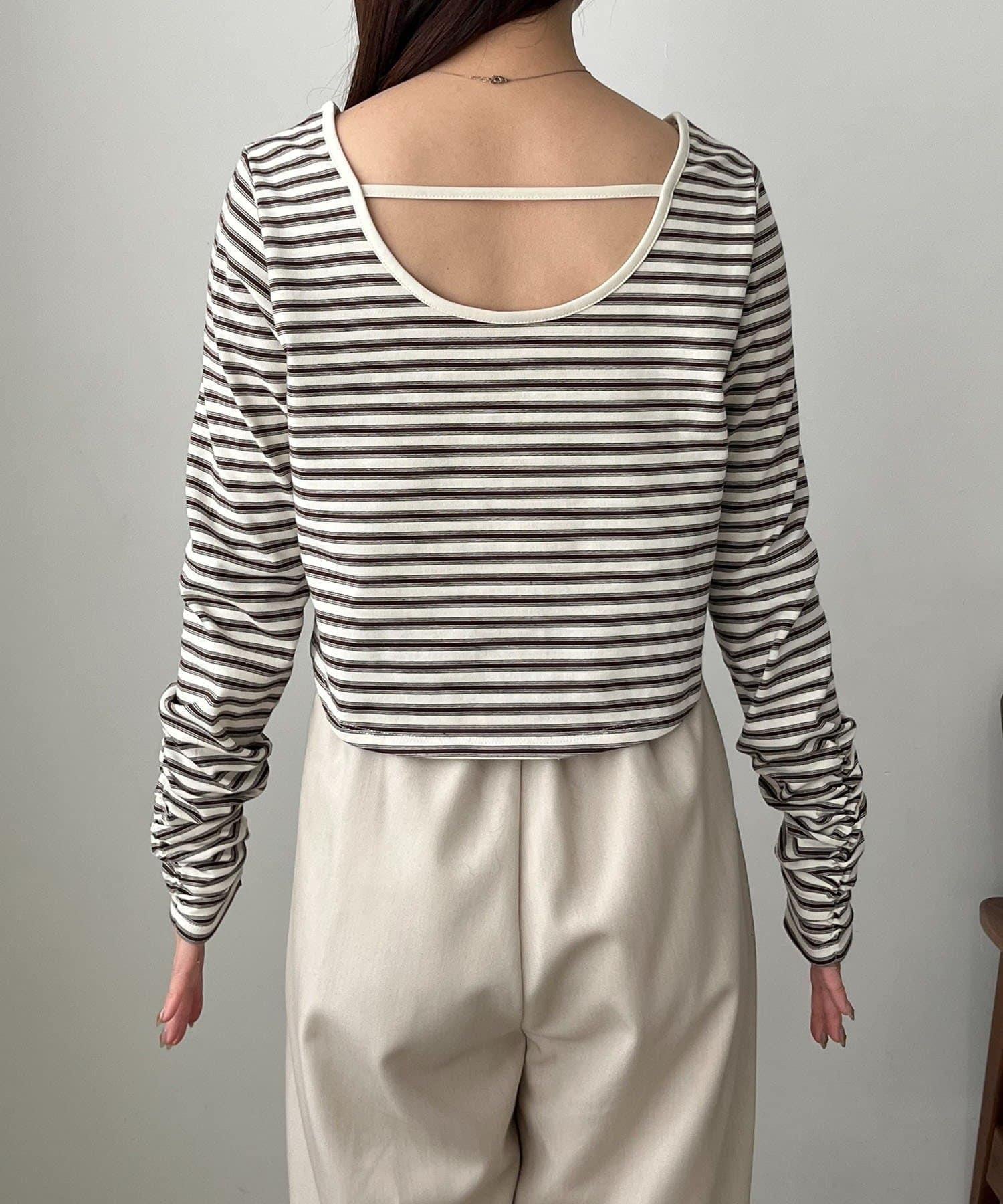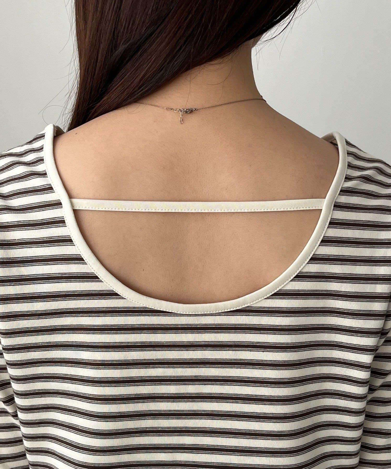 後背U領短款條紋T恤