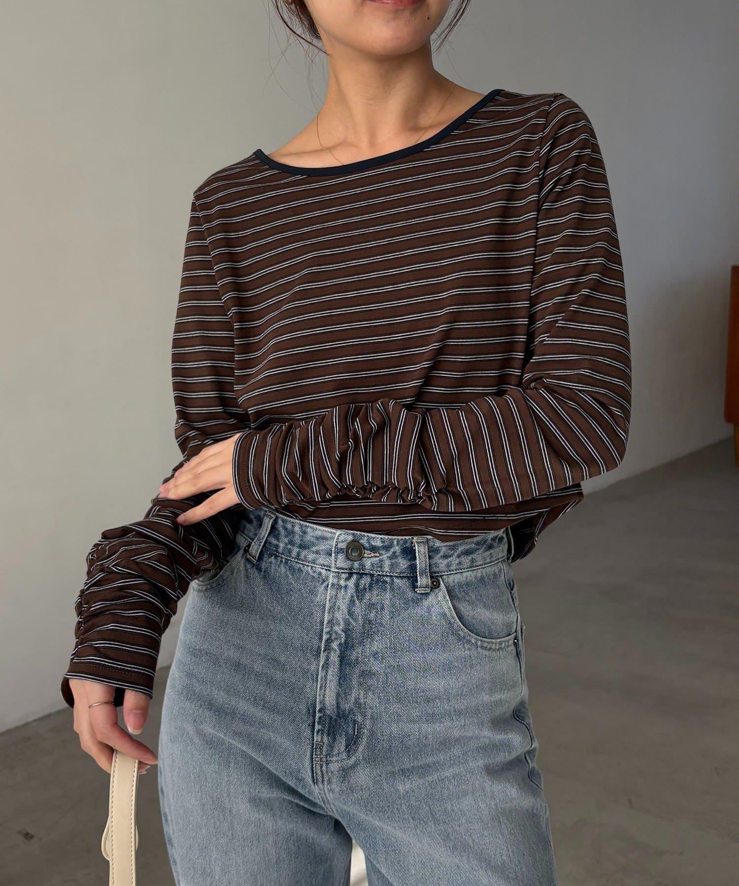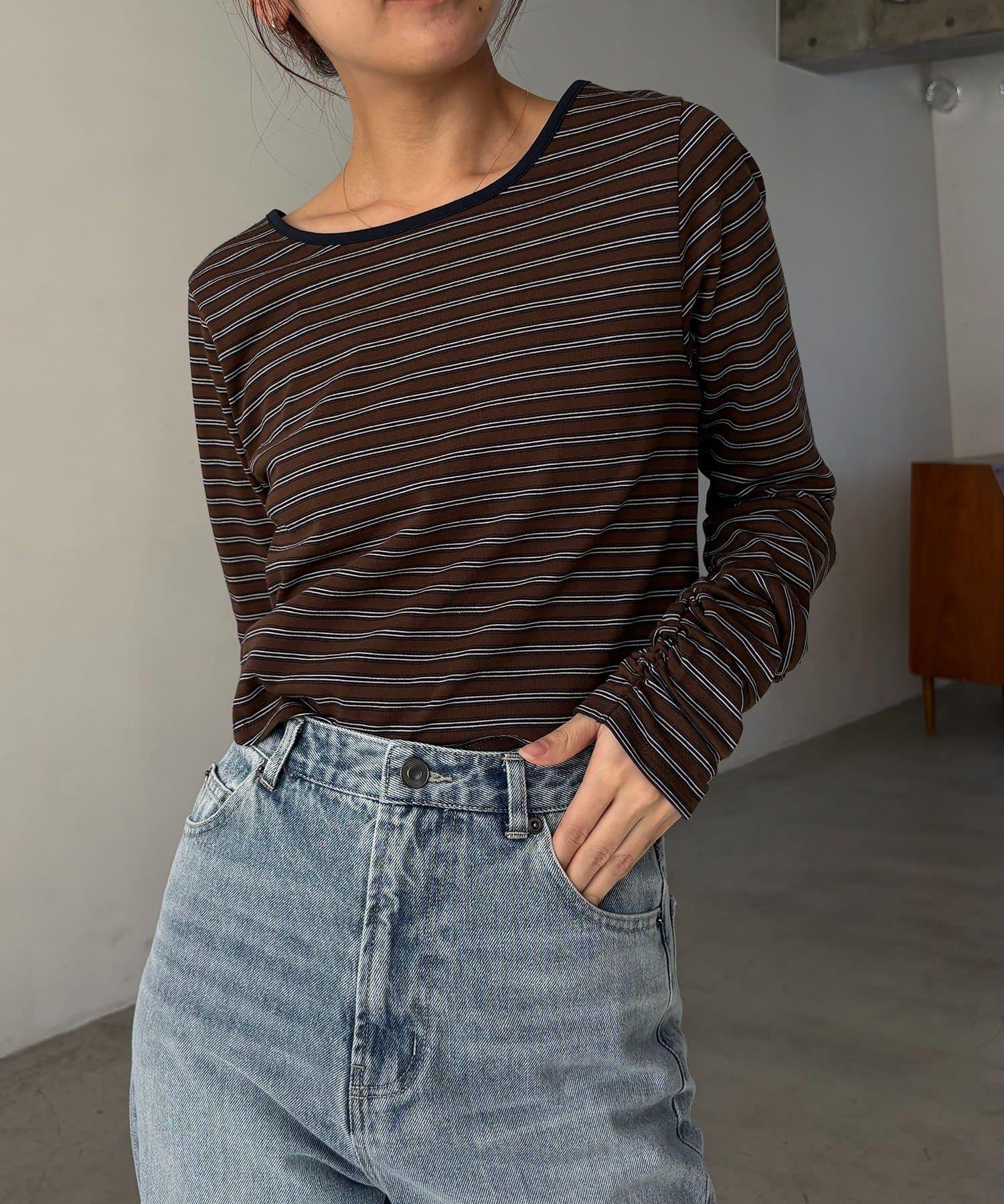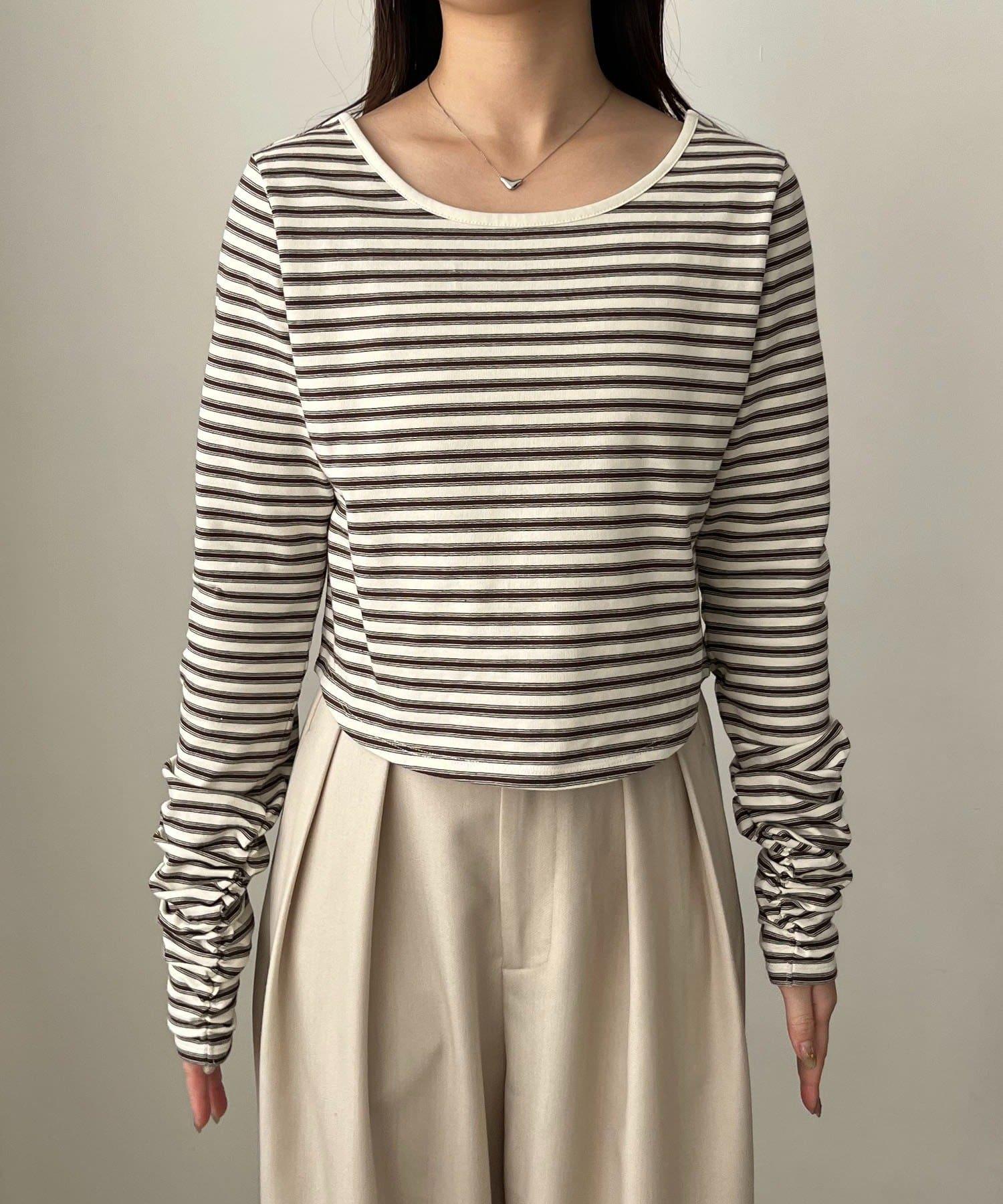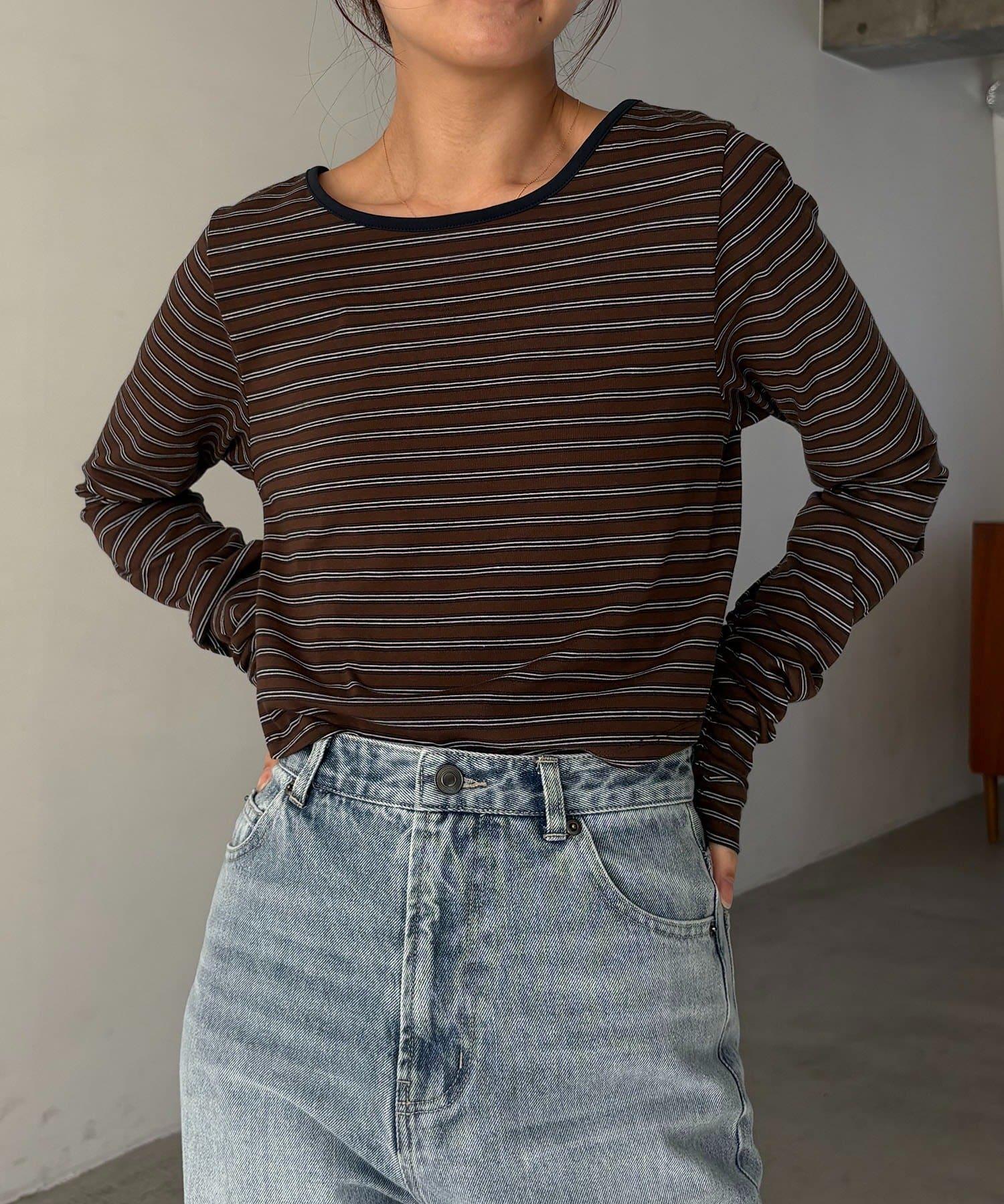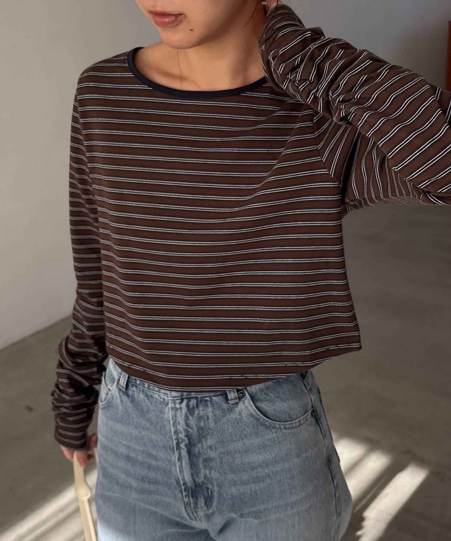 後背U領短款條紋T恤