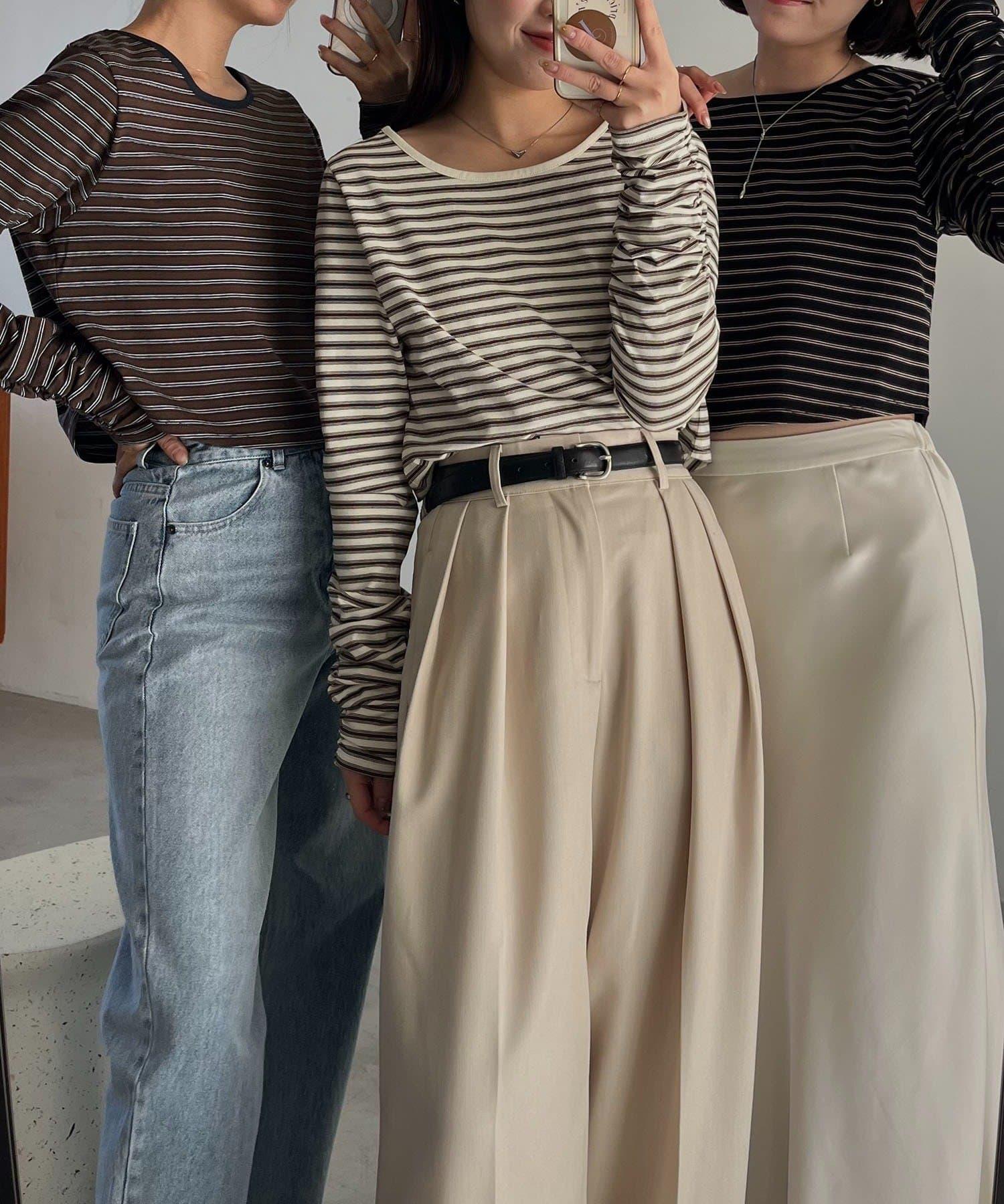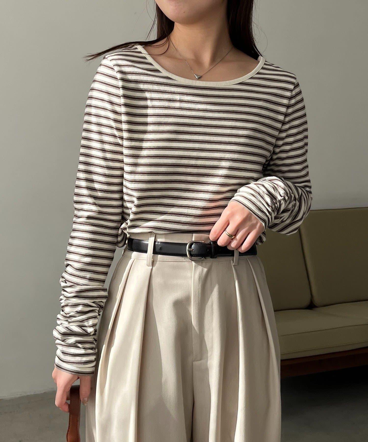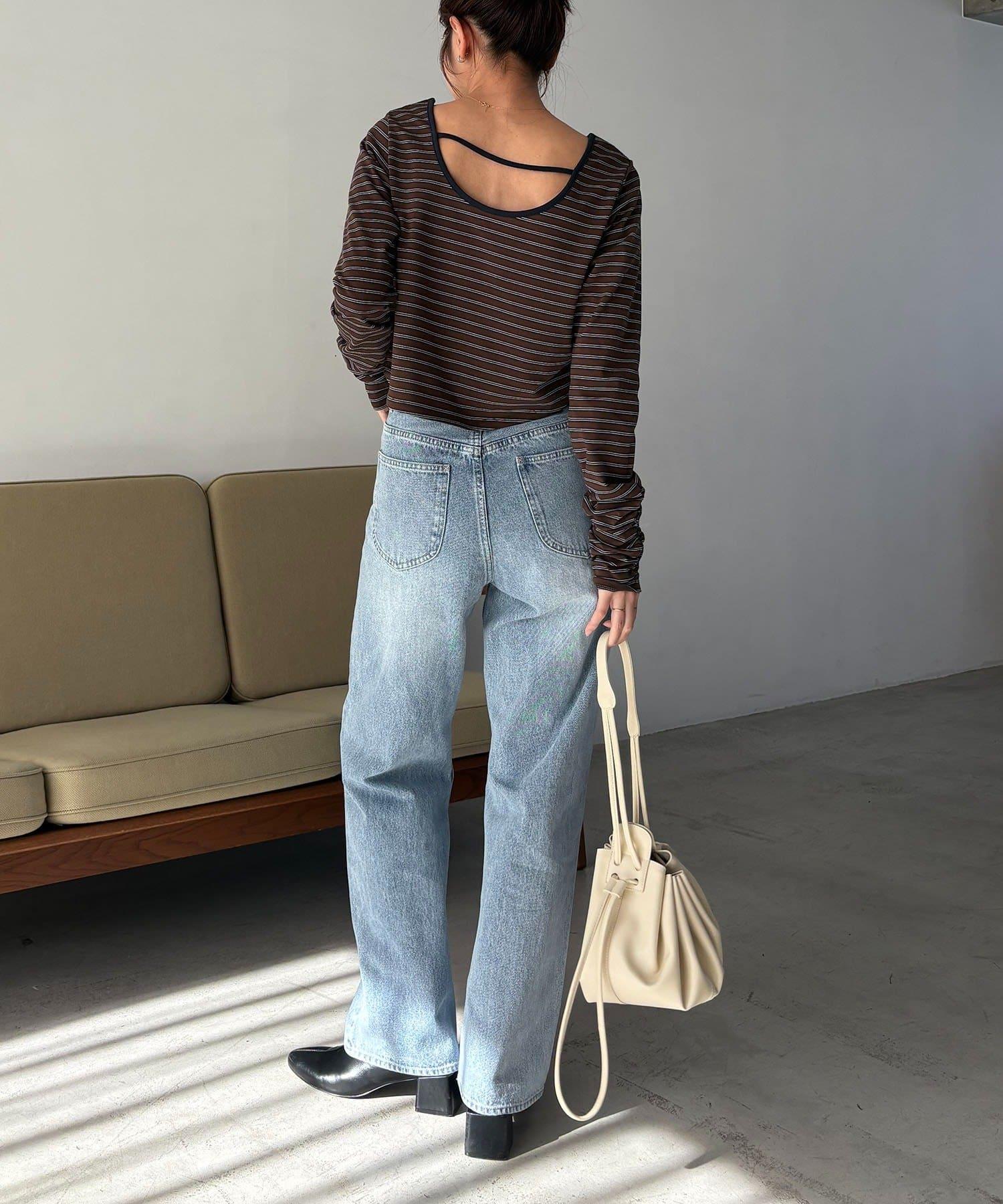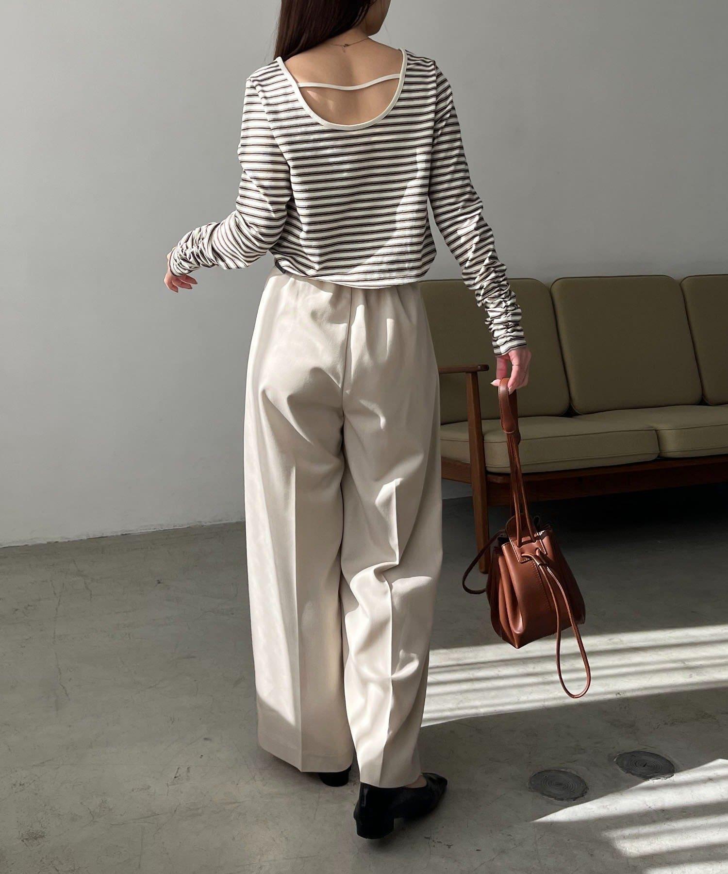 後背U領短款條紋T恤