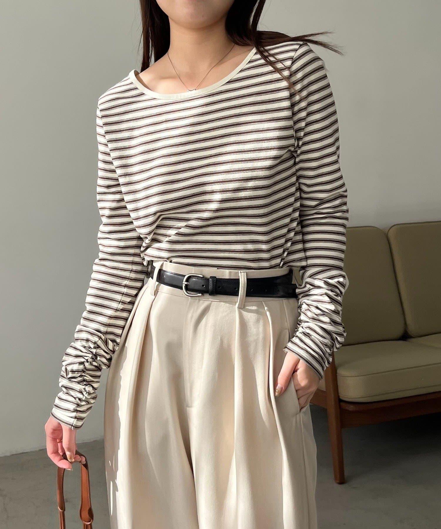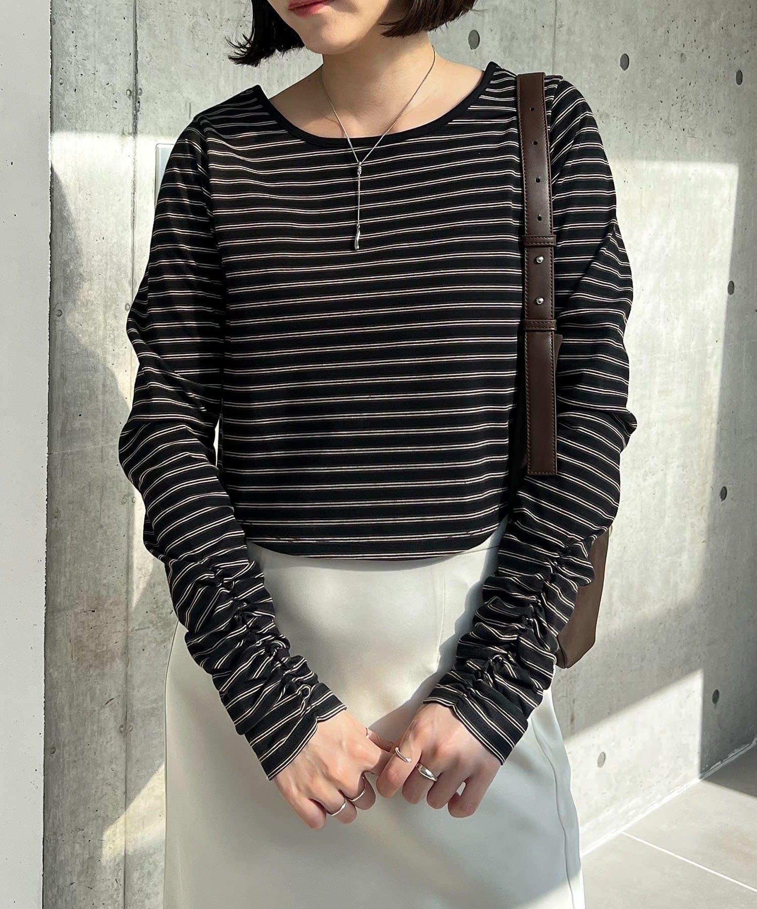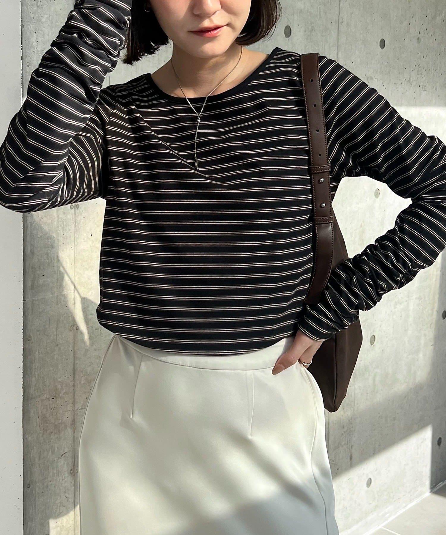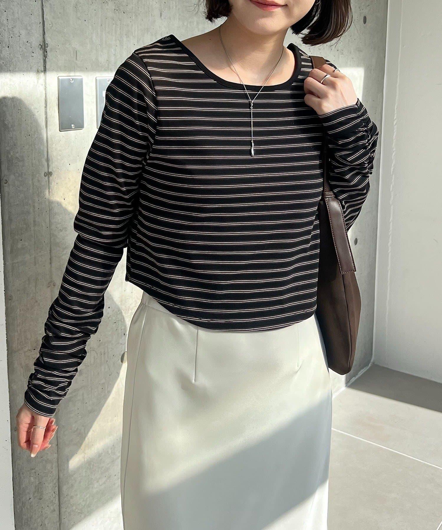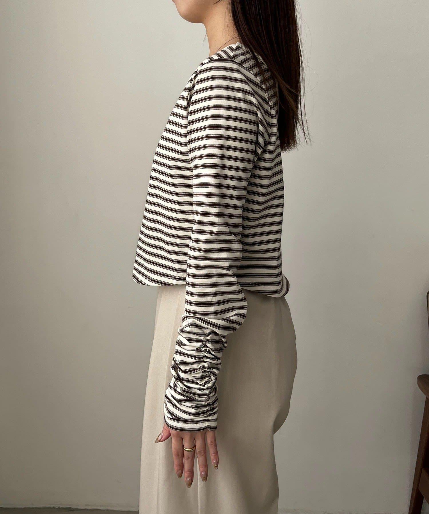 後背U領短款條紋T恤