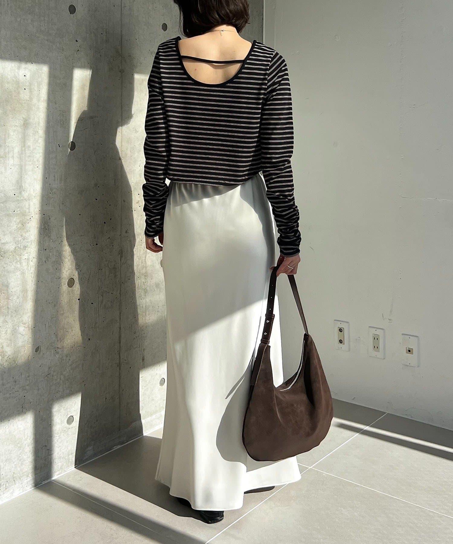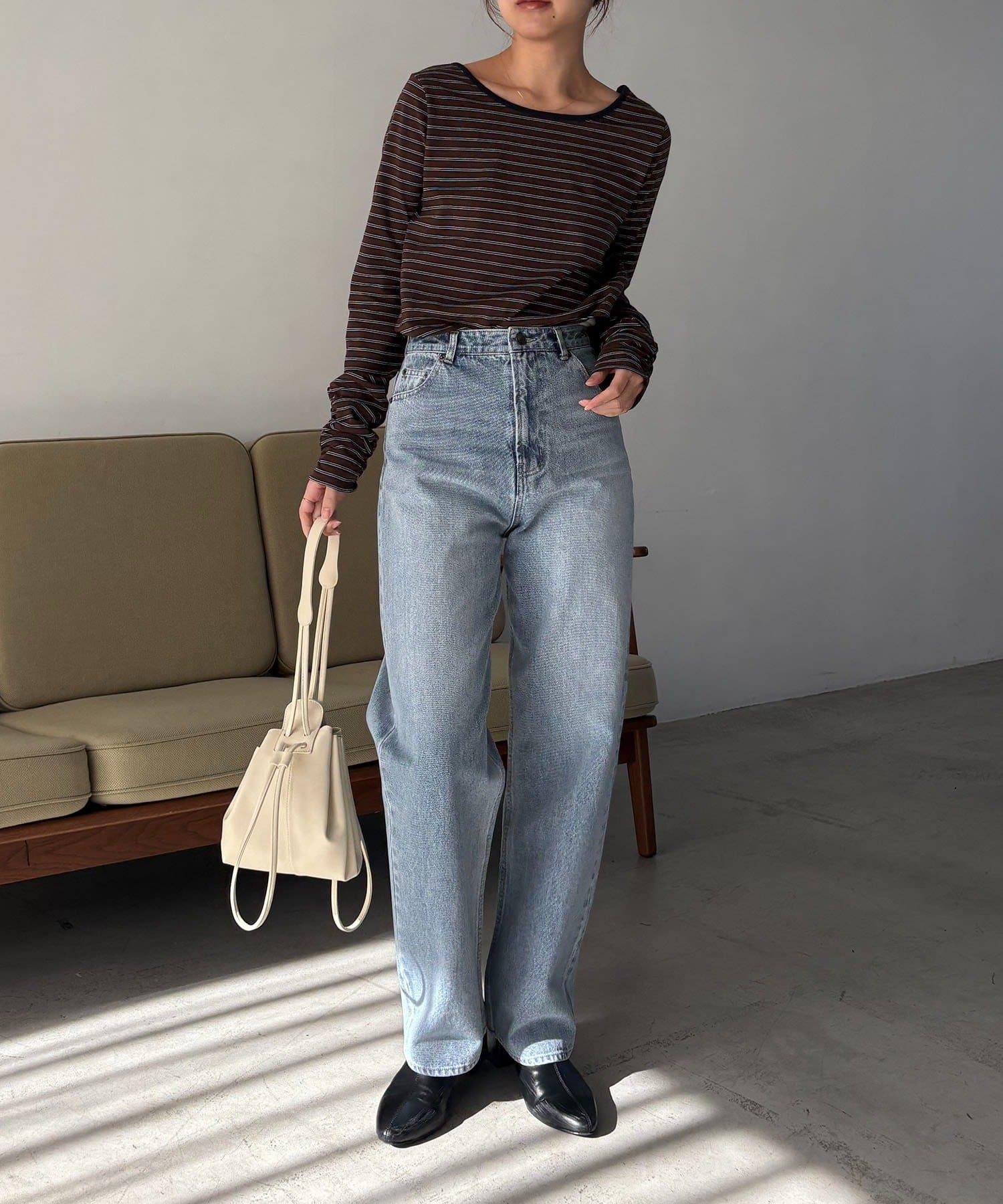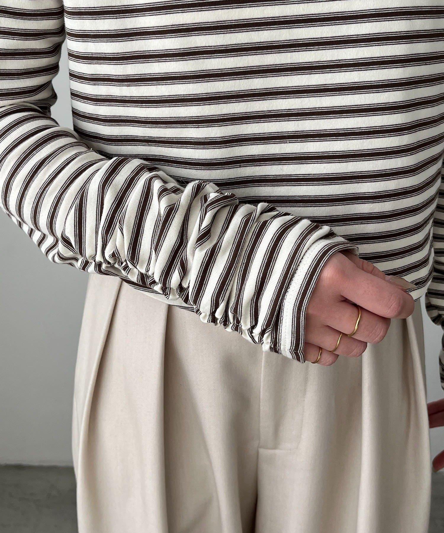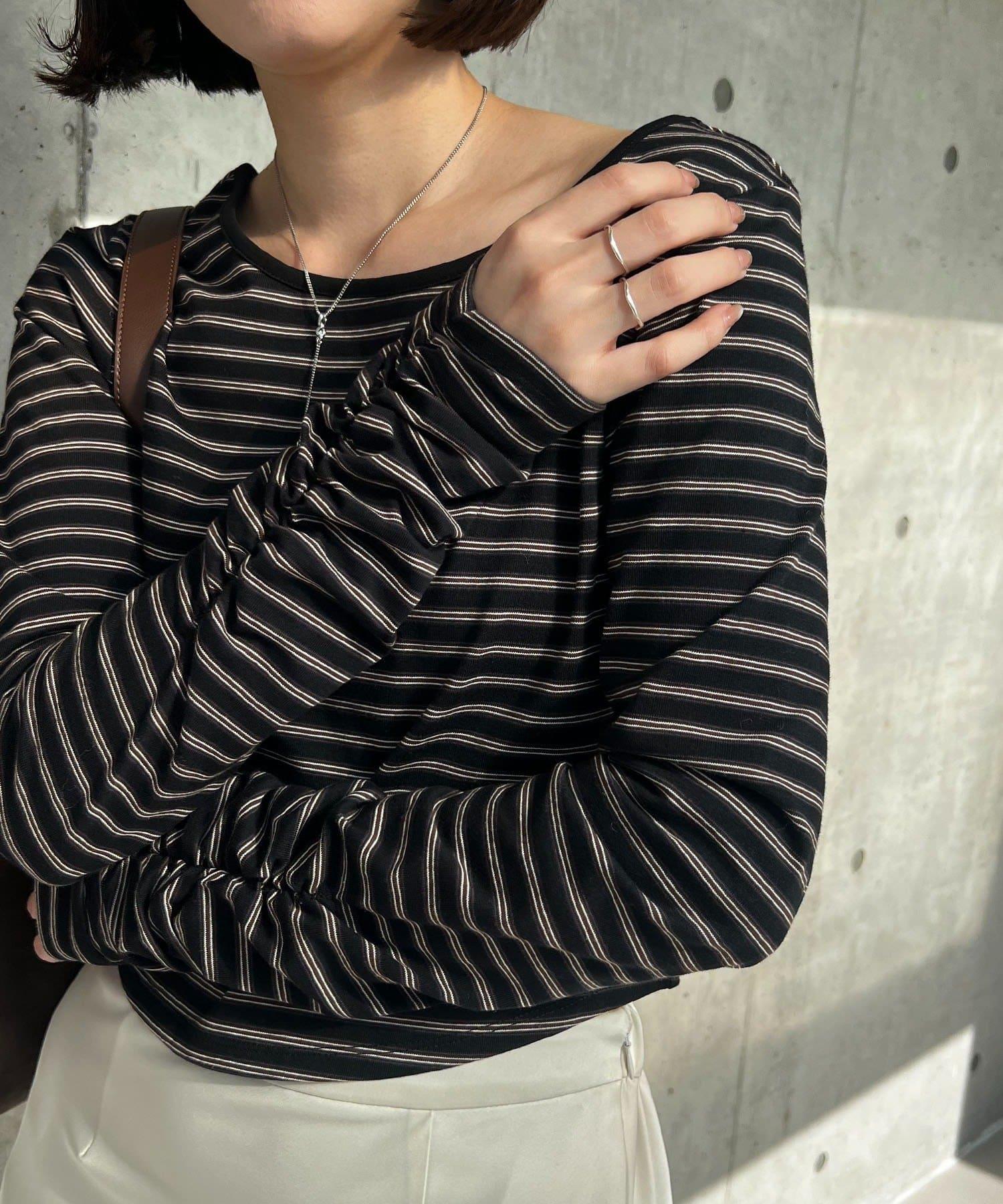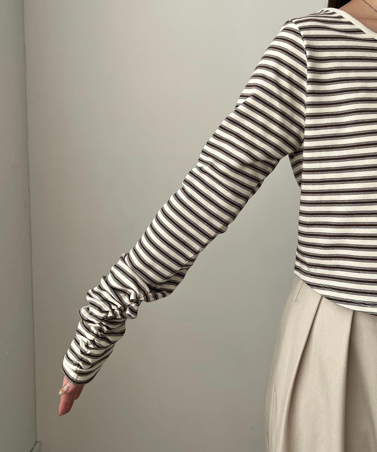後背U領短款條紋T恤