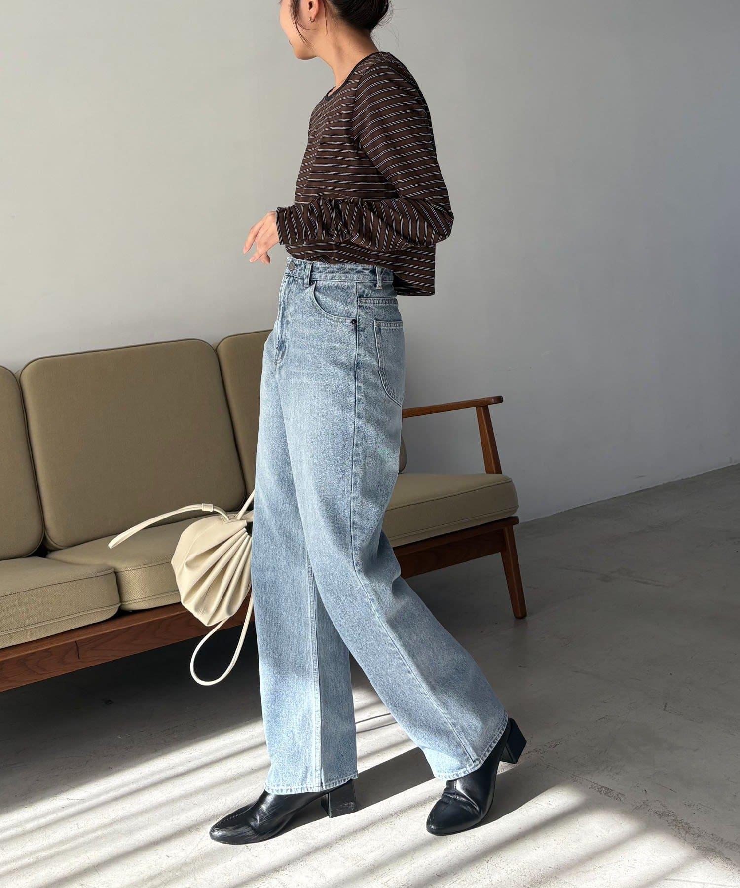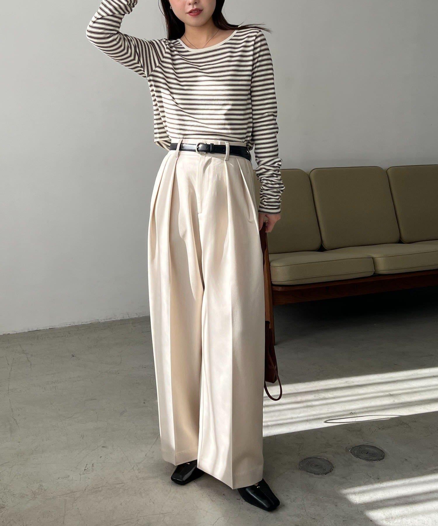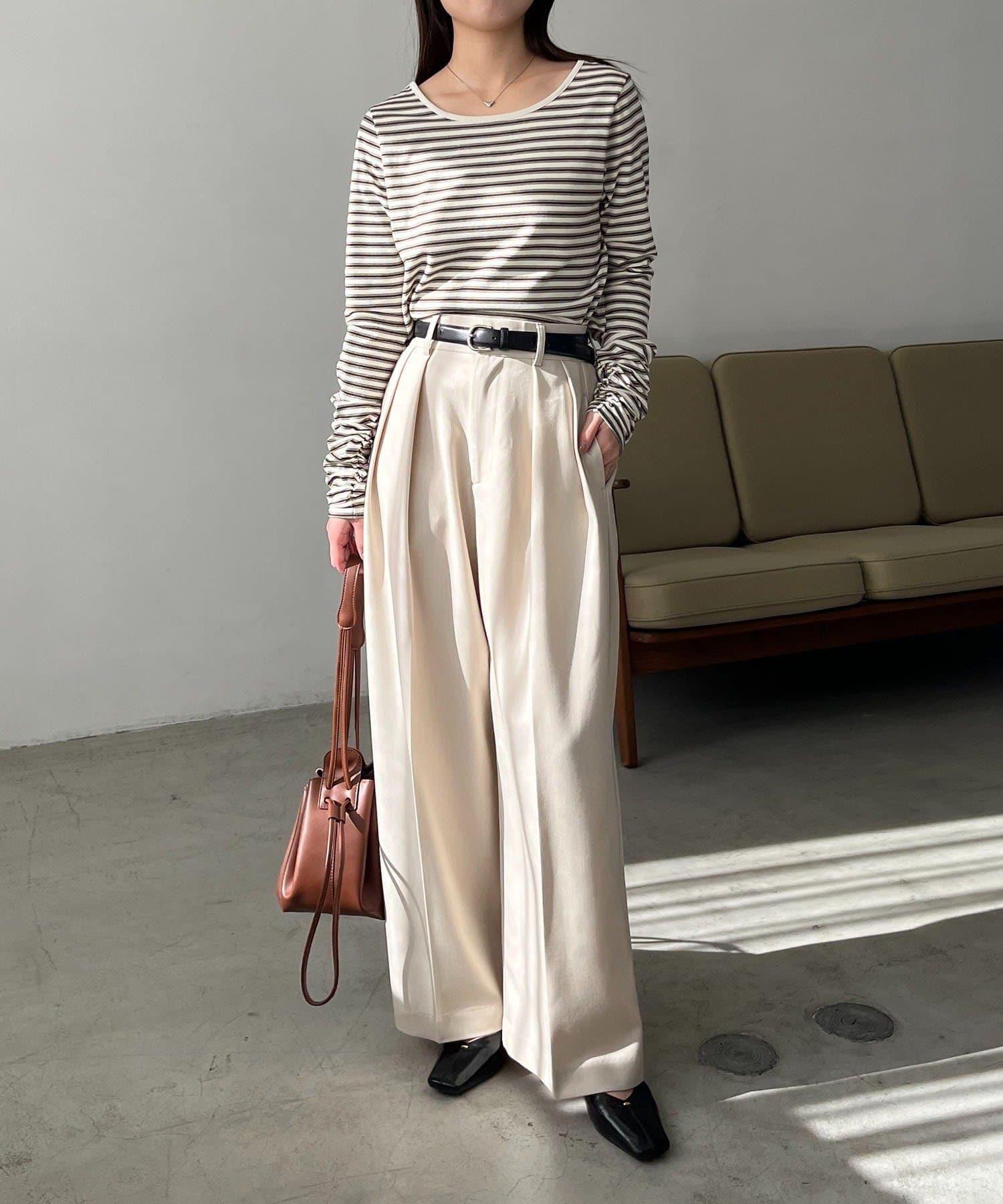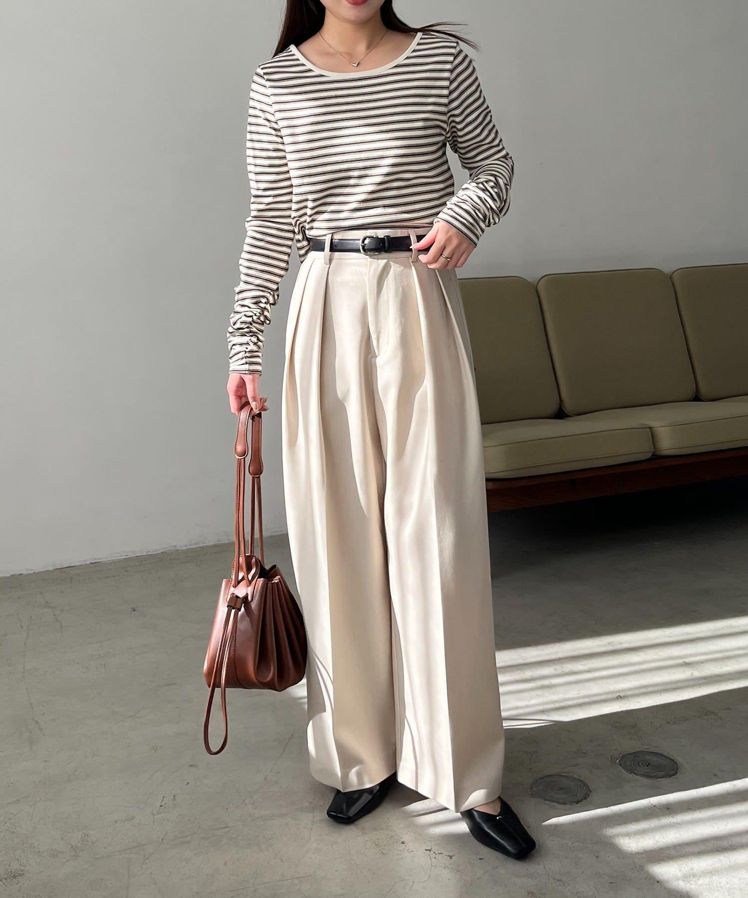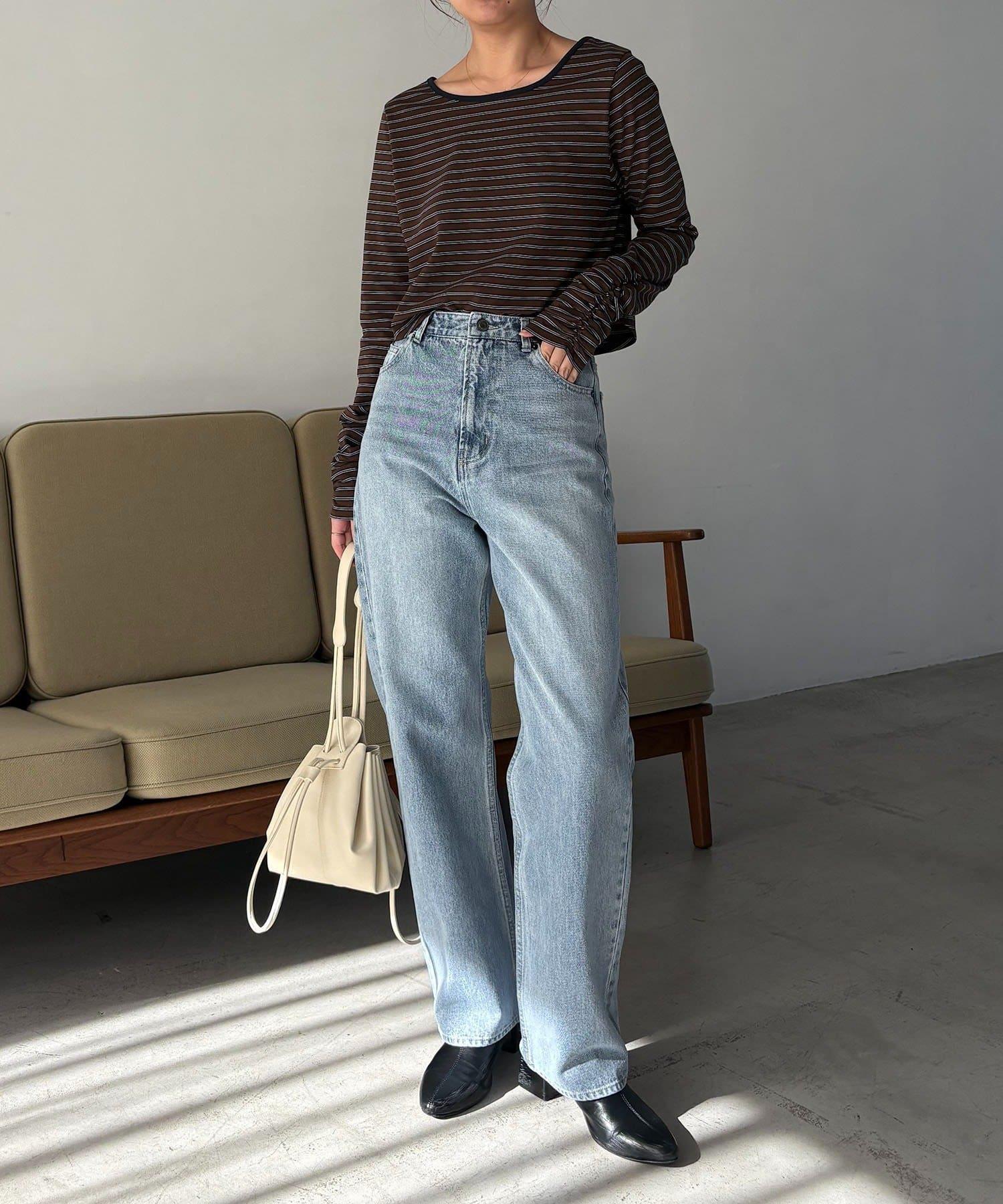 後背U領短款條紋T恤