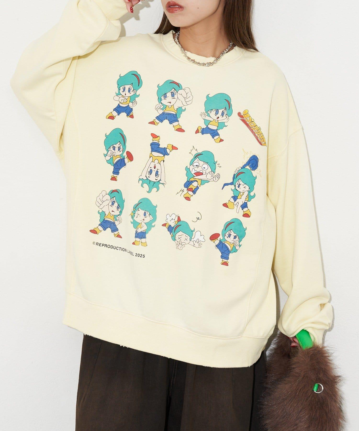 復古感十足的超大號運動衫,俏皮的印花設計。