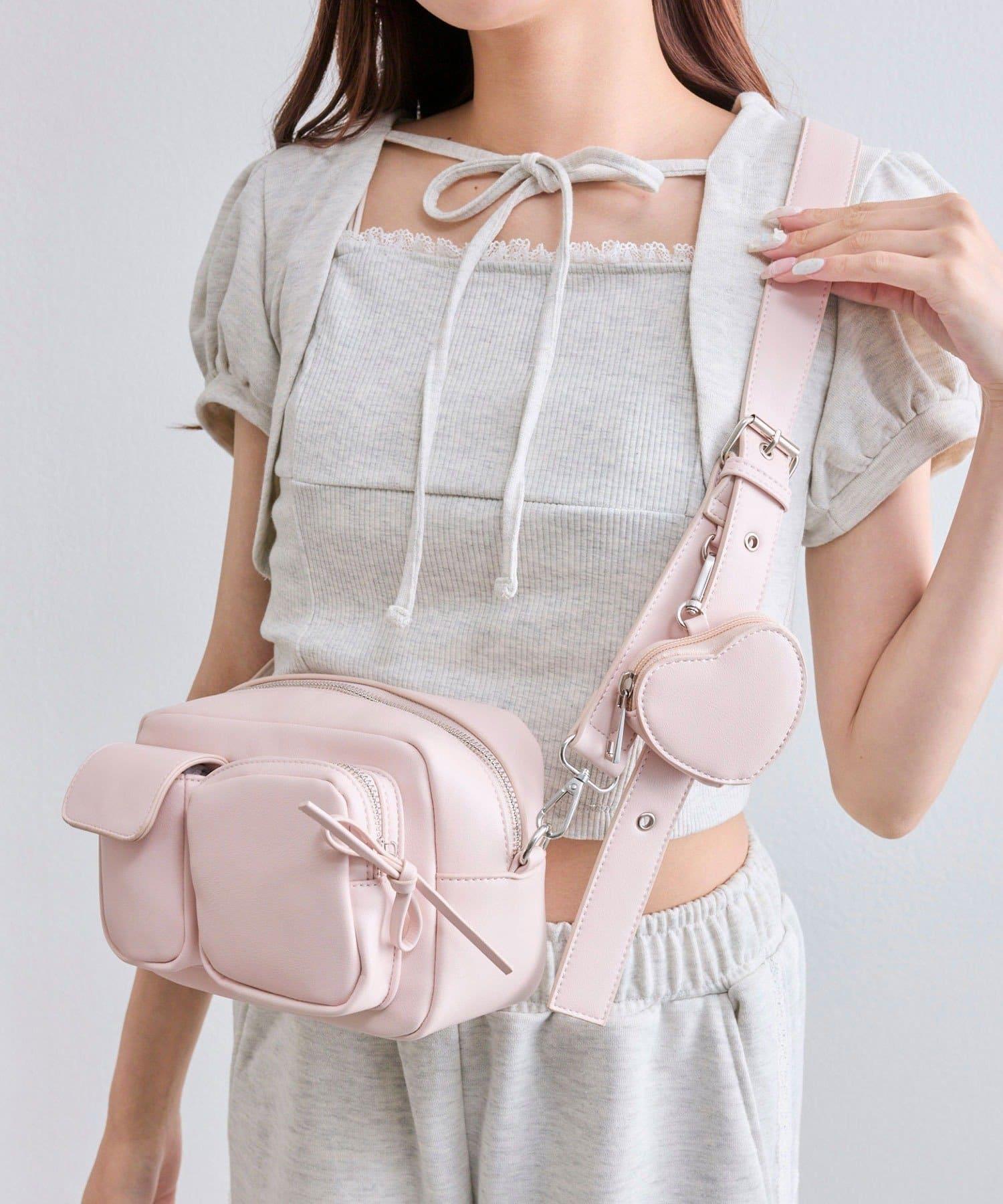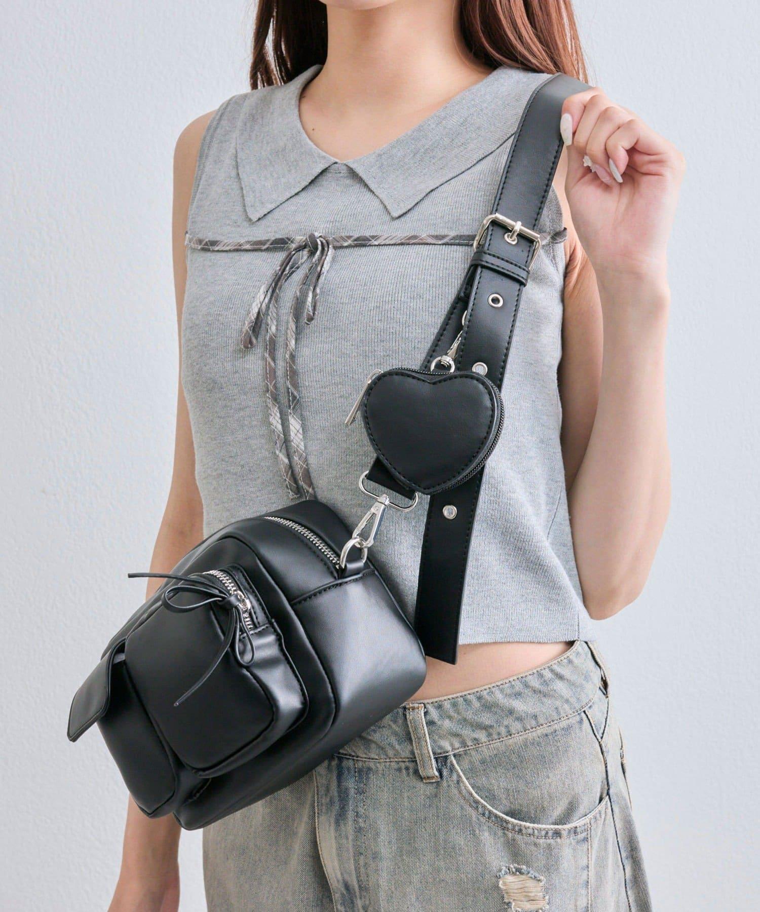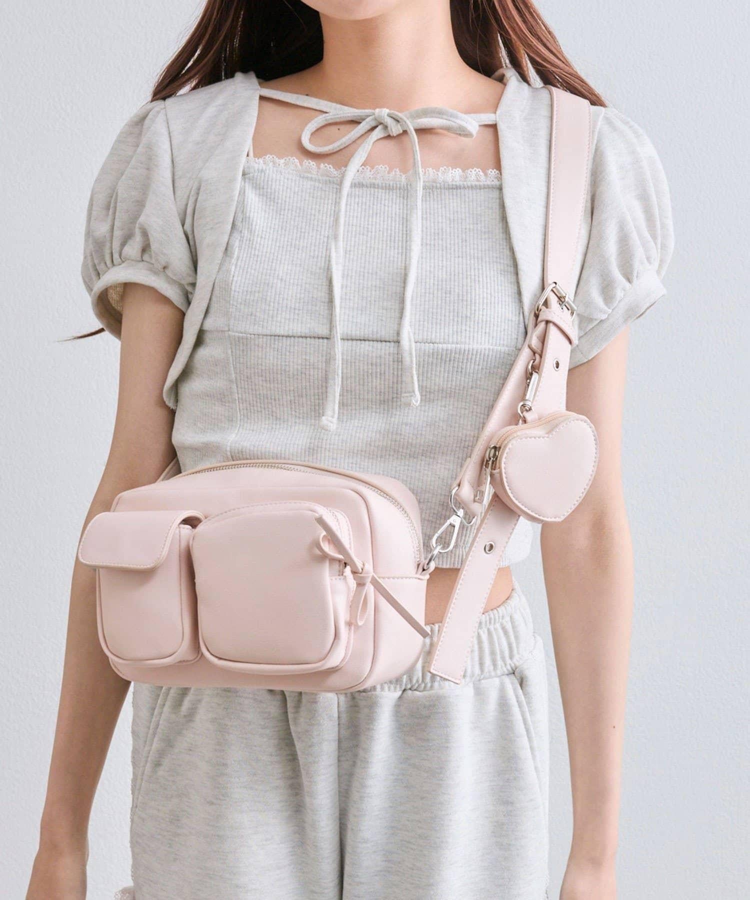 包包上有一個可愛的心形小袋,尺寸迷你,既可愛又實用。