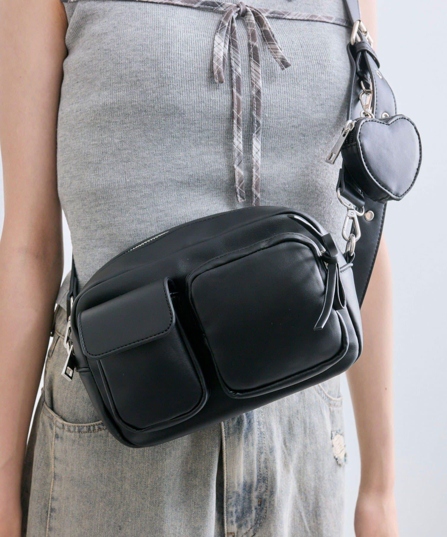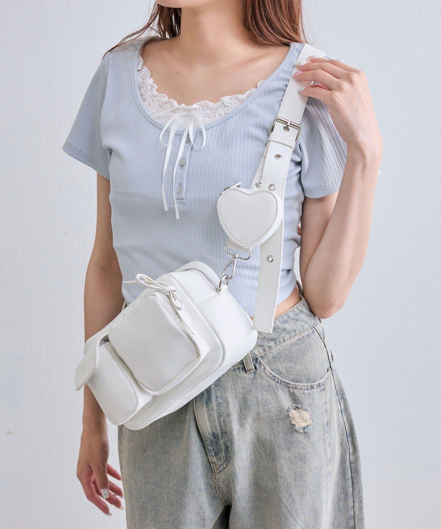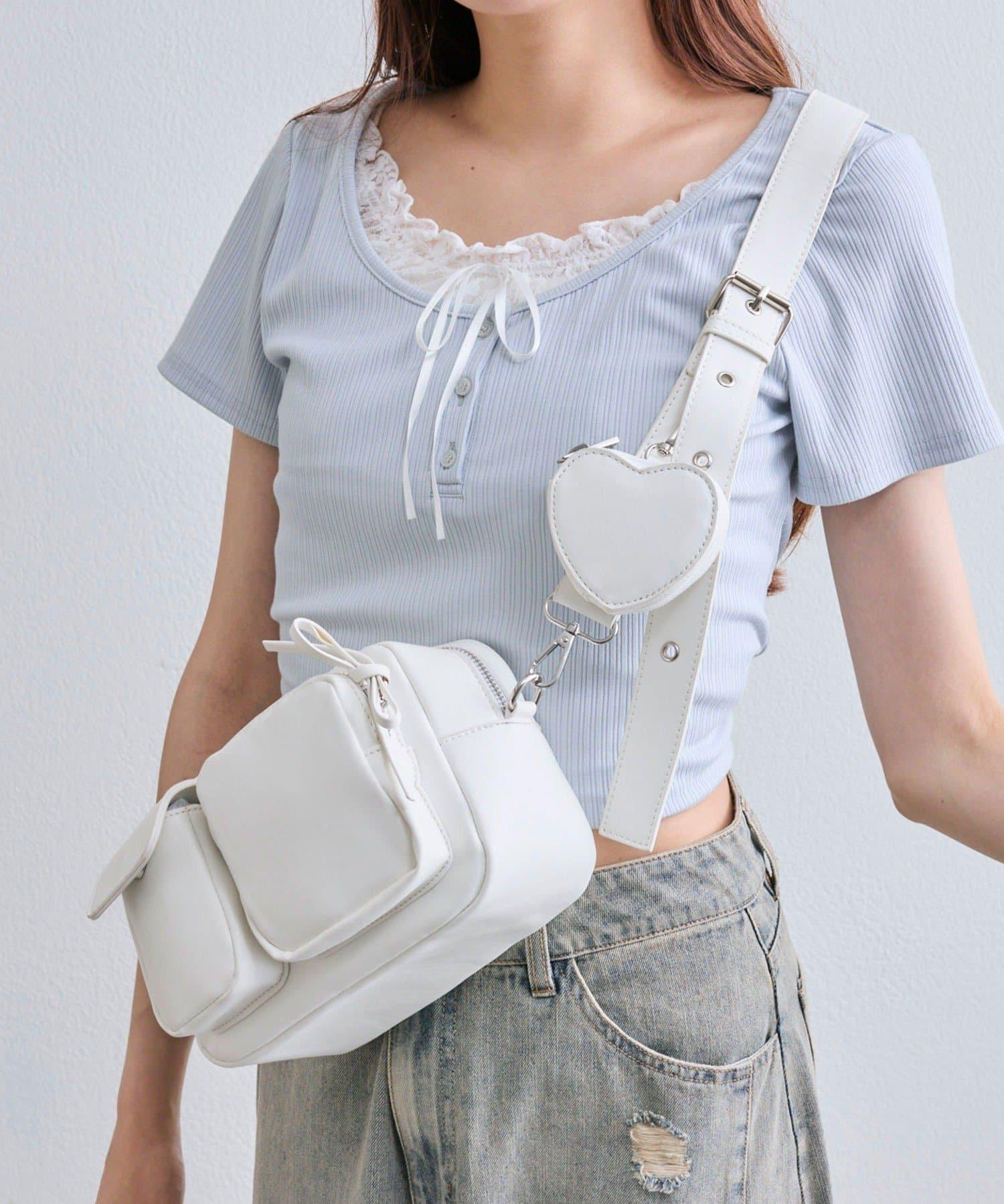 包包上有一個可愛的心形小袋,尺寸迷你,既可愛又實用。