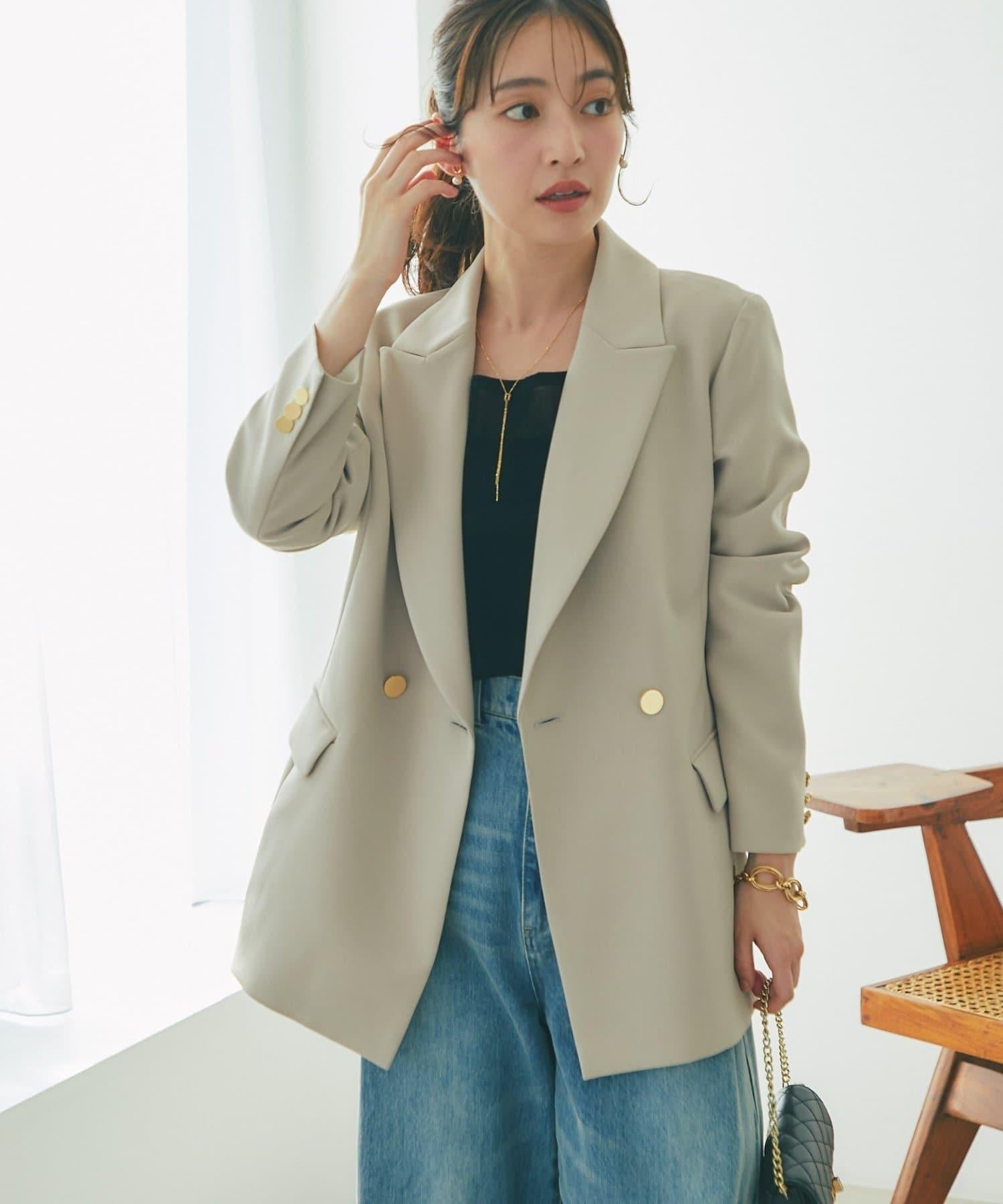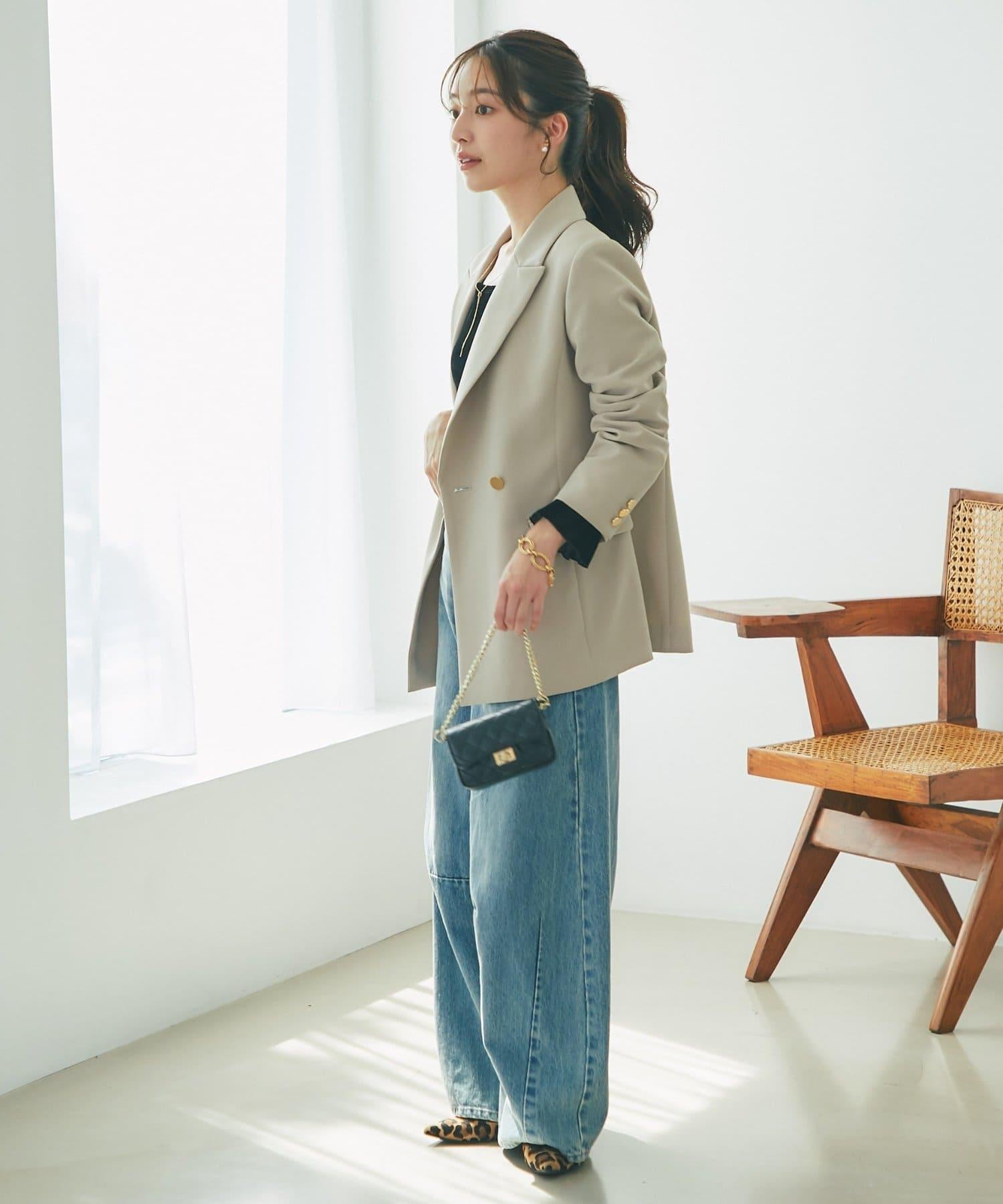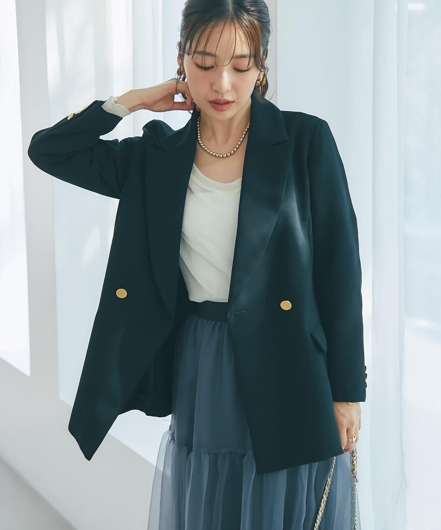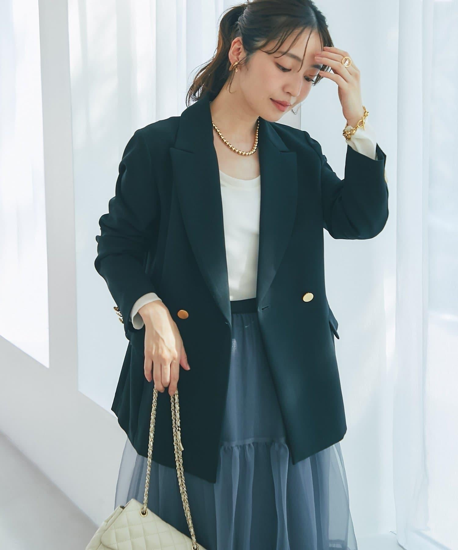 金色紐扣將視線引向上方,有效提升時尚感。