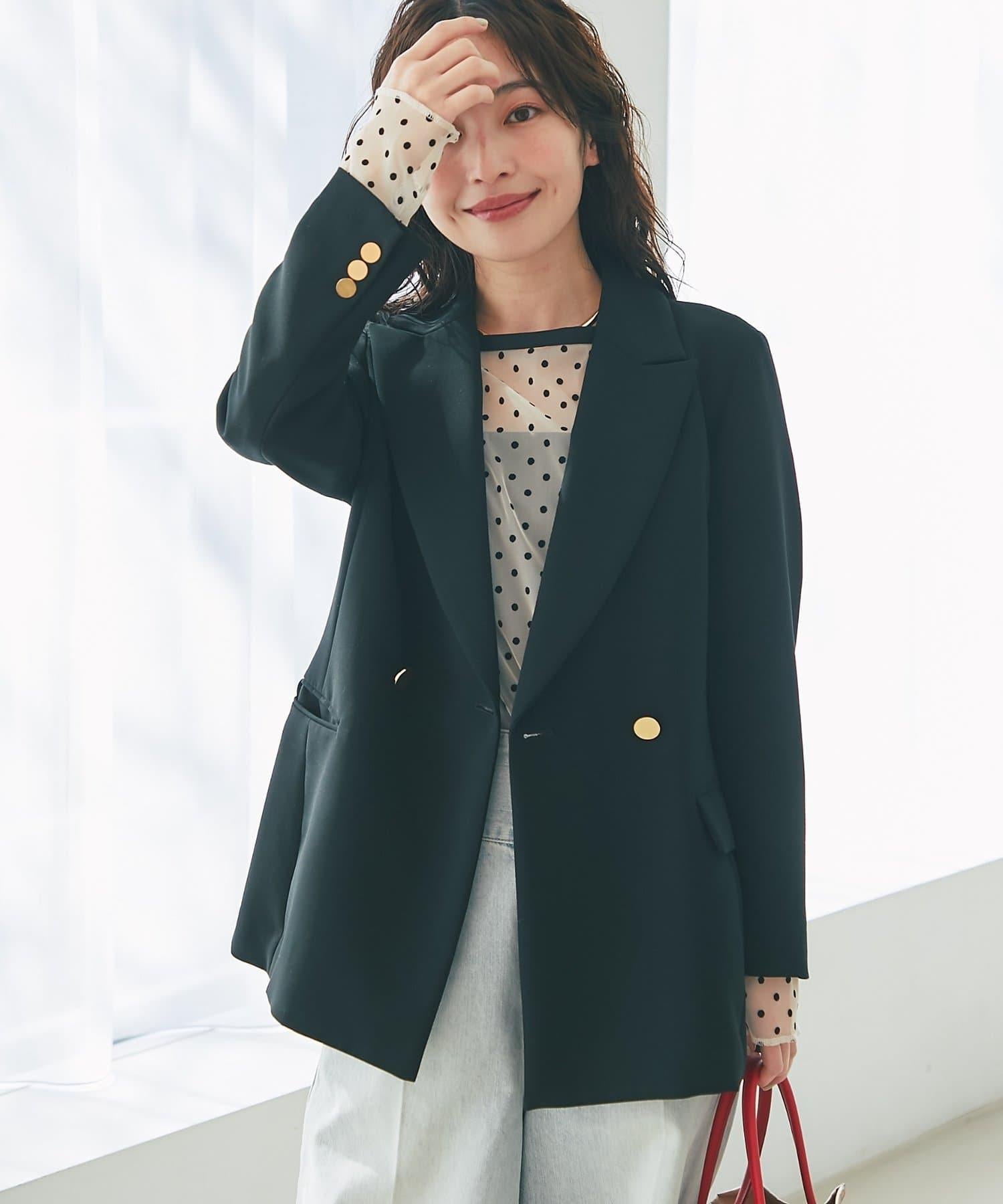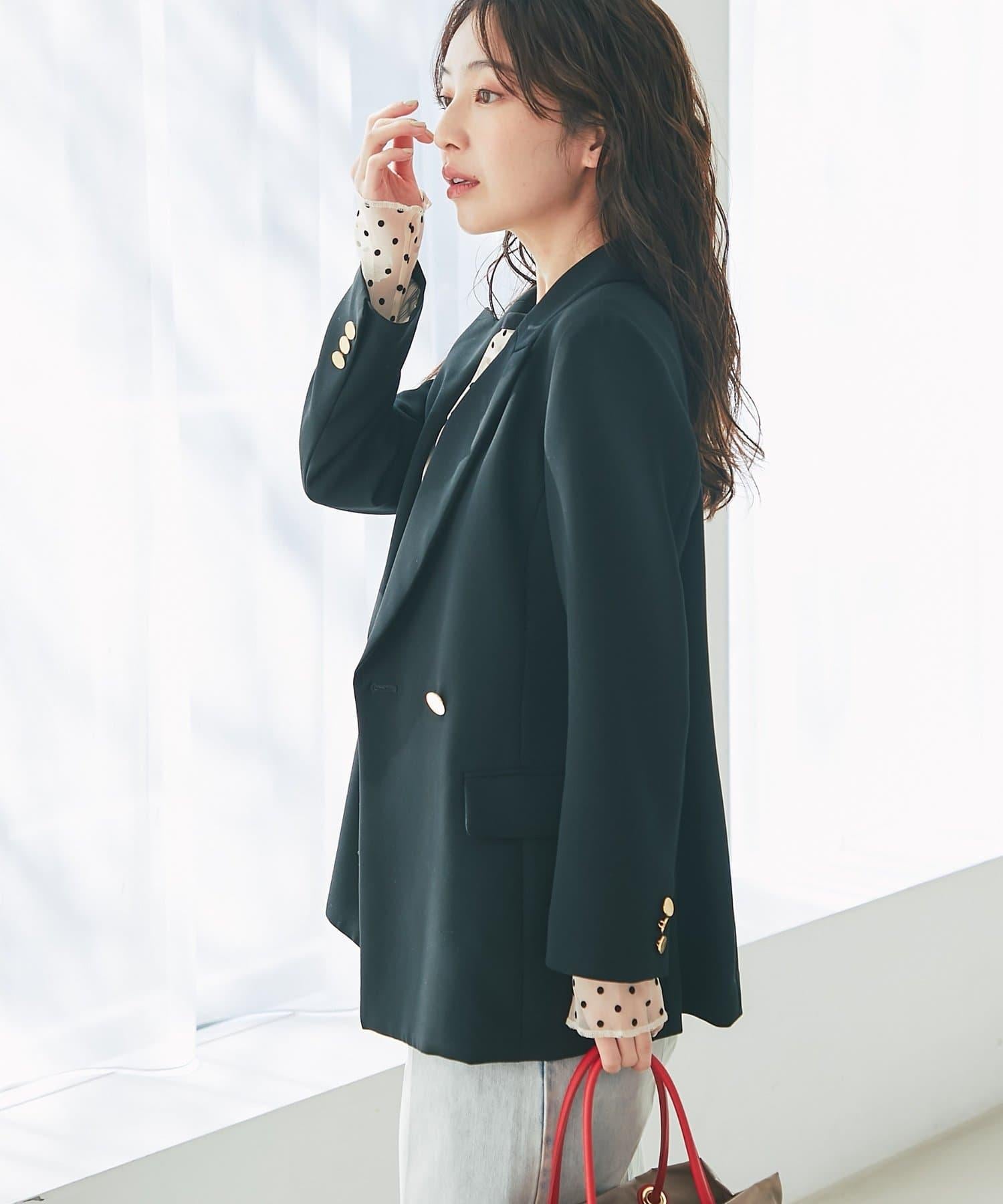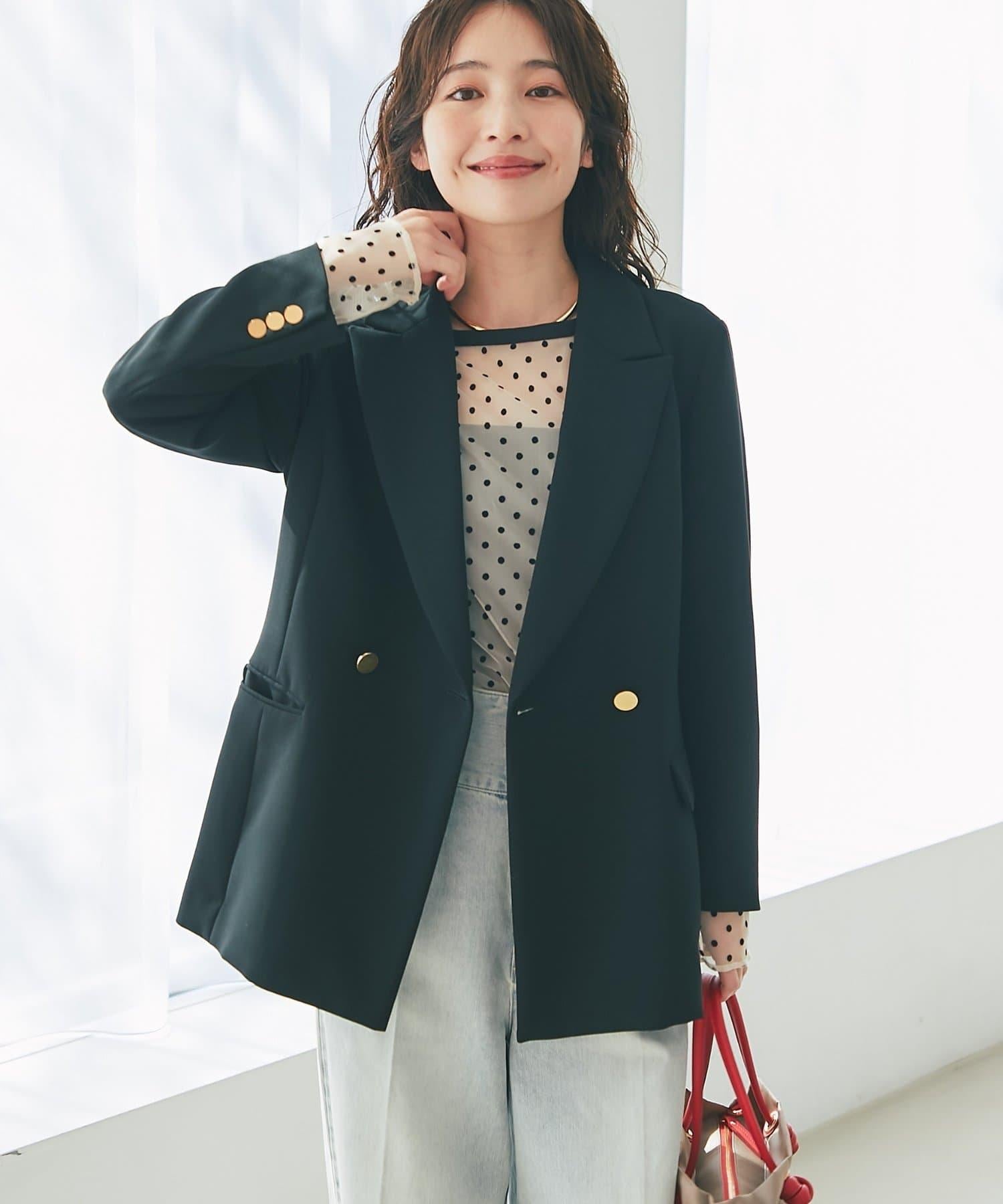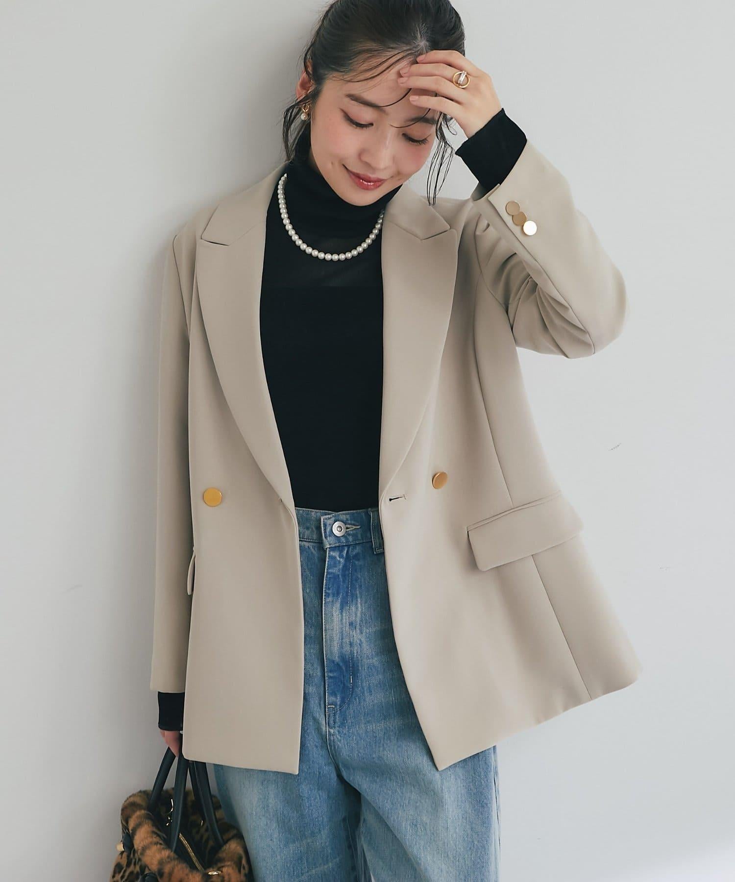 金色紐扣將視線引向上方,有效提升時尚感。