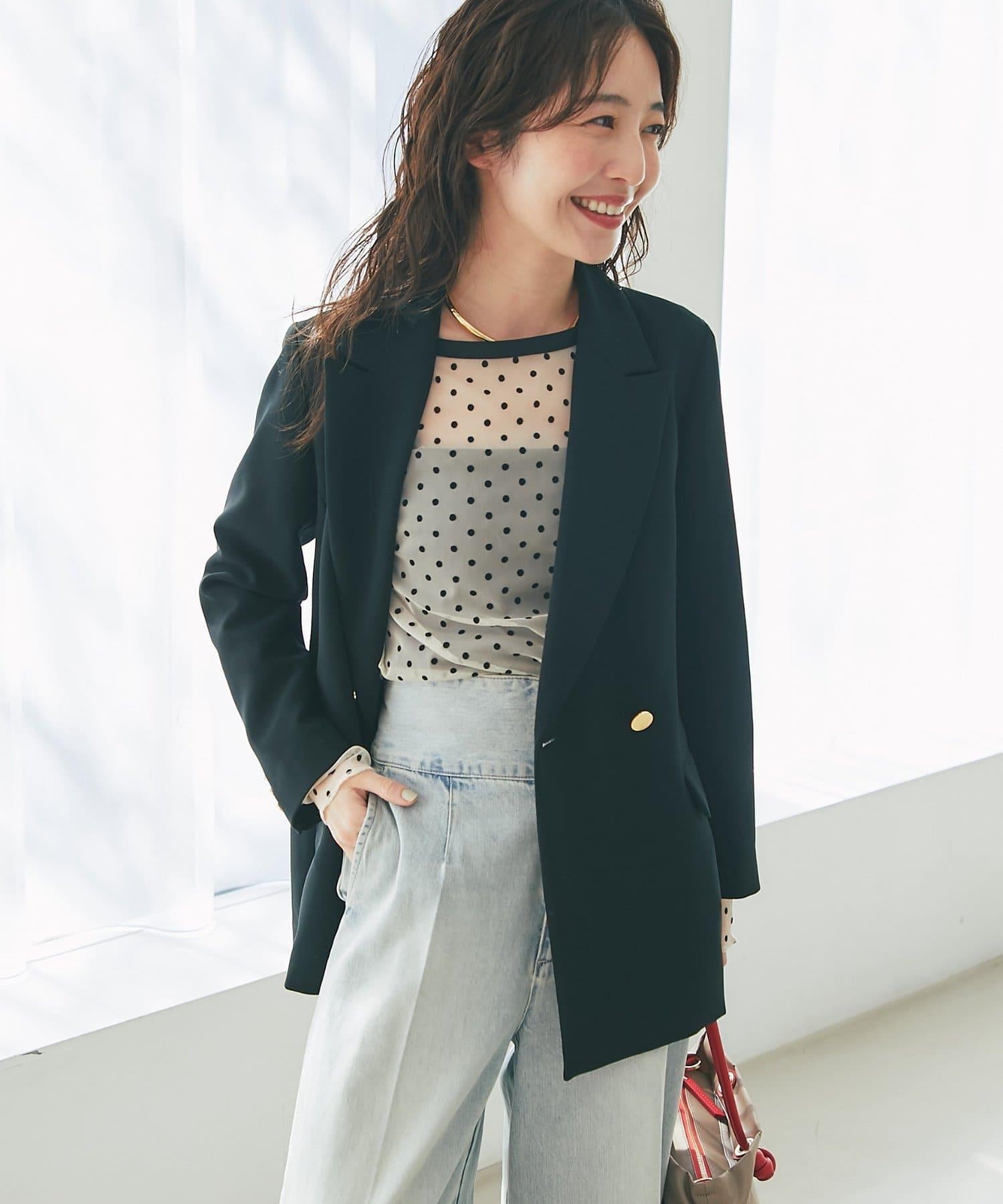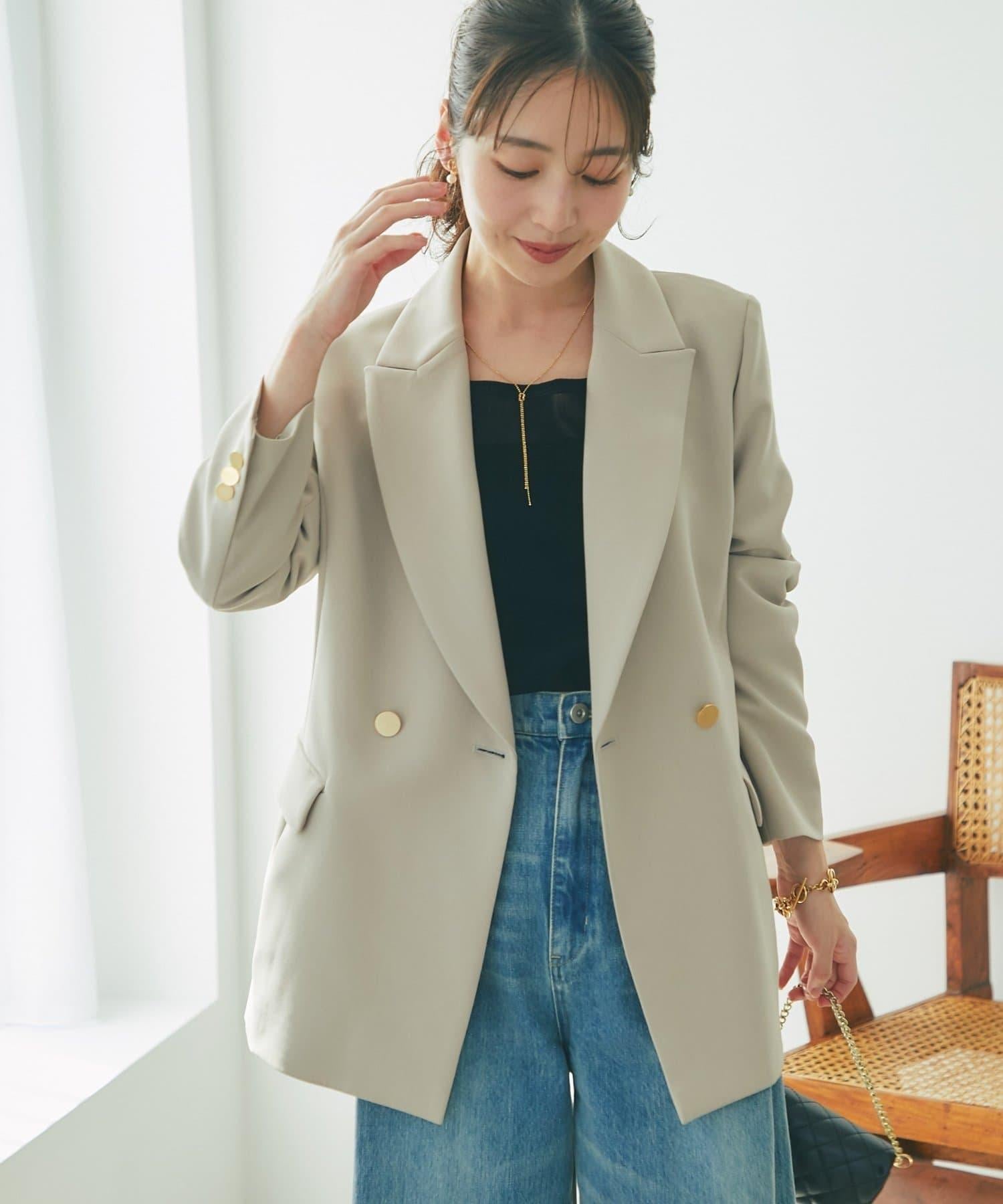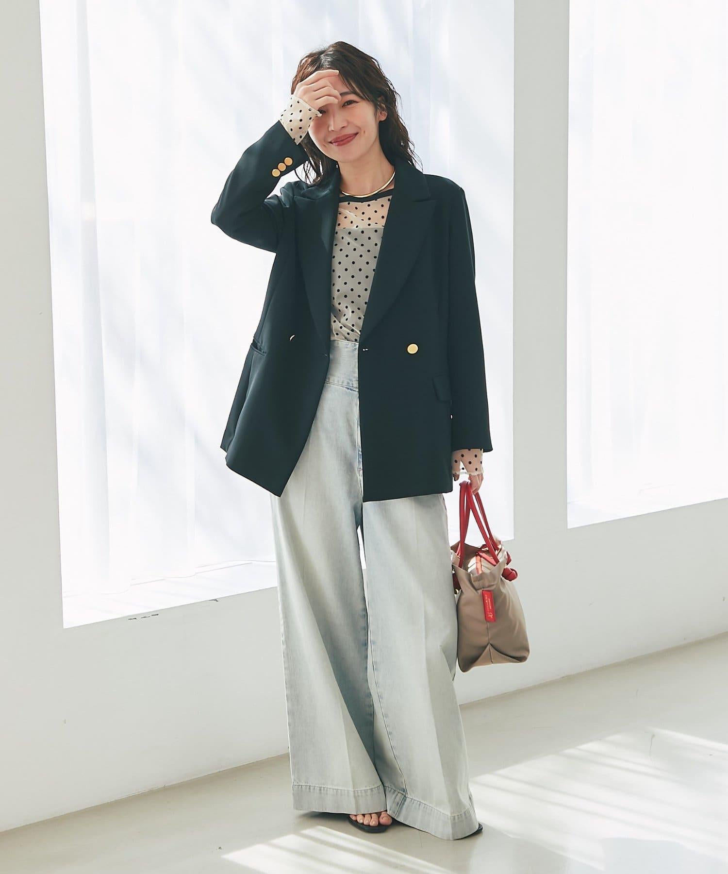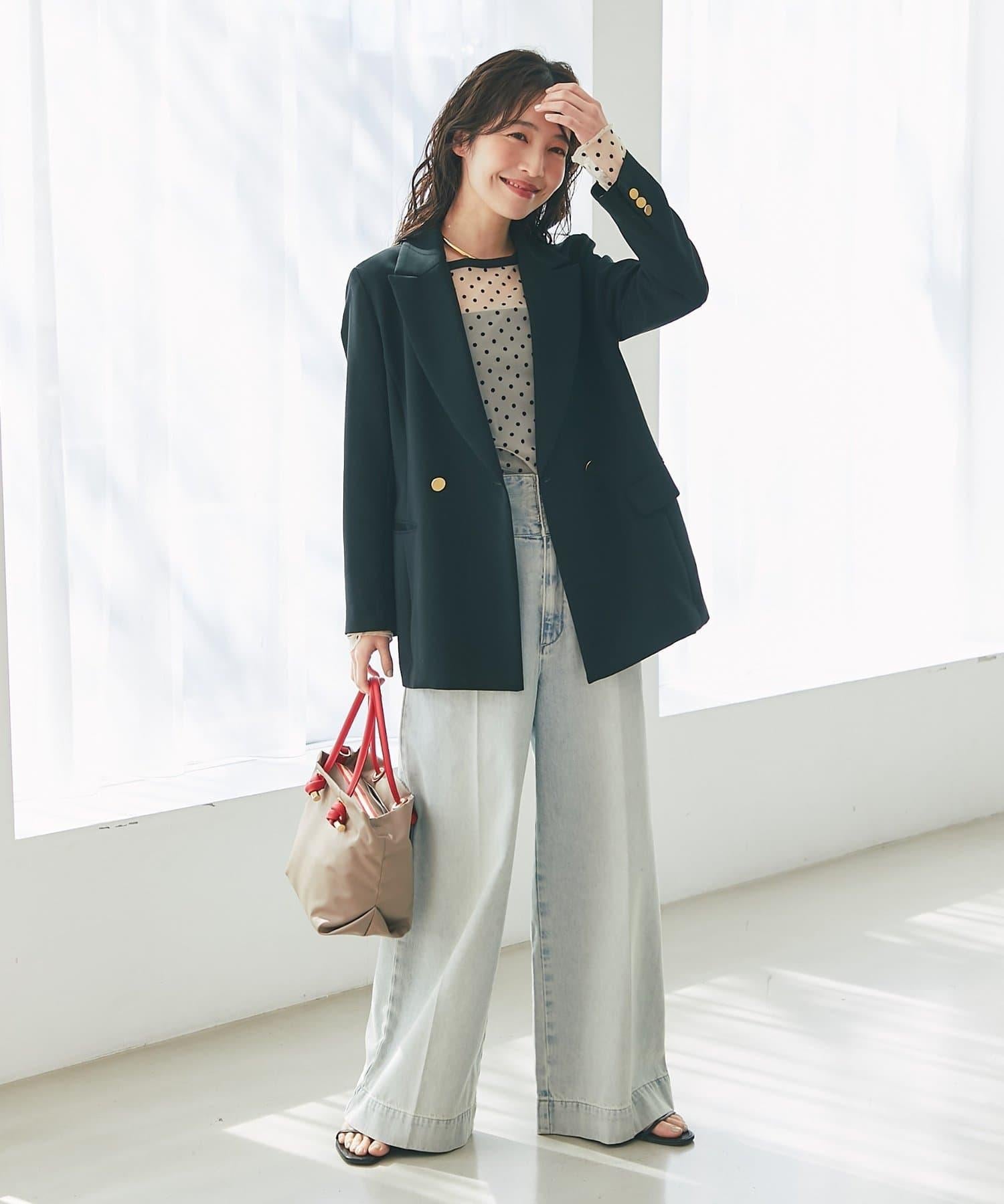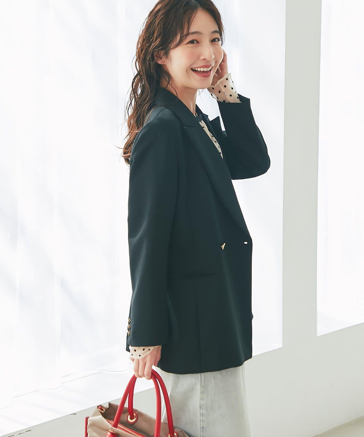 金色紐扣將視線引向上方,有效提升時尚感。