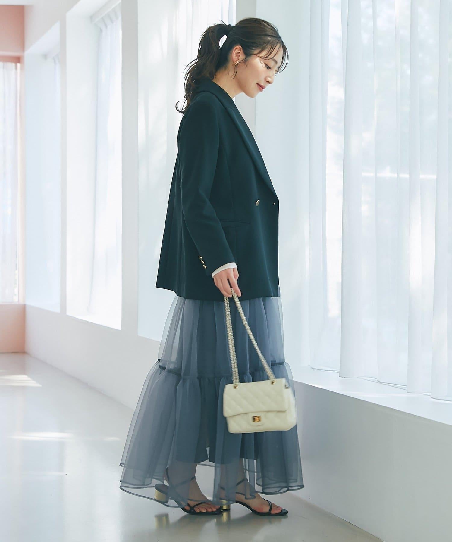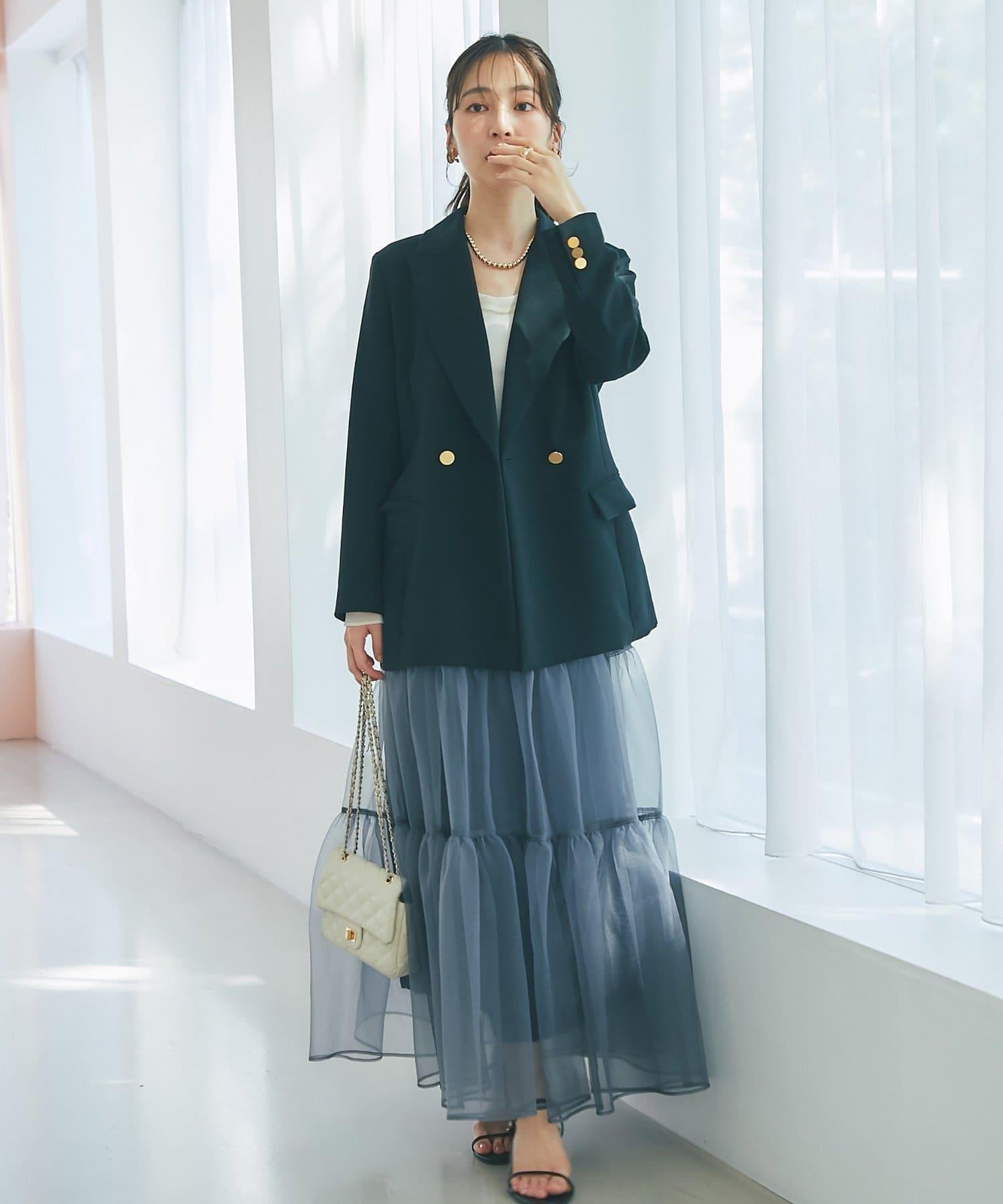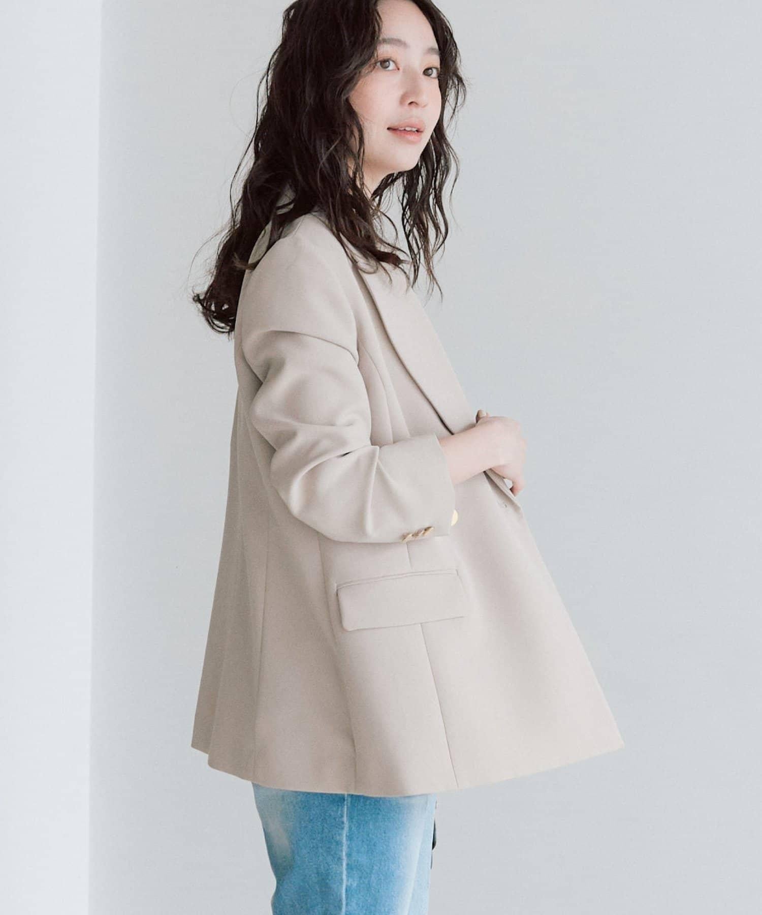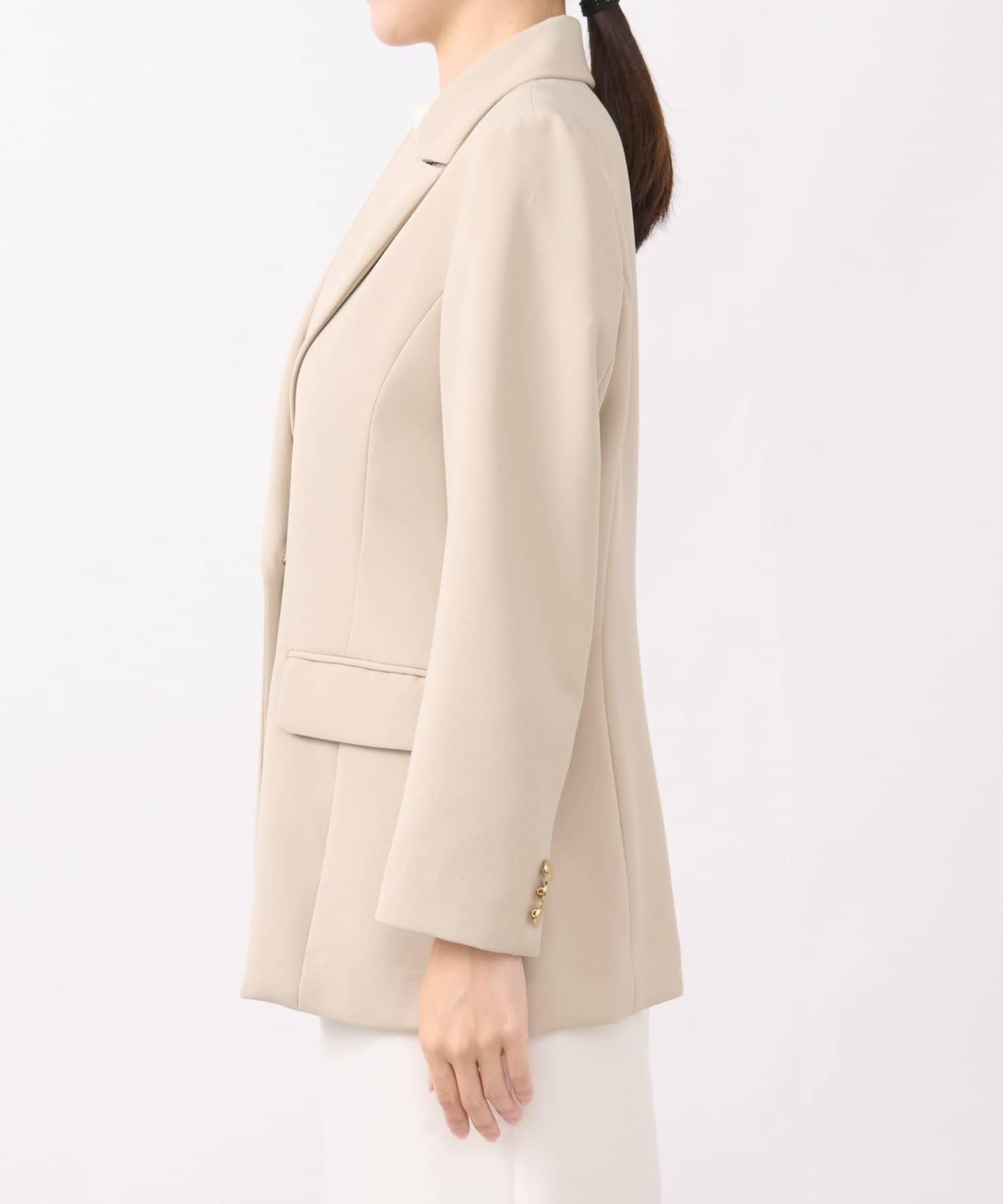 金色紐扣將視線引向上方,有效提升時尚感。