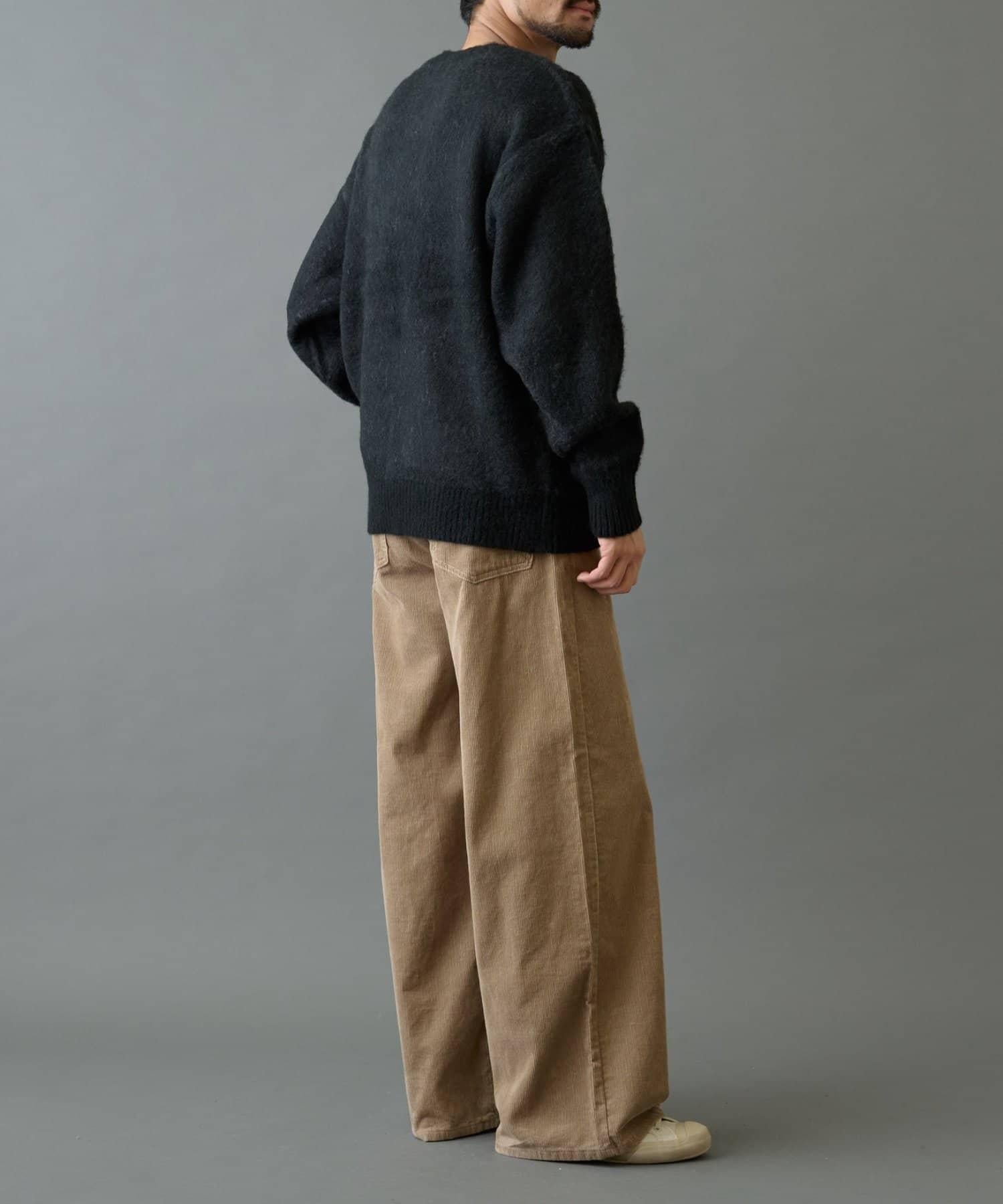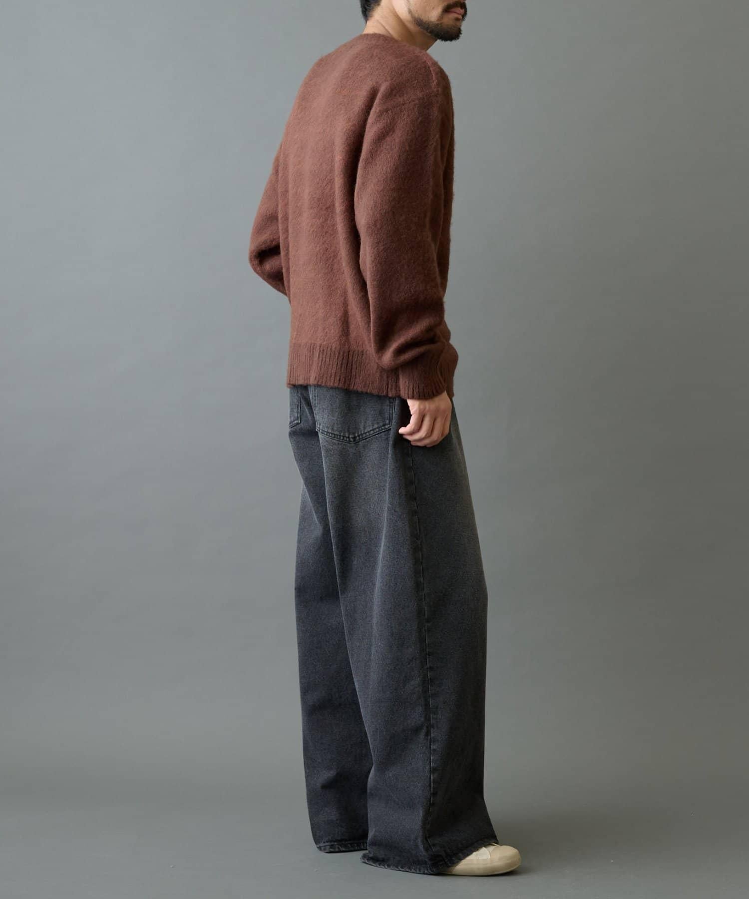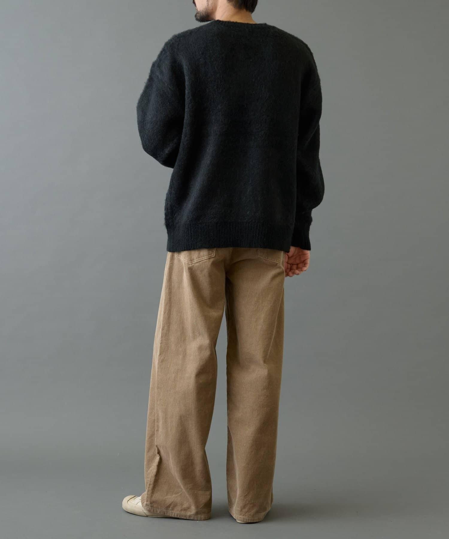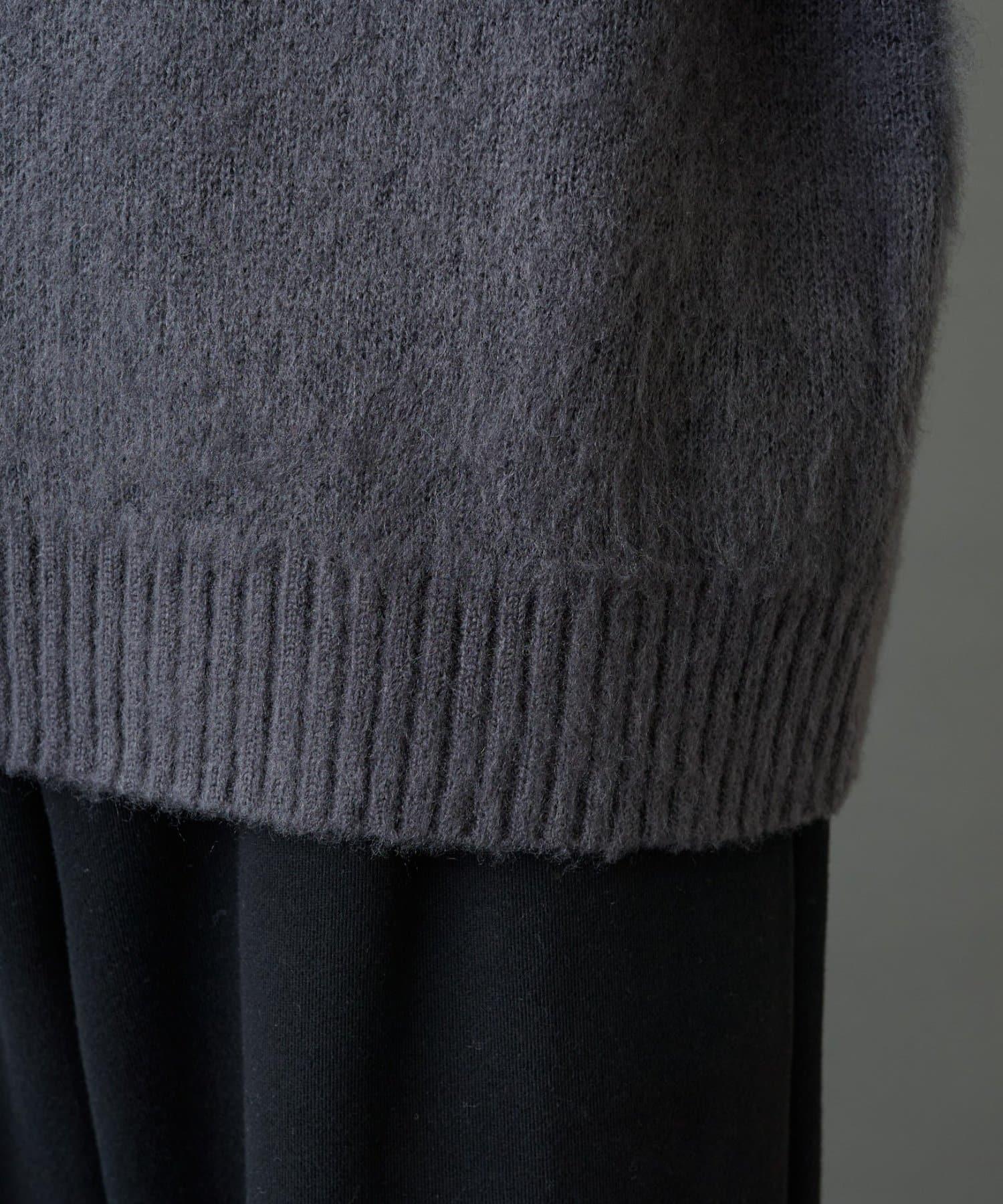 這款手寫針織衫採用蓬鬆的馬海毛面料,外觀優雅。