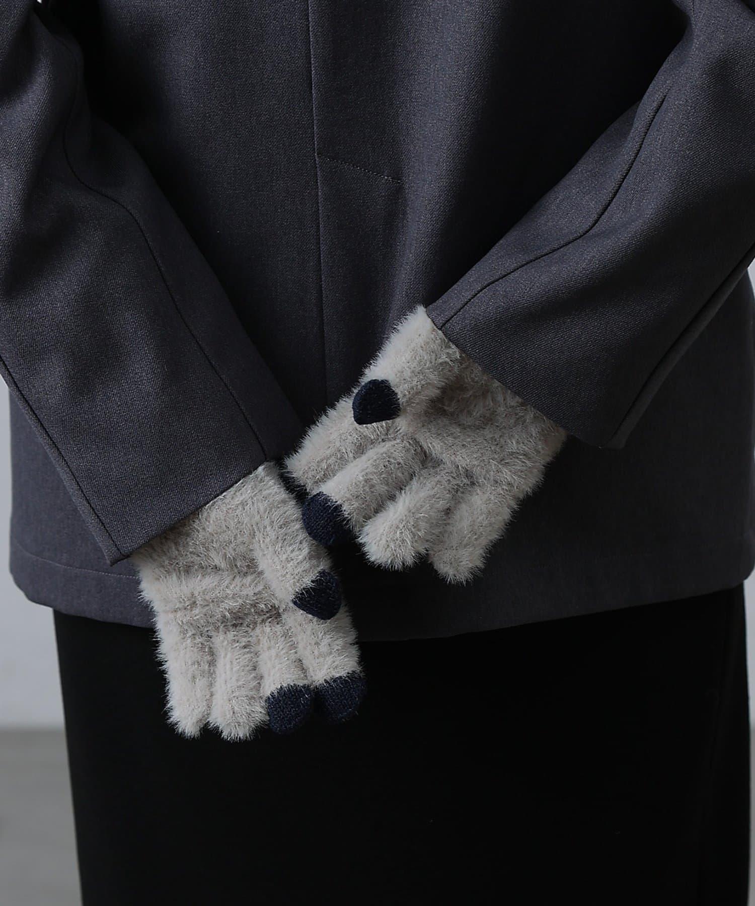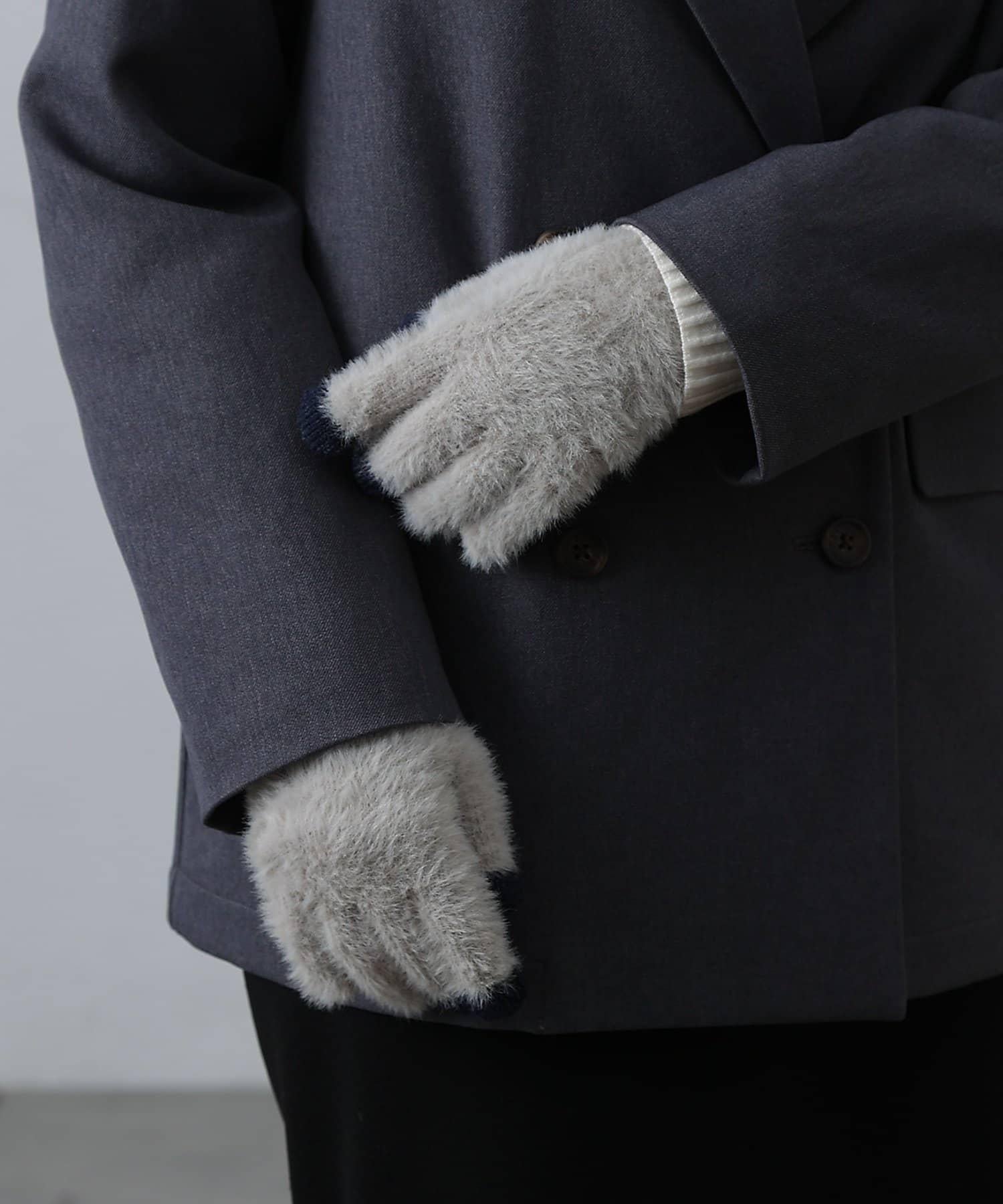 柔軟的馬海毛材質讓這款手套看起來柔軟、蓬鬆、可愛。