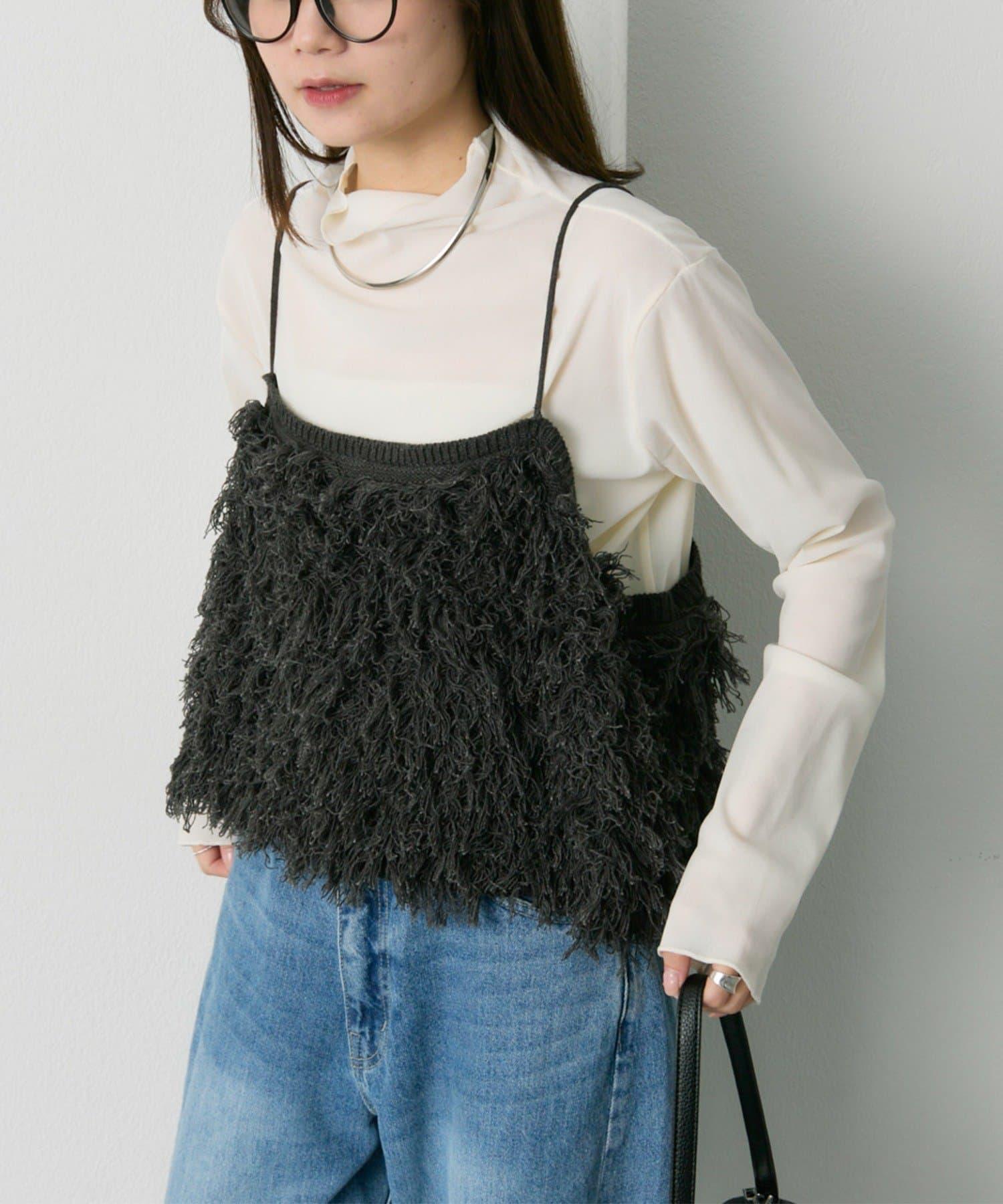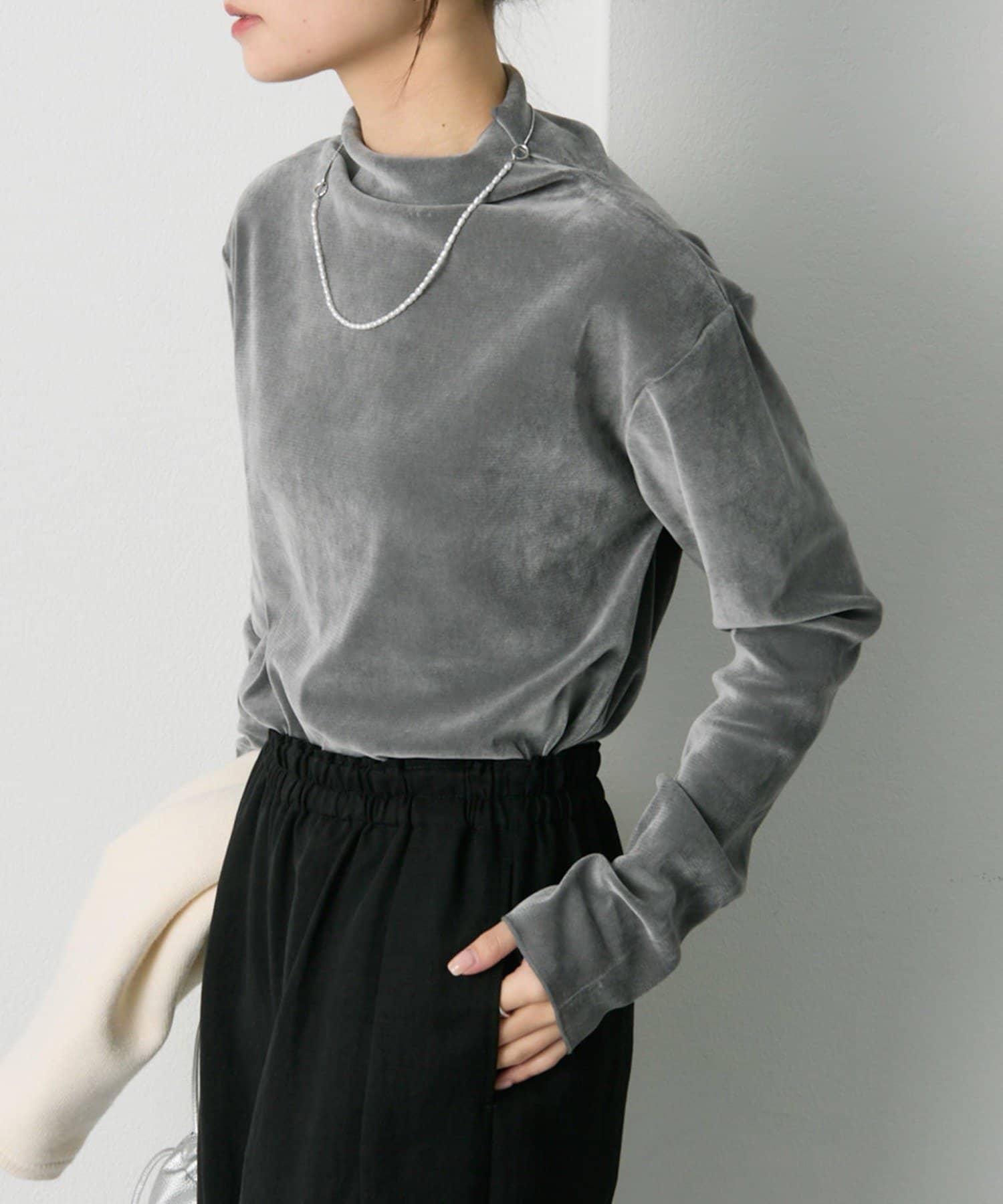 【/復刻】尼龍網紗天鵝絨高領上衣