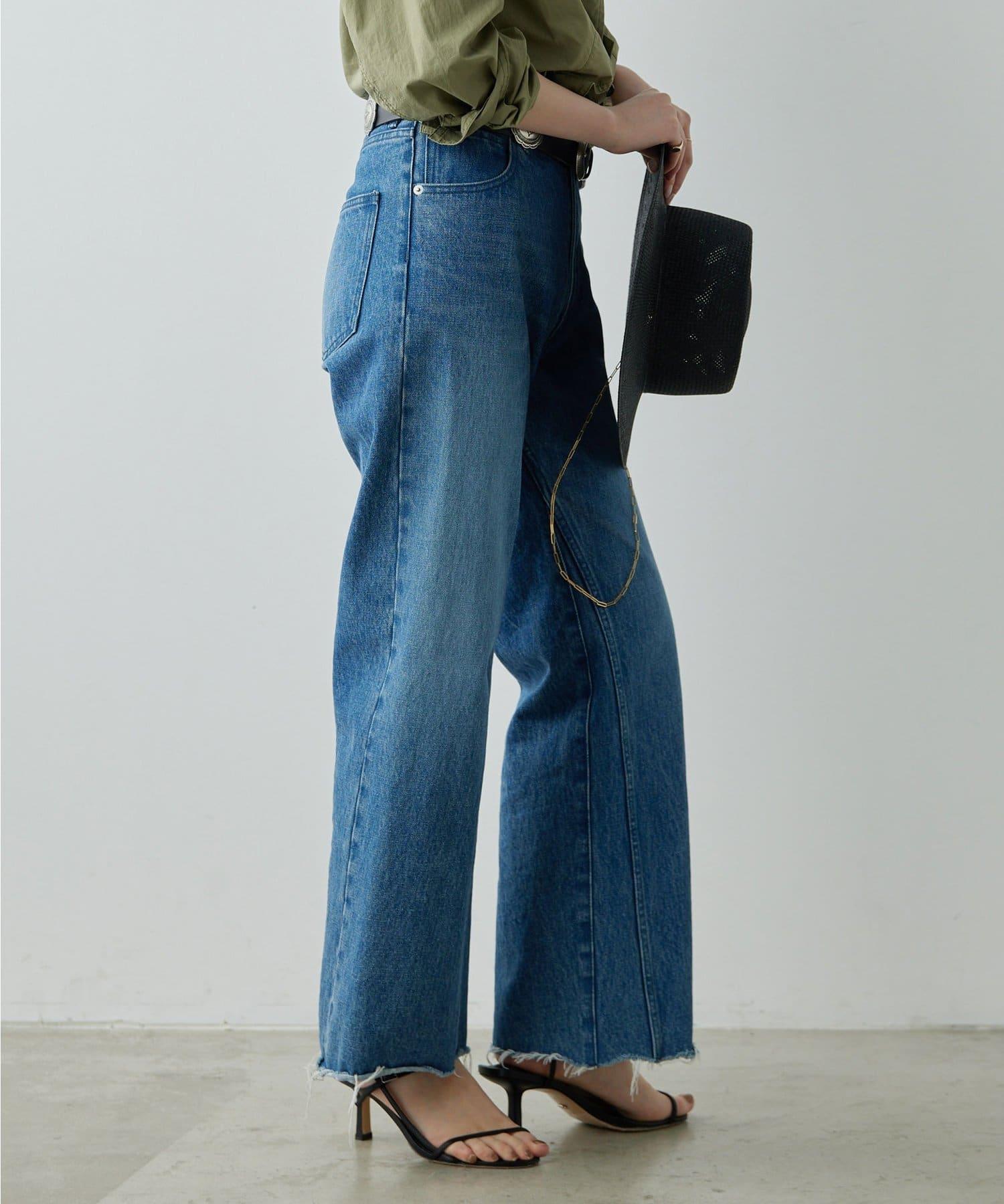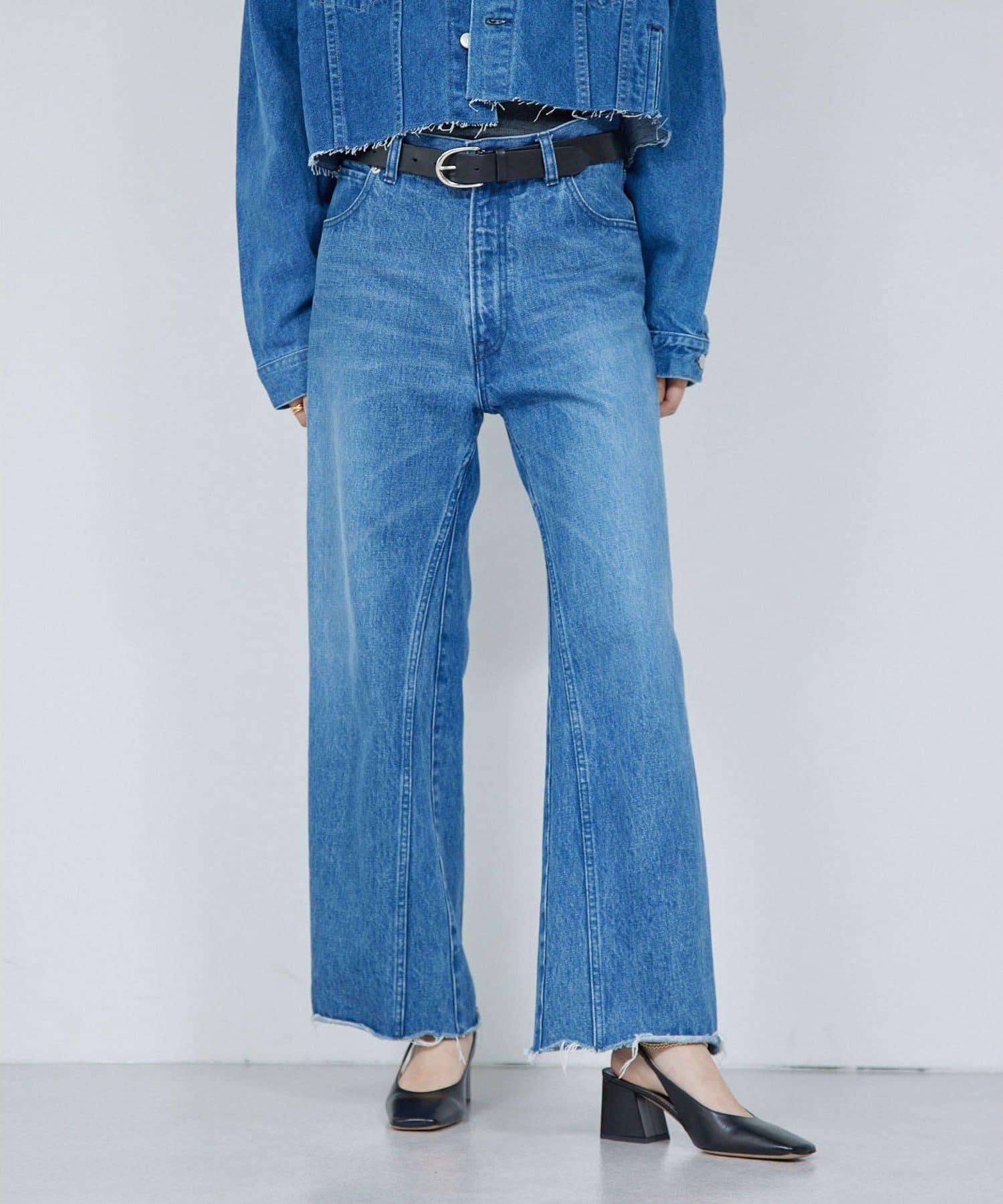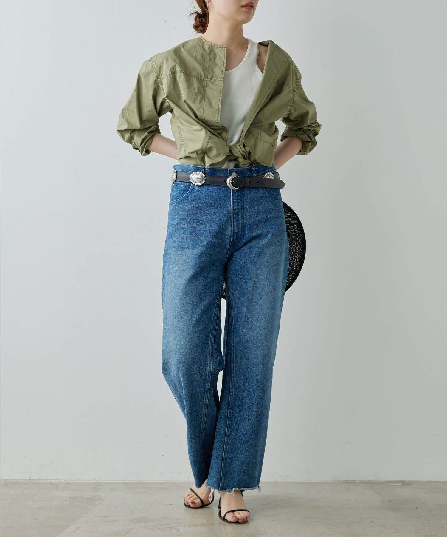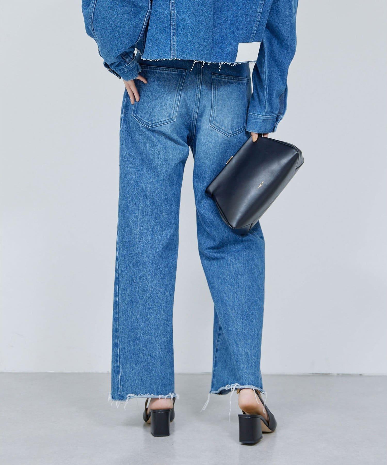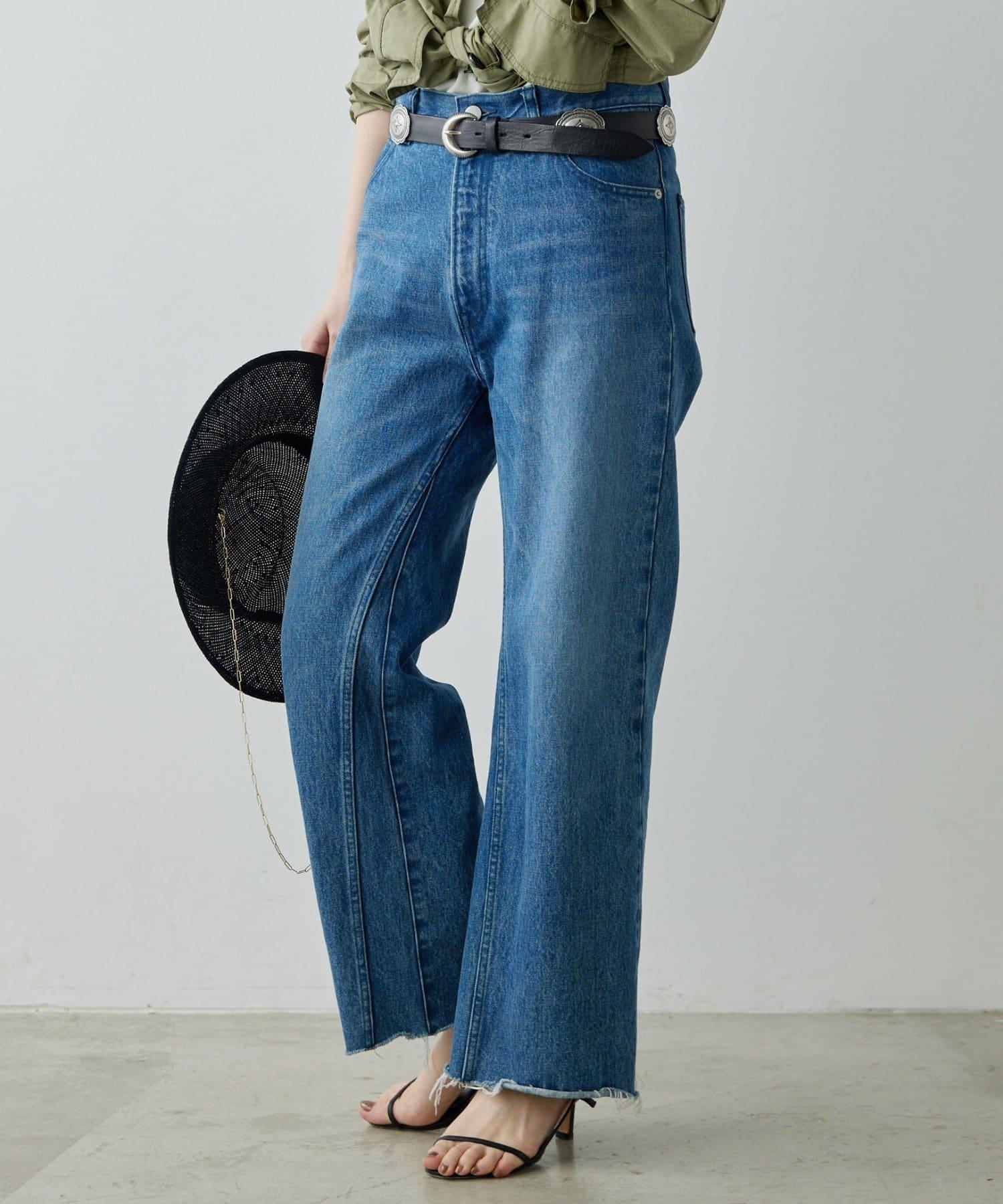 牛仔褲內側的輪廓設計使腿部線條看起來更加流暢。