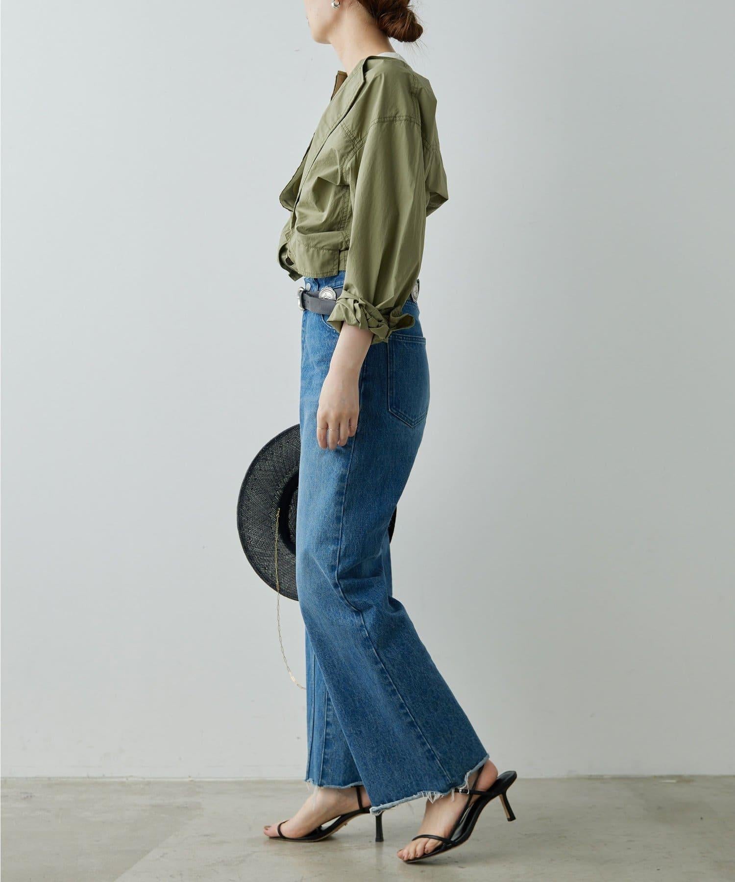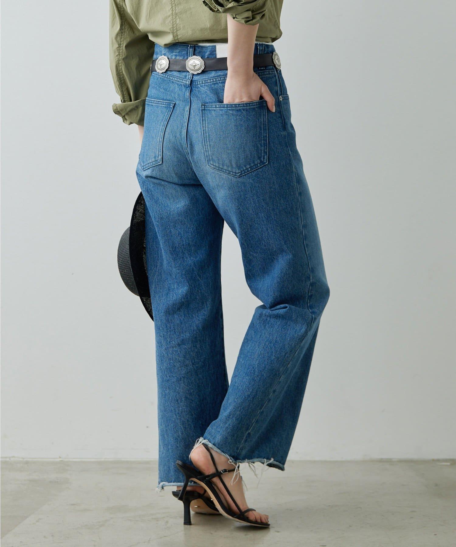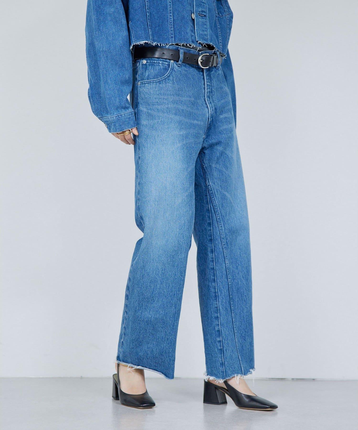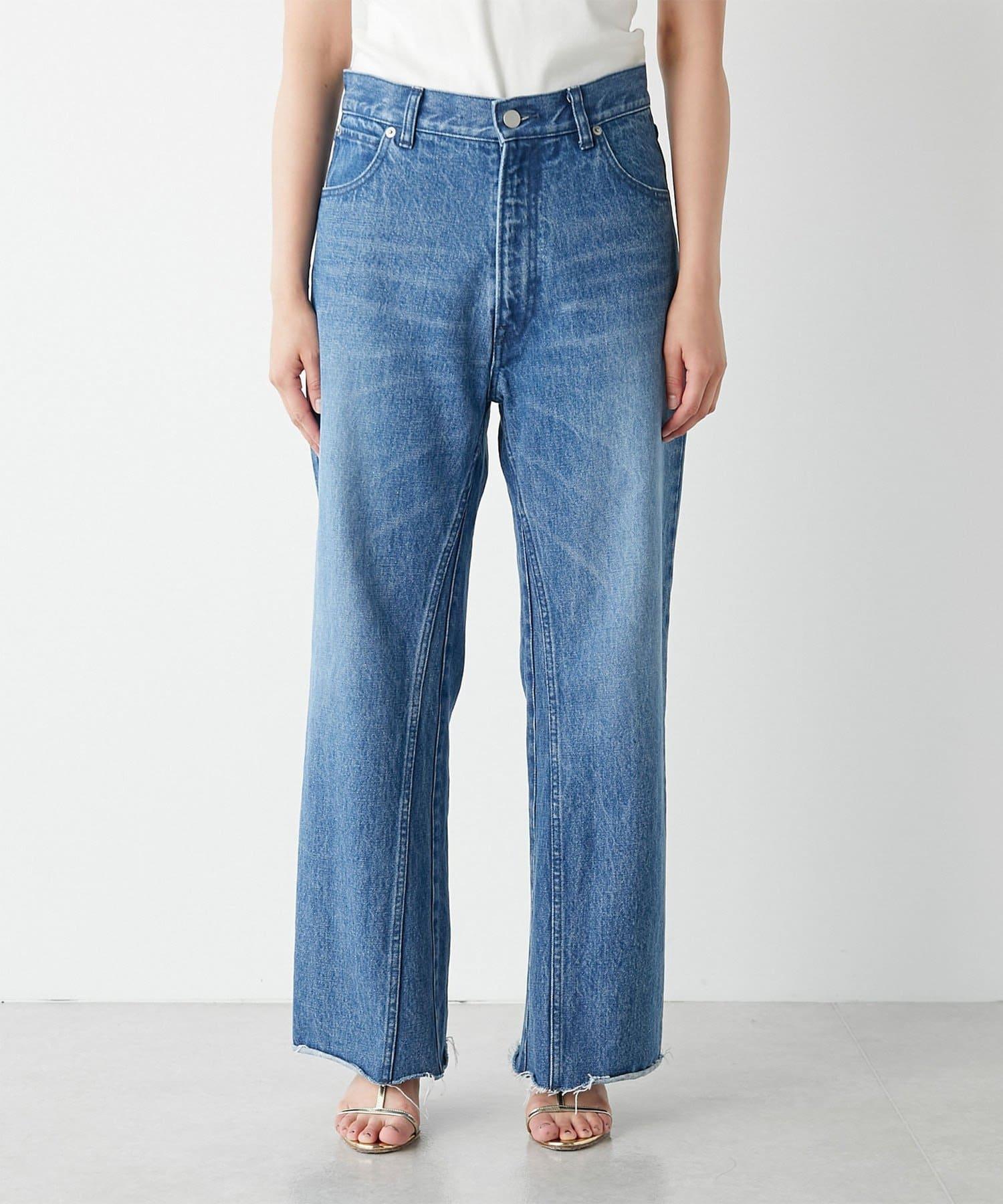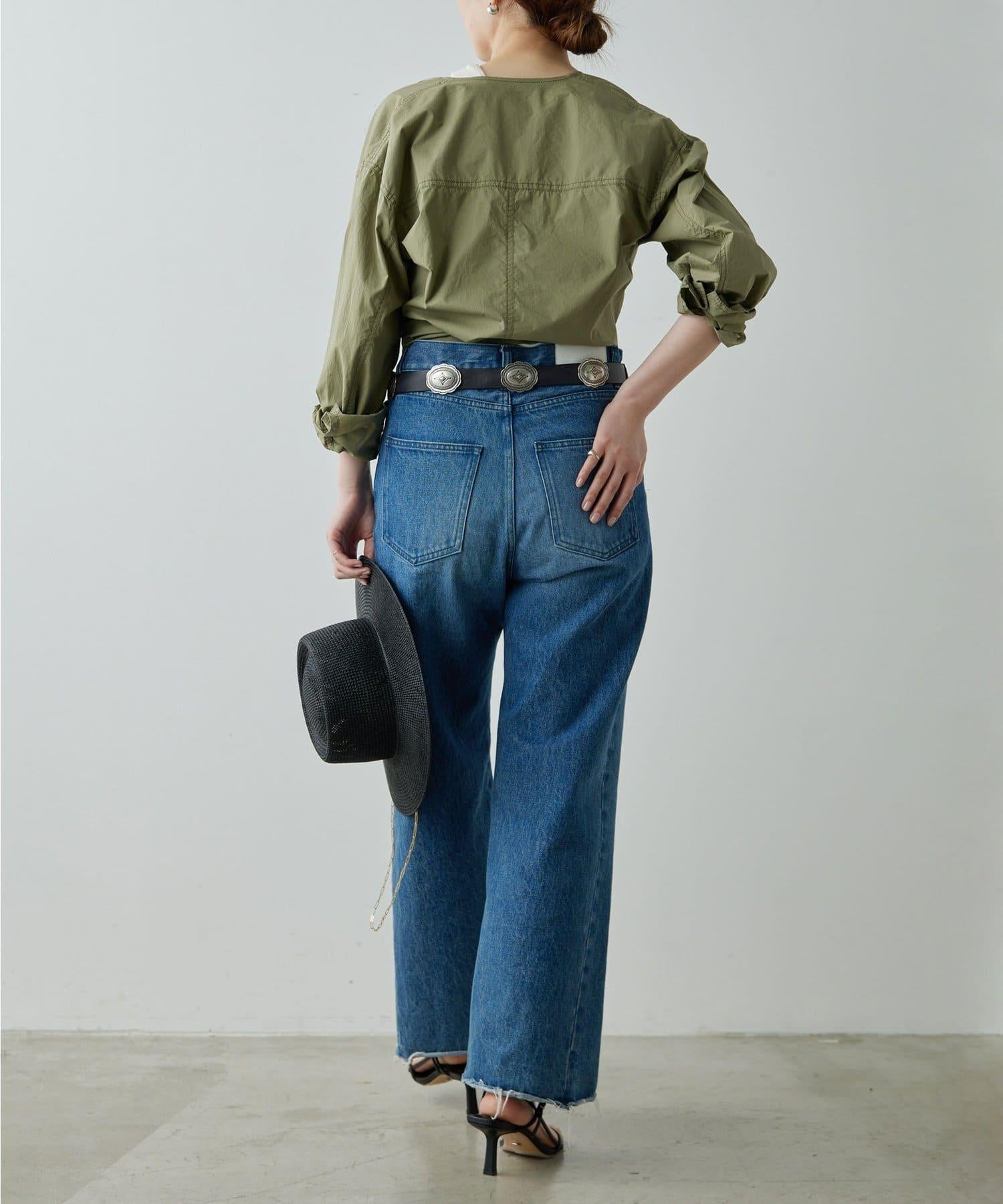 牛仔褲內側的輪廓設計使腿部線條看起來更加流暢。