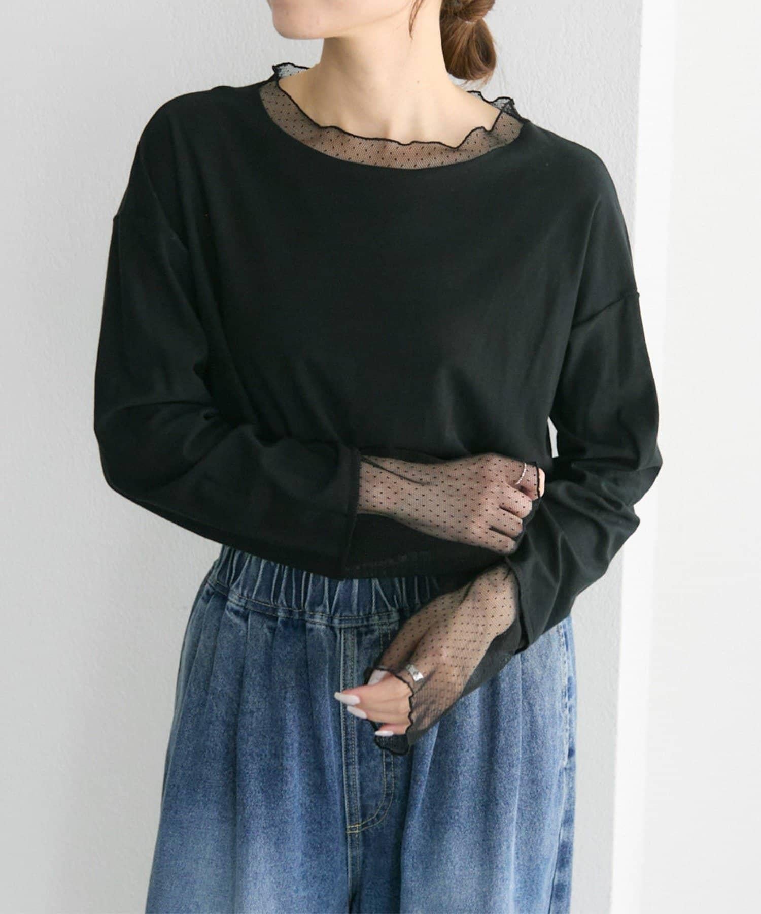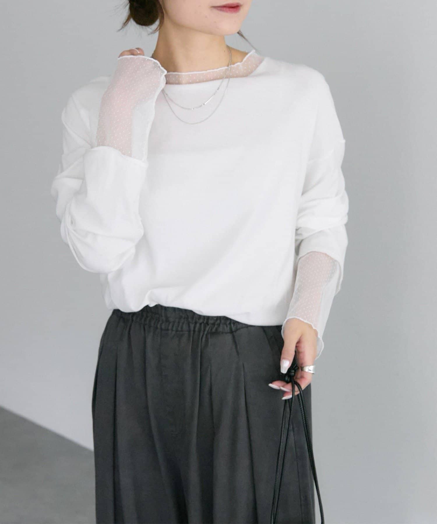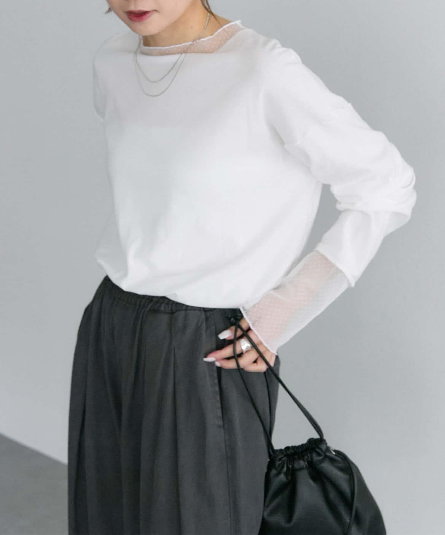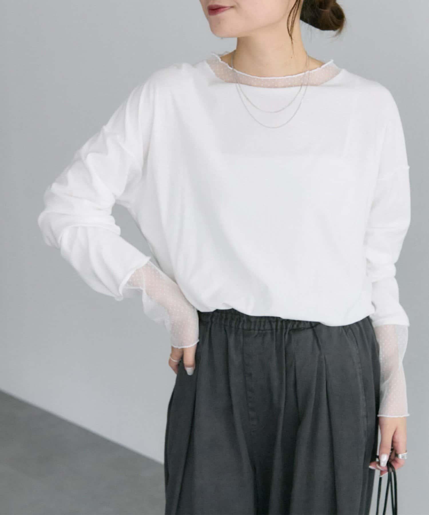 從搭配的上衣上可以看到薄紗材質,增添了魅力和寬鬆感。