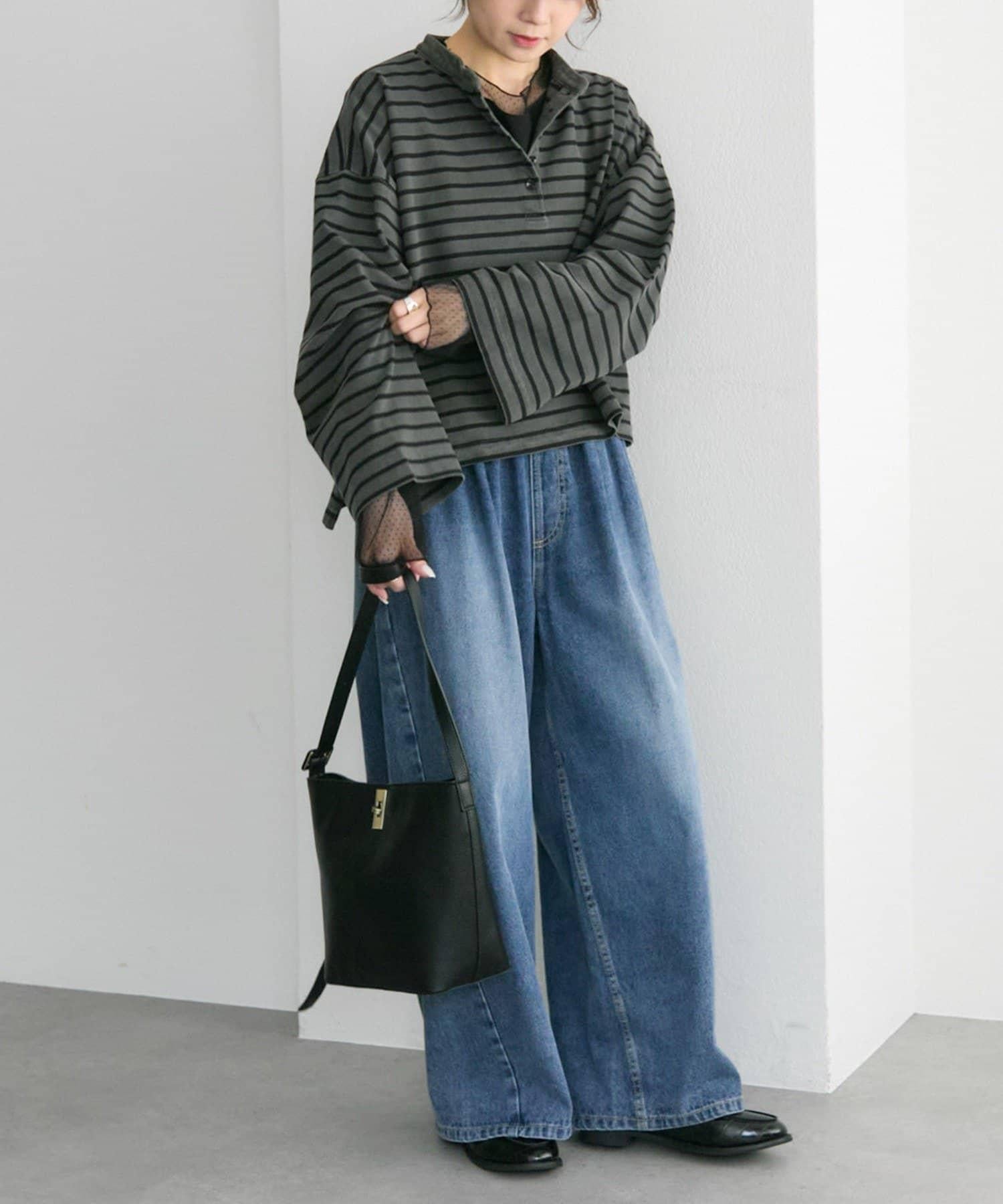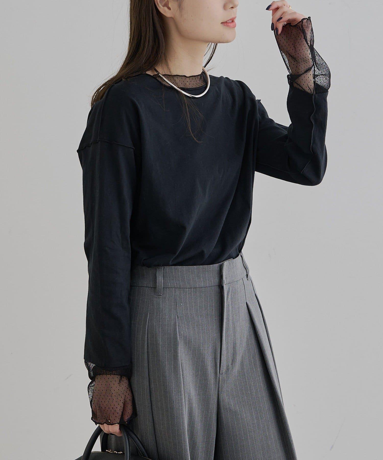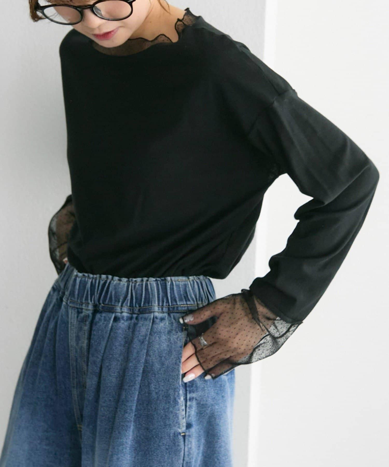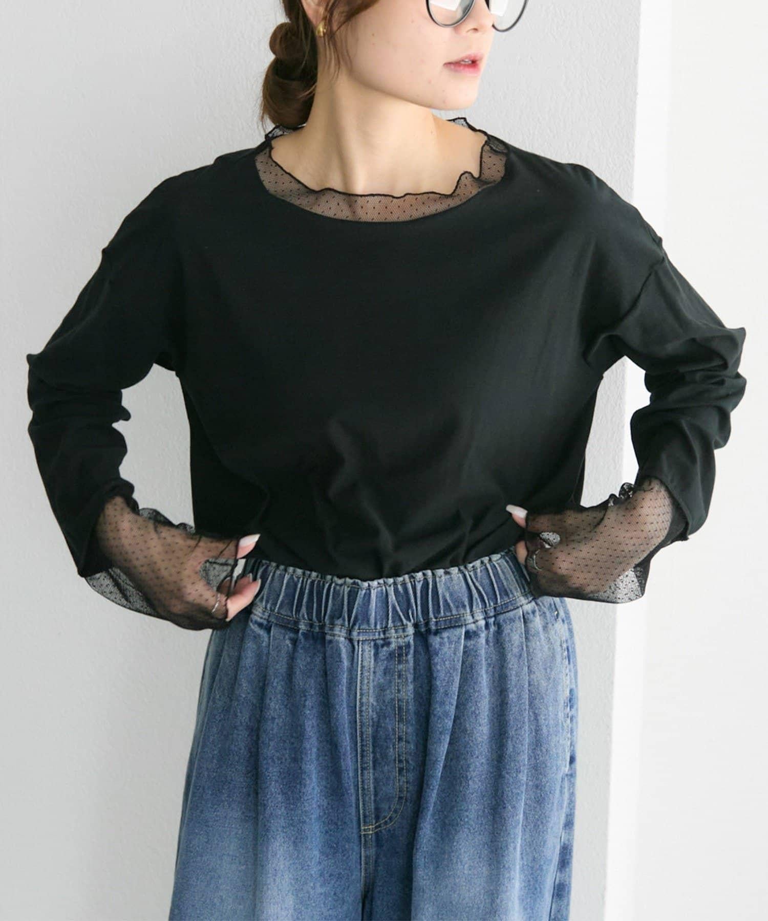 從搭配的上衣上可以看到薄紗材質,增添了魅力和寬鬆感。