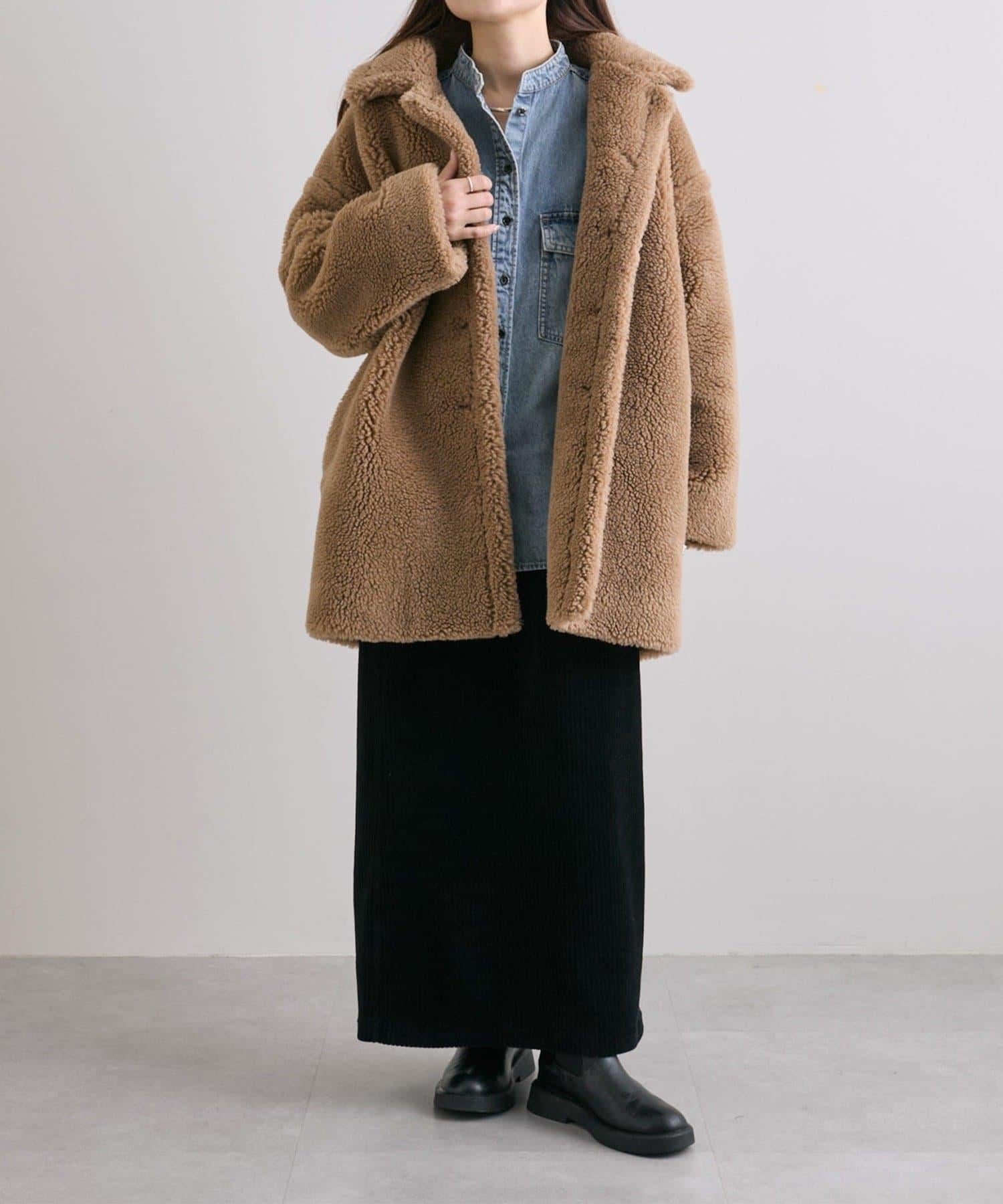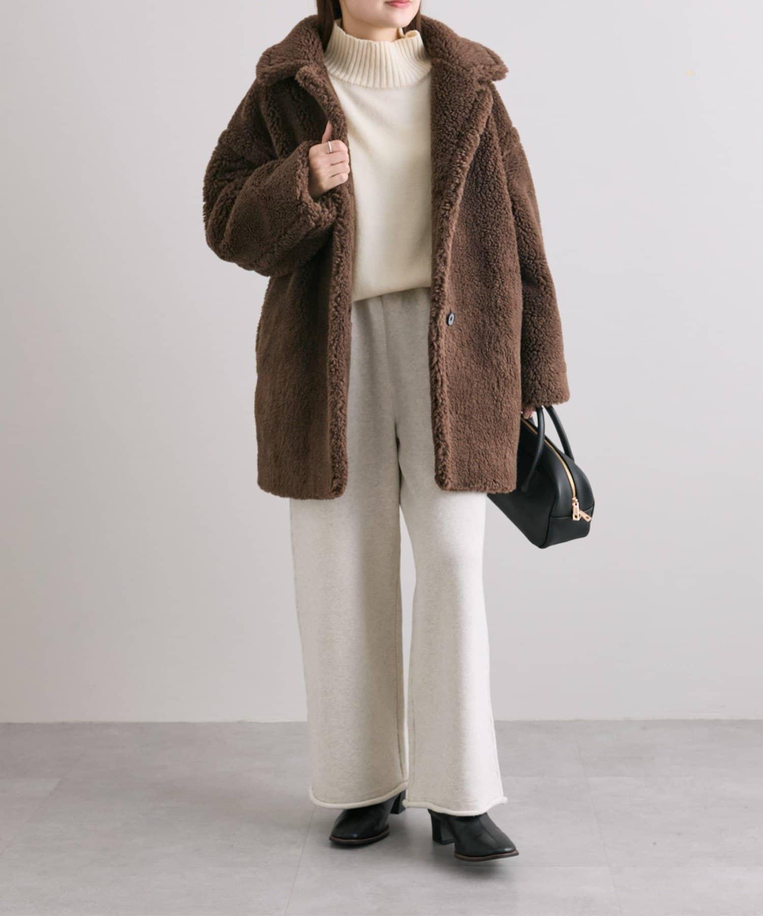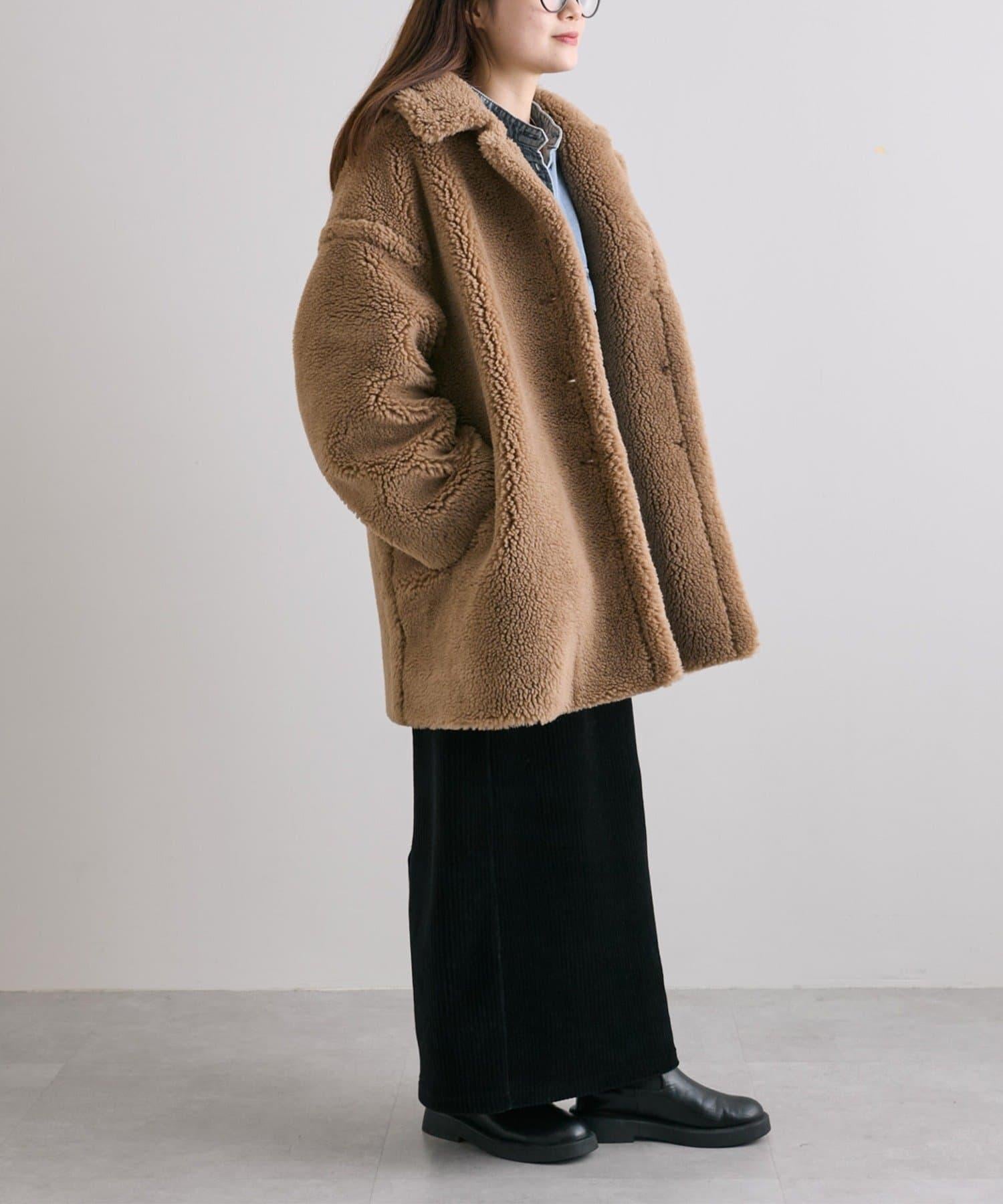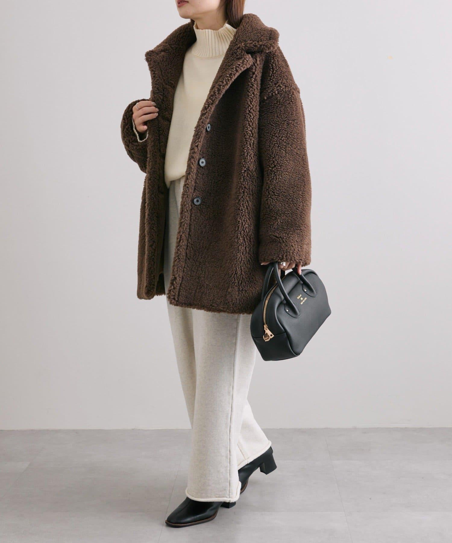 採用時尚 "蟒蛇 "材質的保暖中長款大衣◇