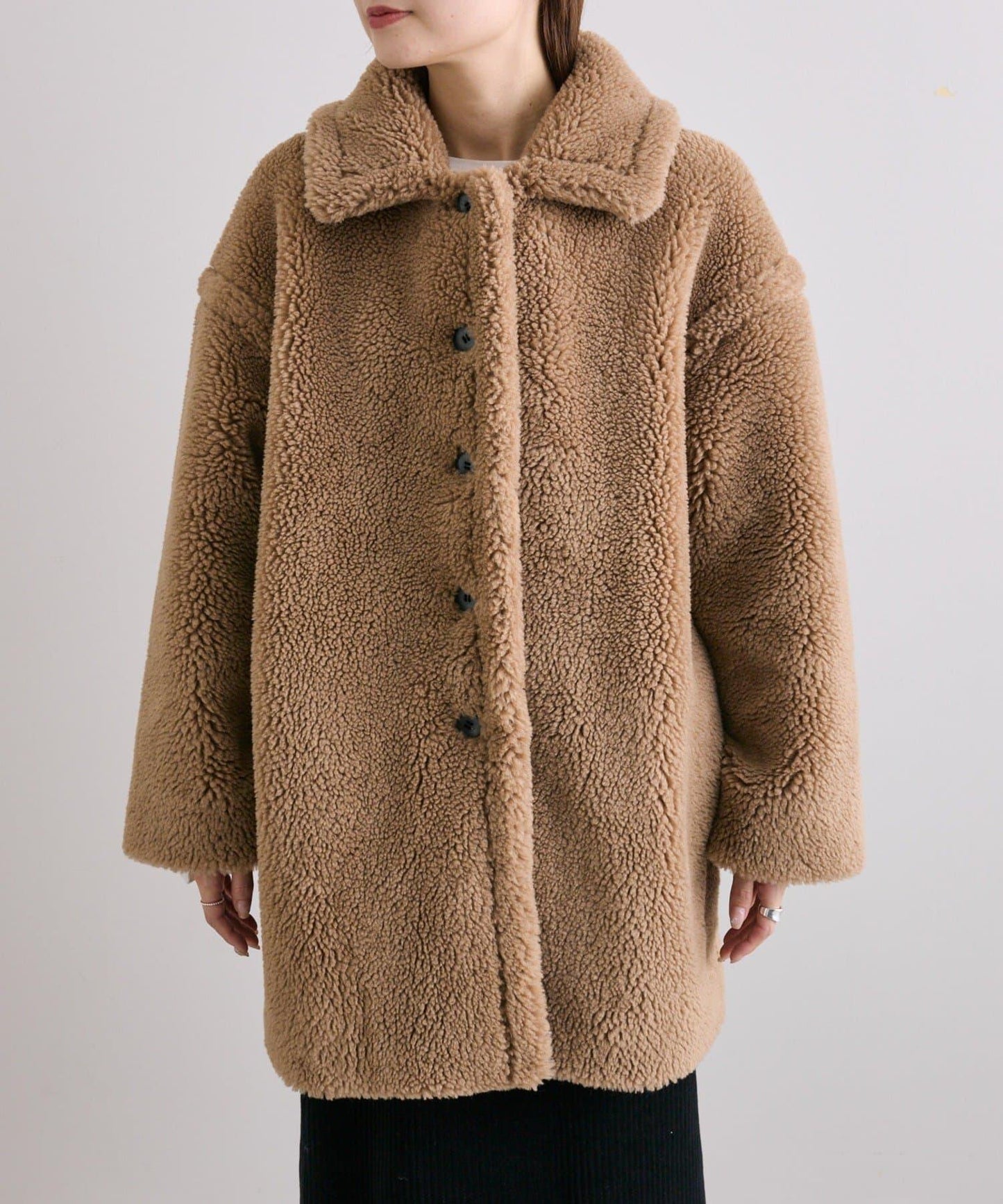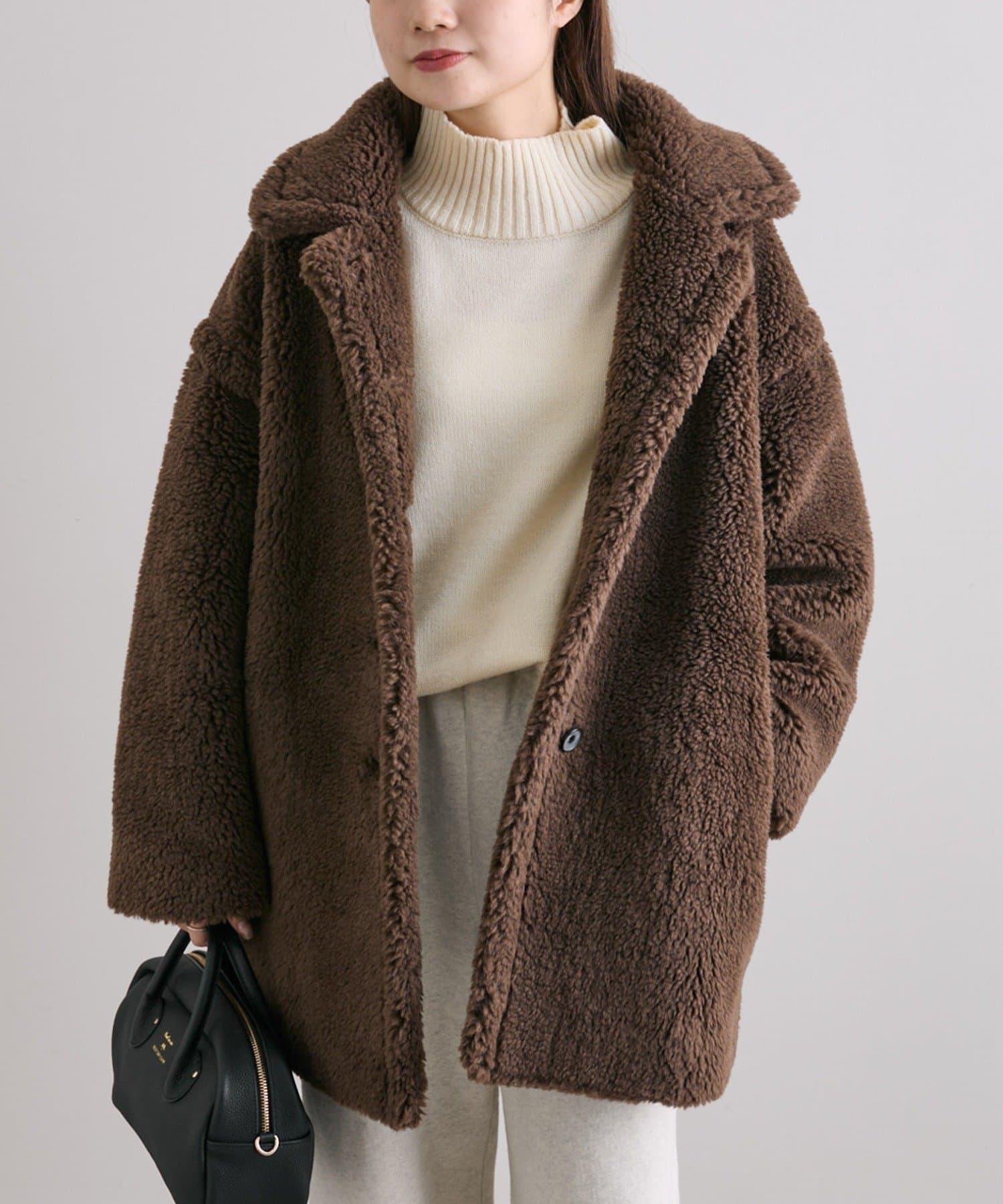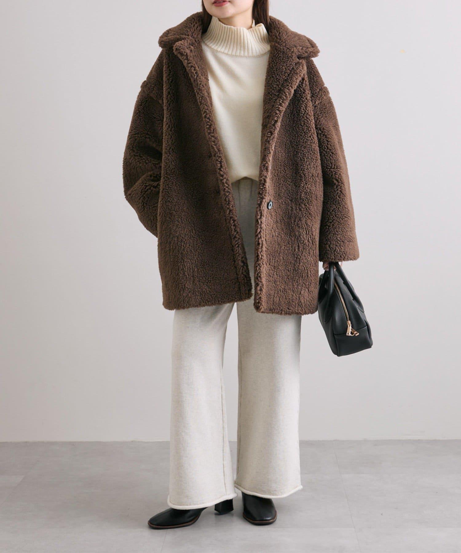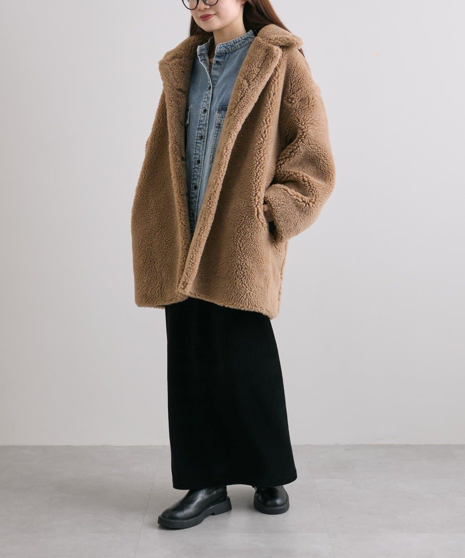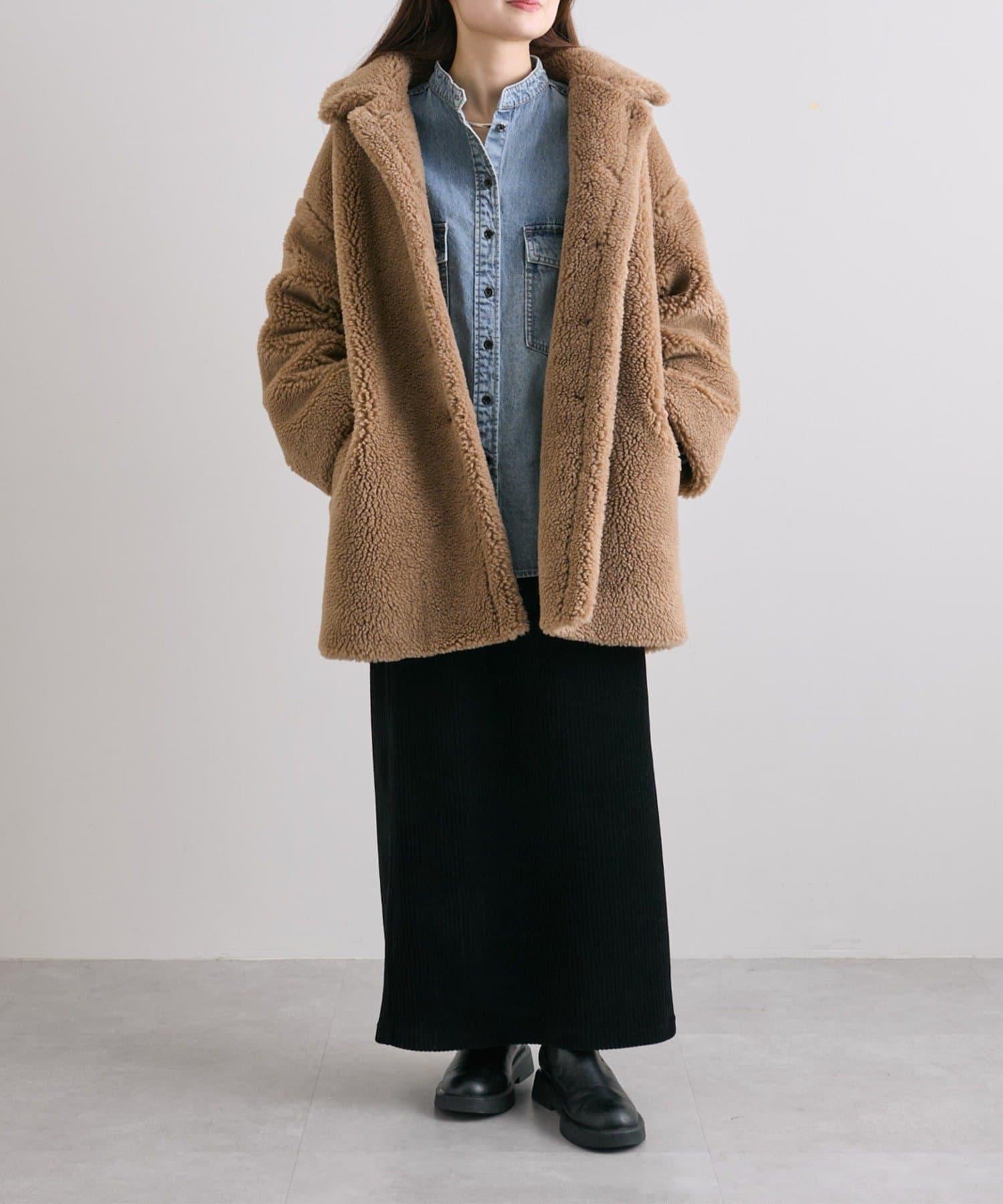 採用時尚 "蟒蛇 "材質的保暖中長款大衣◇