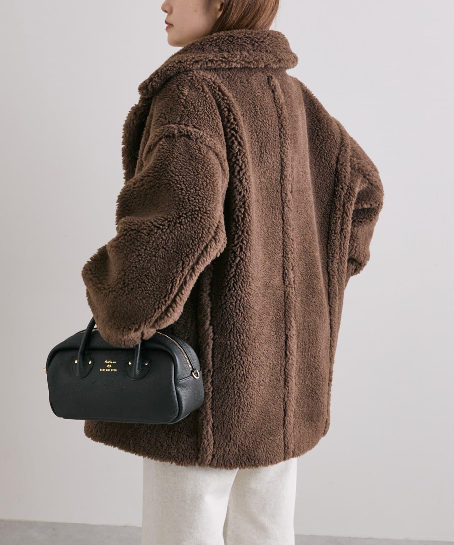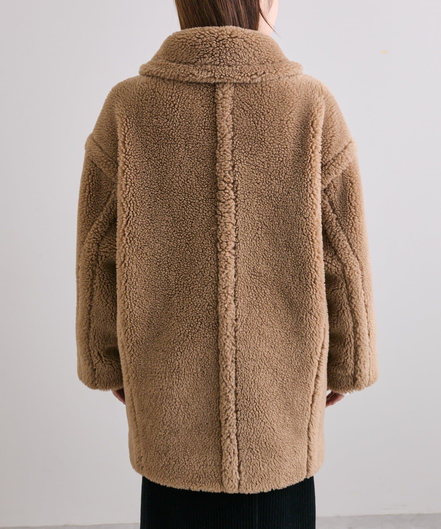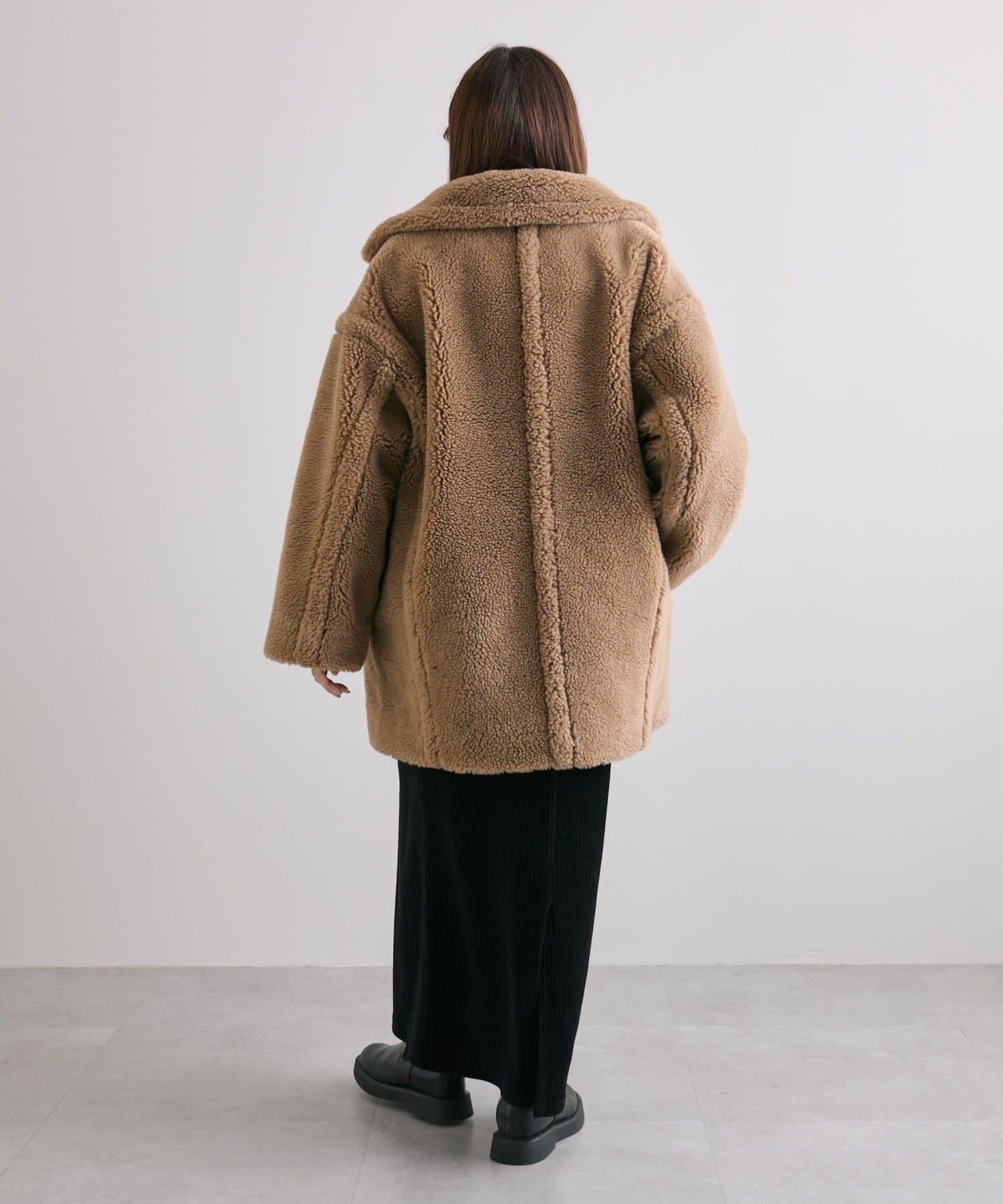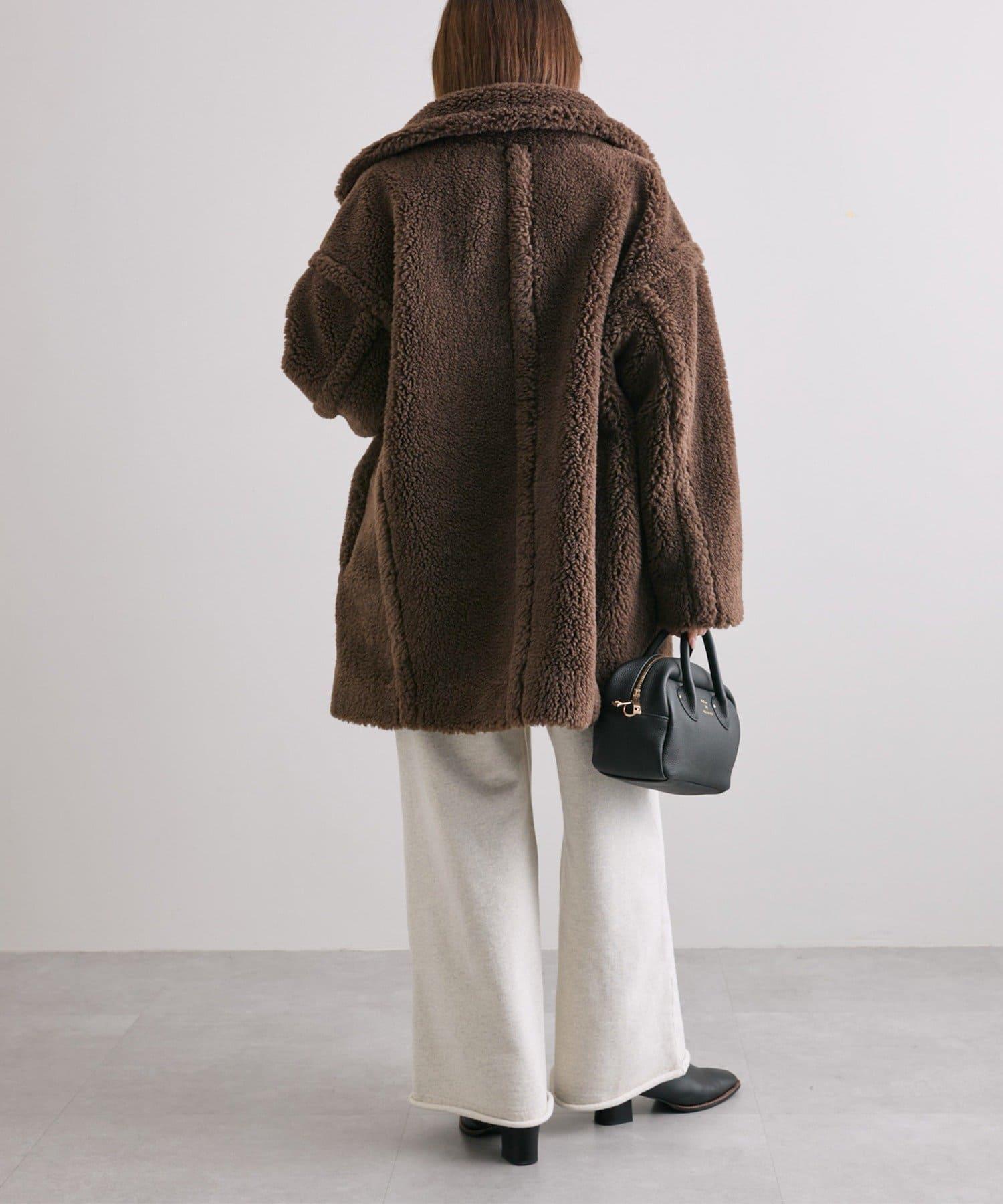 採用時尚 "蟒蛇 "材質的保暖中長款大衣◇
