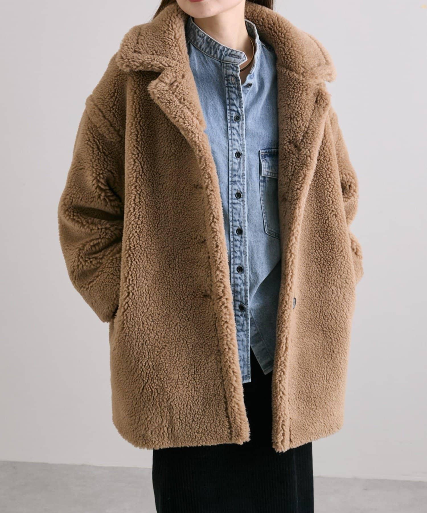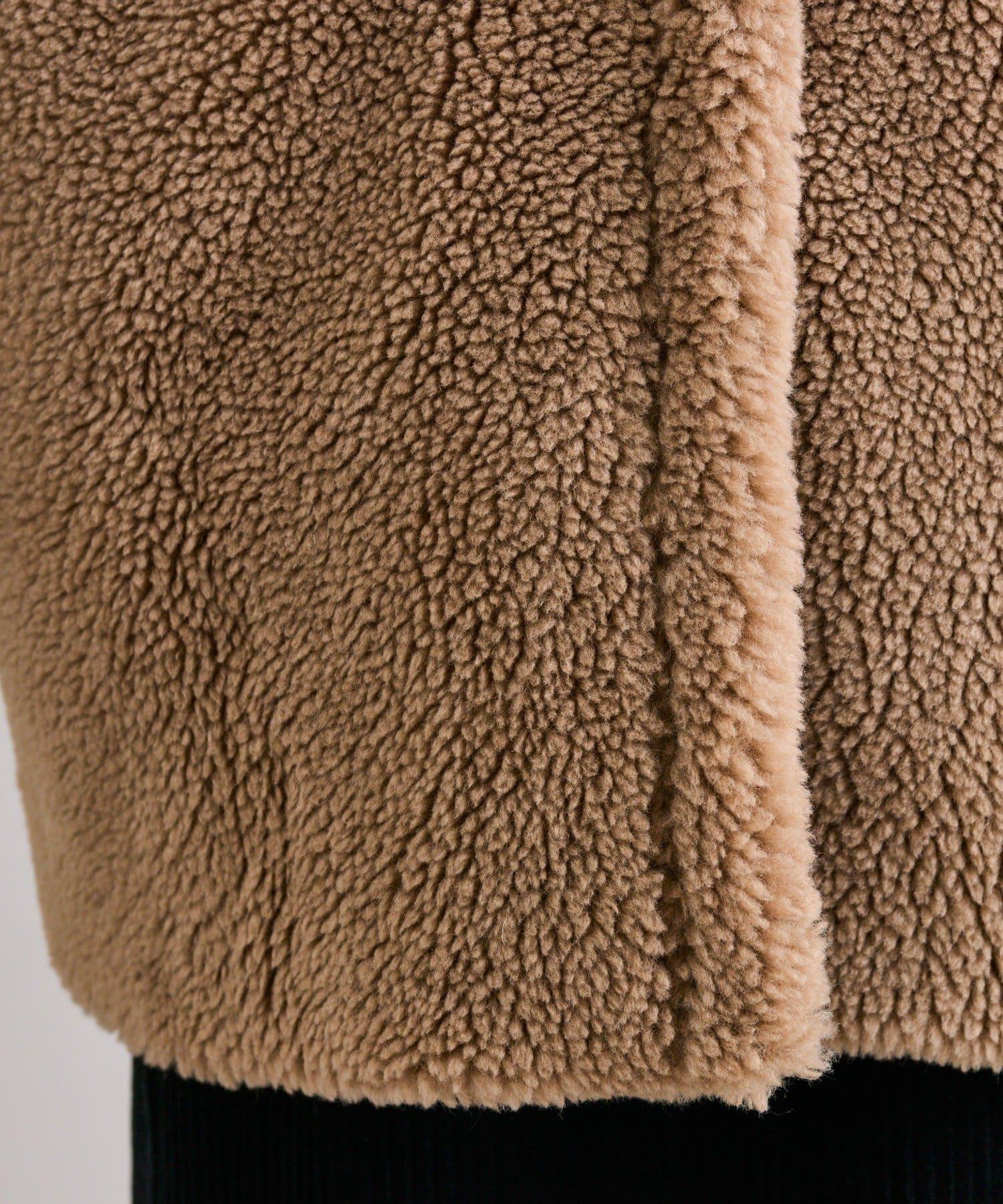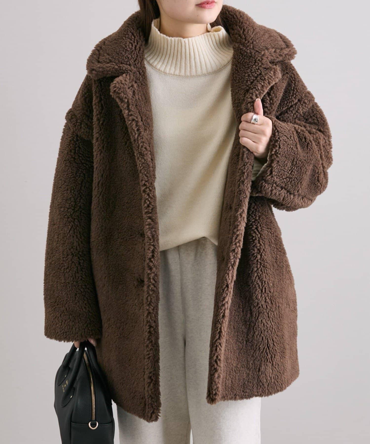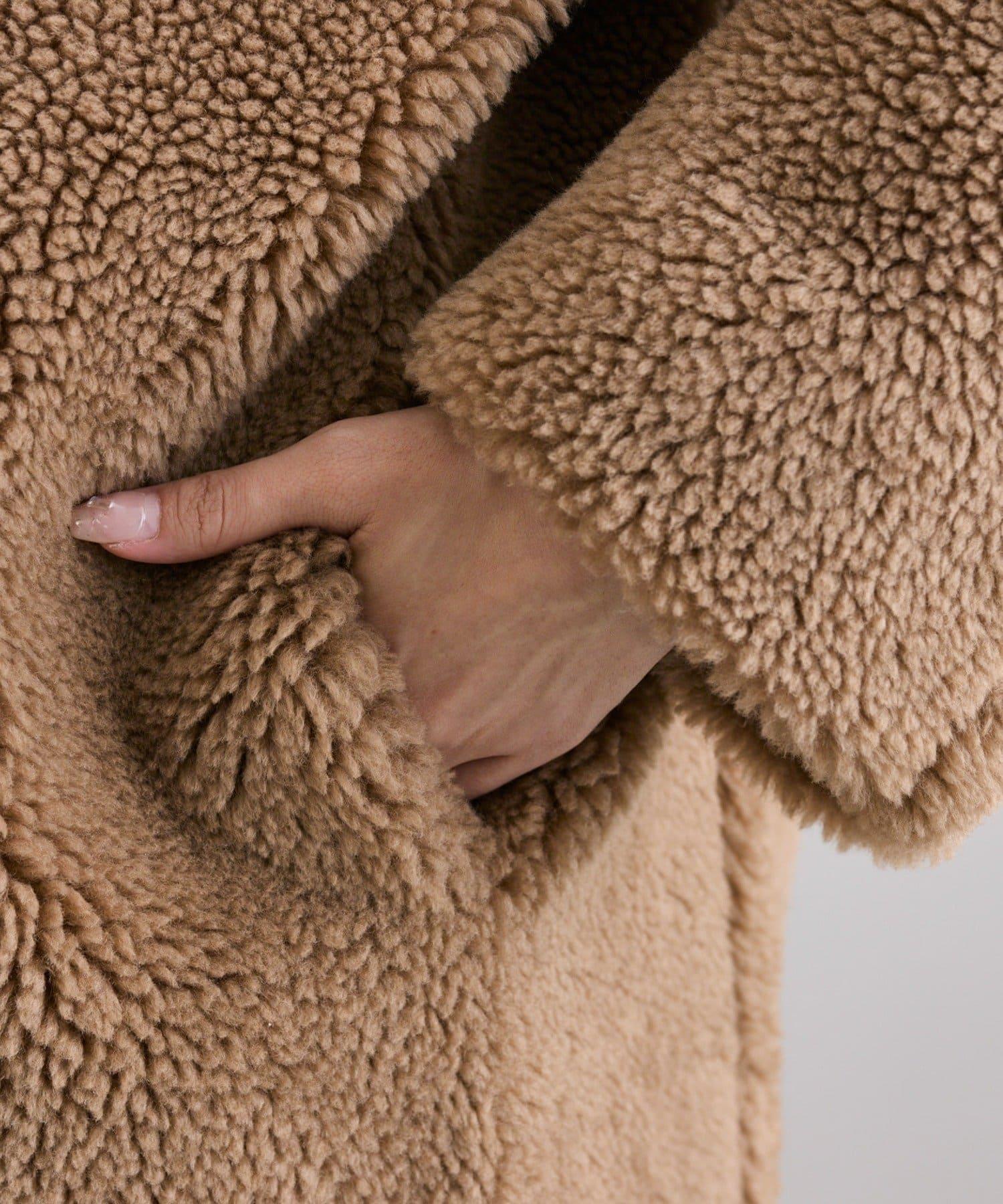這是一款中長款大衣,採用蓬鬆的蟒蛇絨面料,表面觸感極佳,給人一種四季皆宜的感覺。