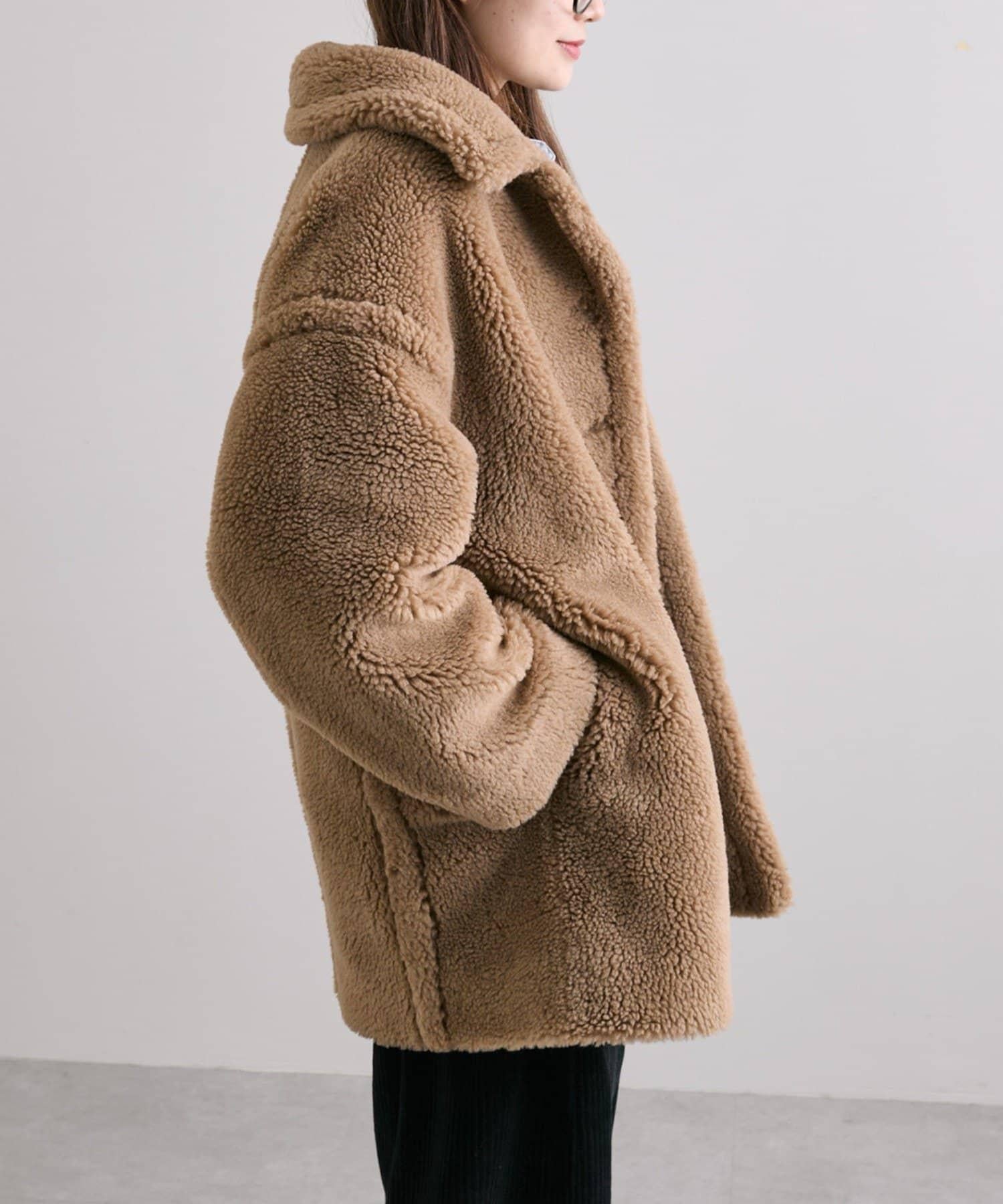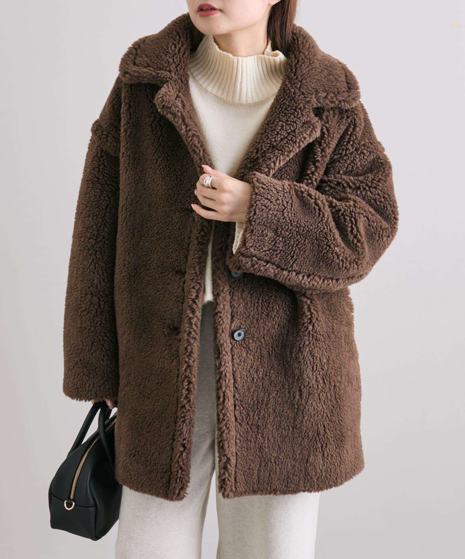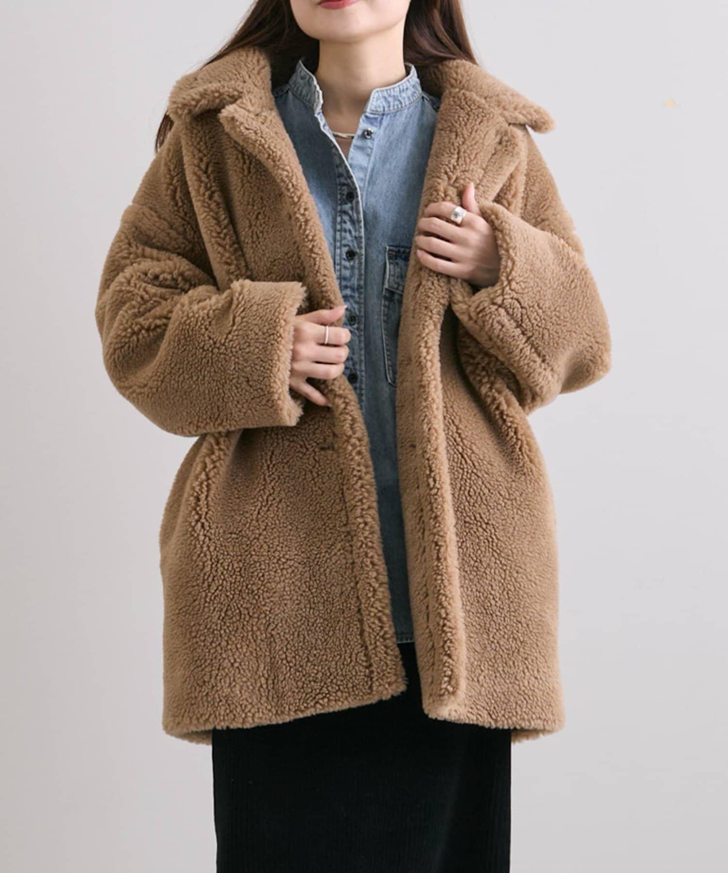 這是一款中長款大衣,採用蓬鬆的蟒蛇絨面料,表面觸感極佳,給人一種四季皆宜的感覺。